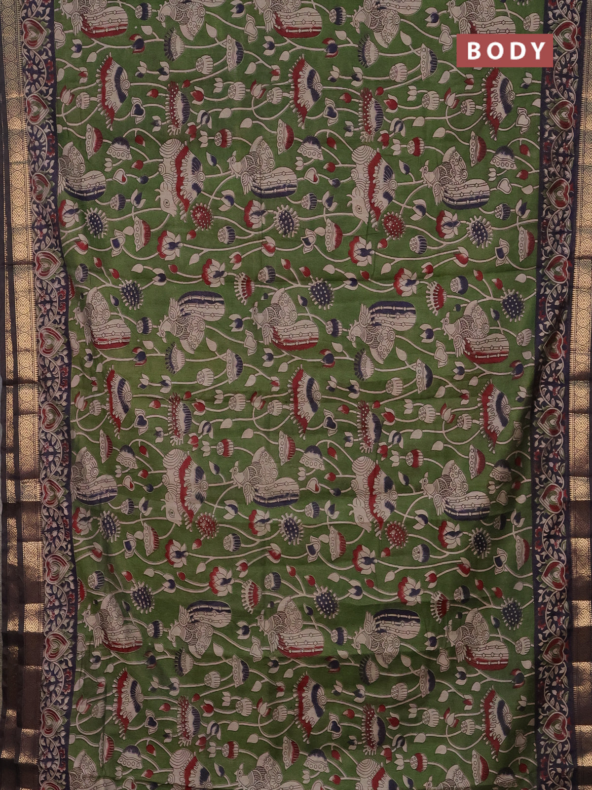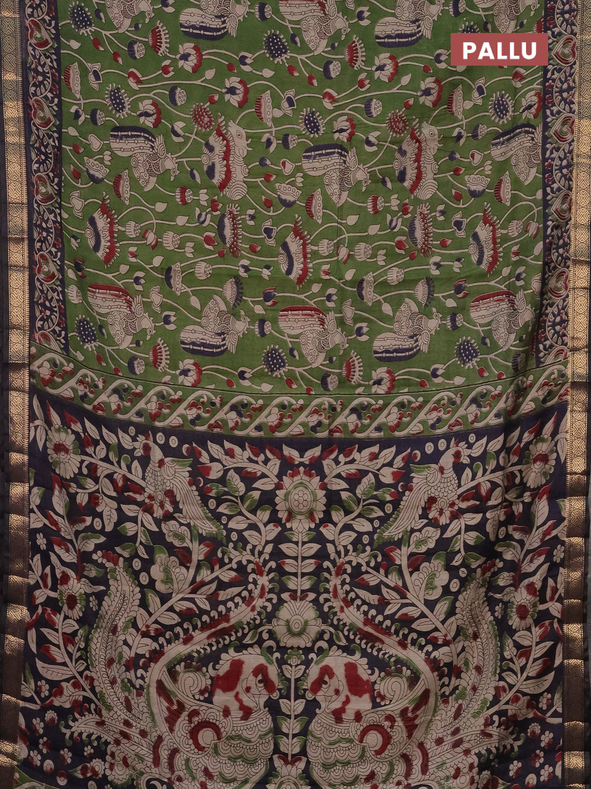 Semi maheshwari cotton saree sap green and dark blue with allover kalamkari prints and zari woven border