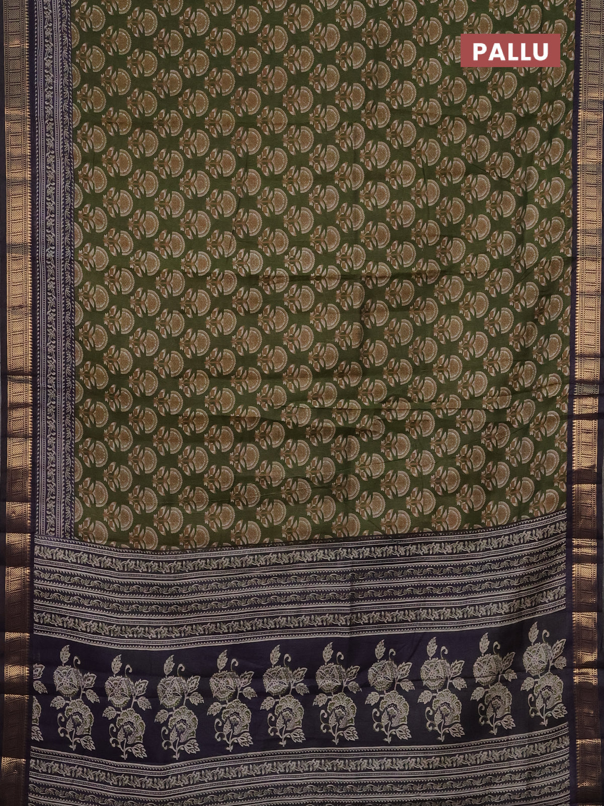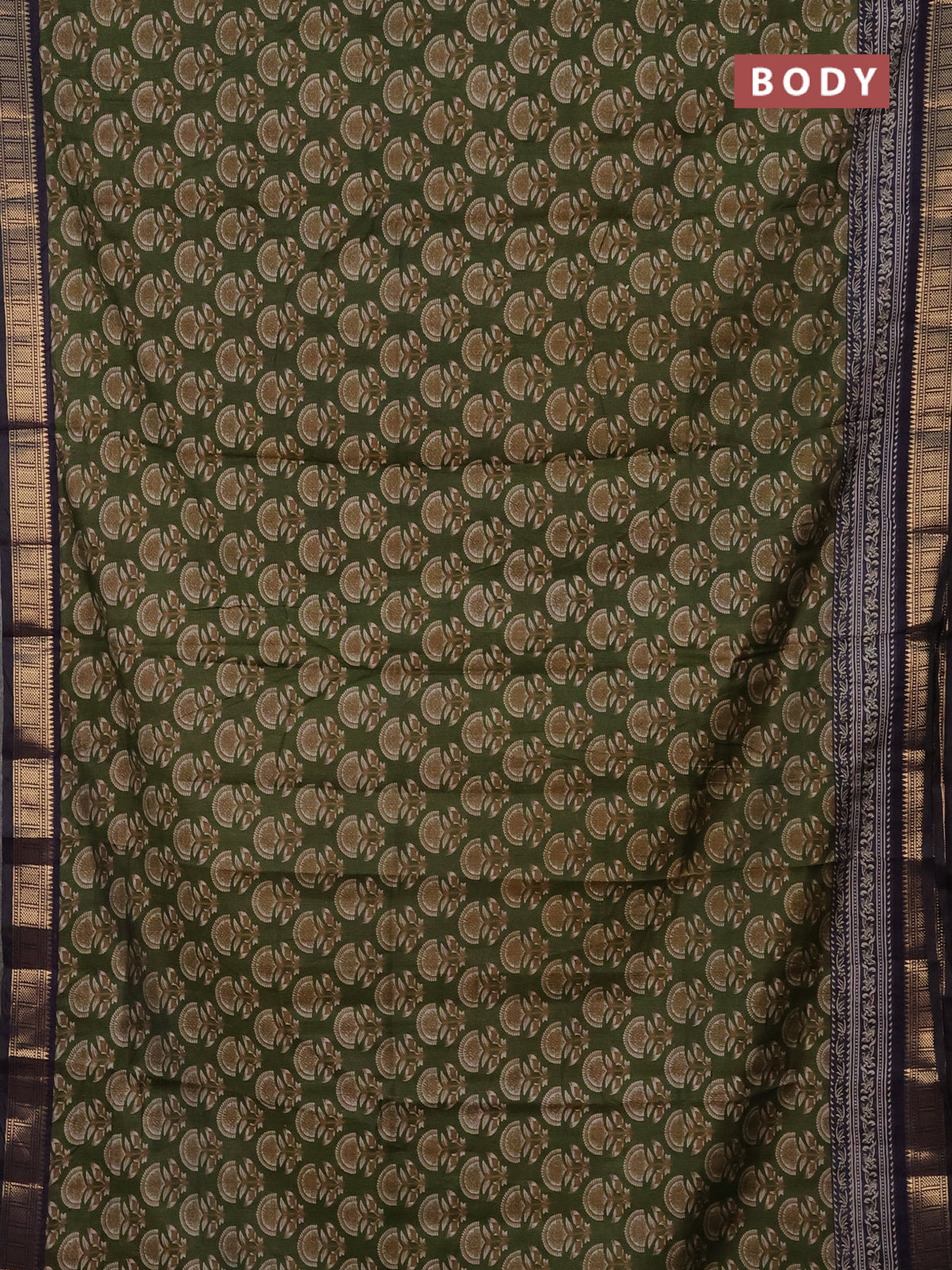 Semi maheshwari cotton saree sap green and deep jamun with allover butta prints and zari woven border