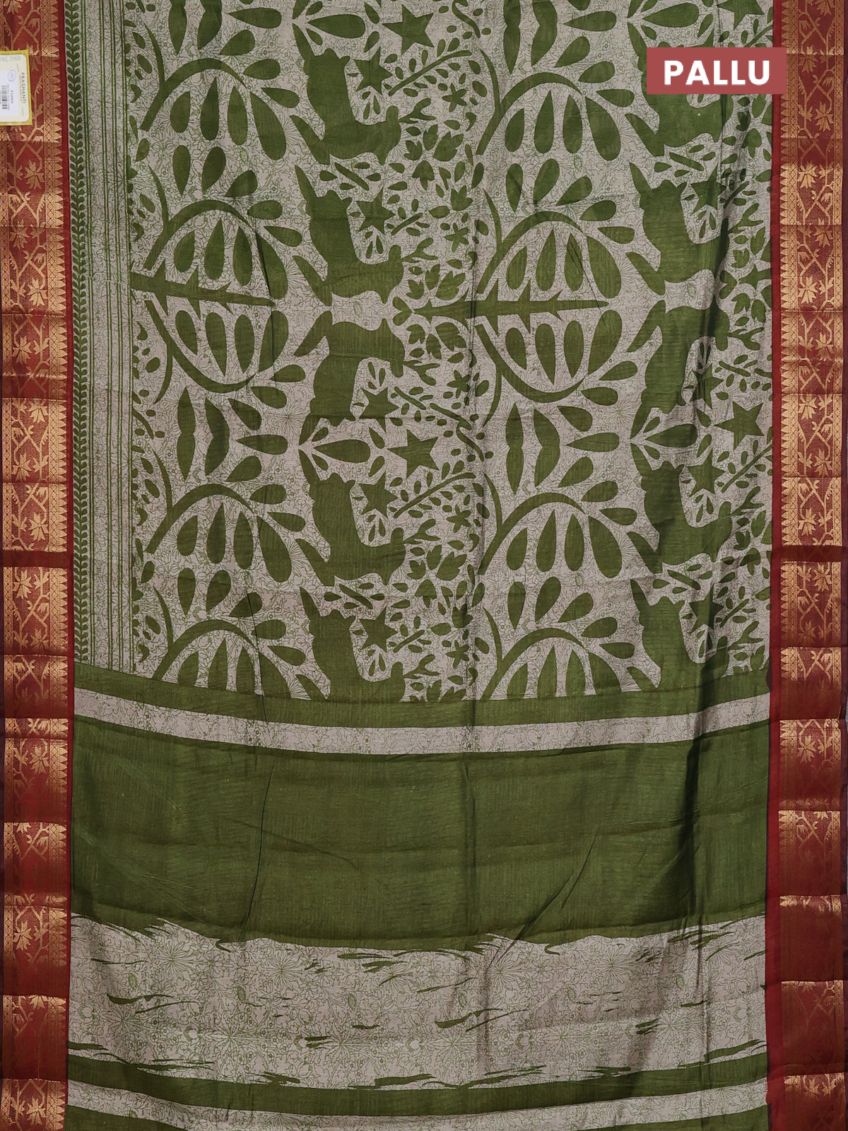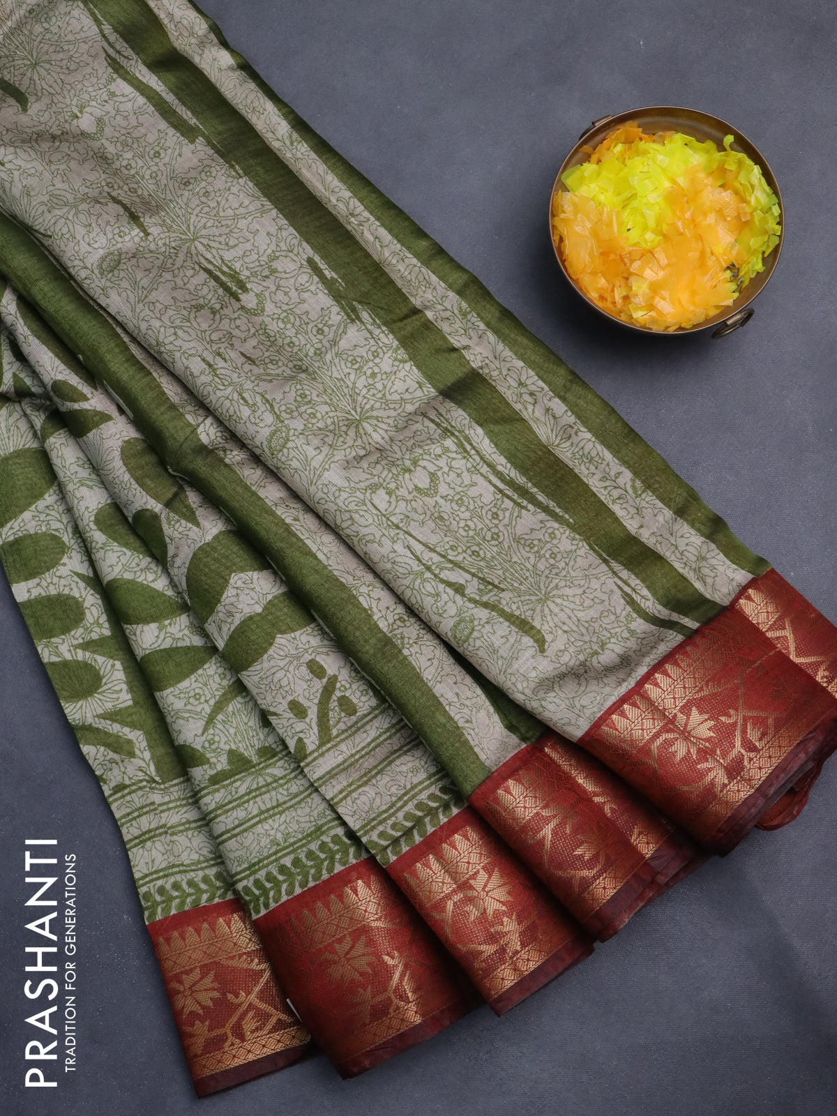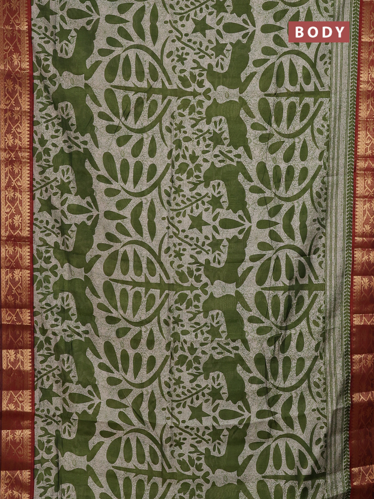 Semi maheshwari cotton saree sap green and maroon with allover prints and zari woven border