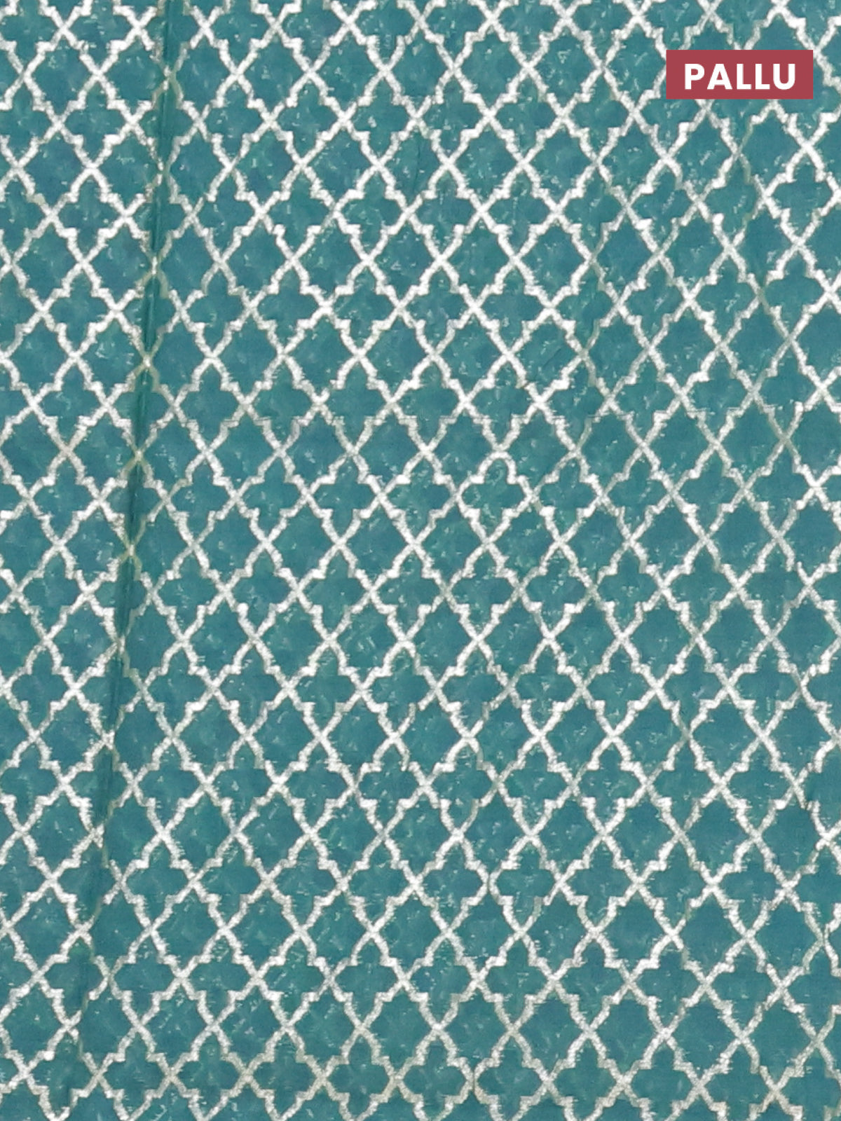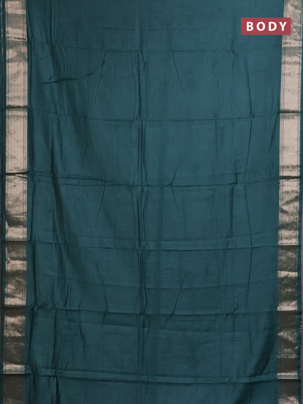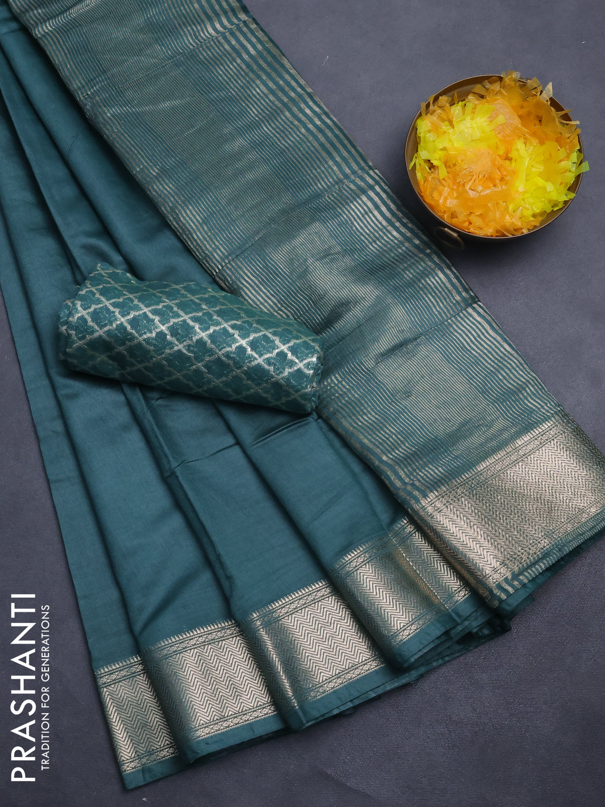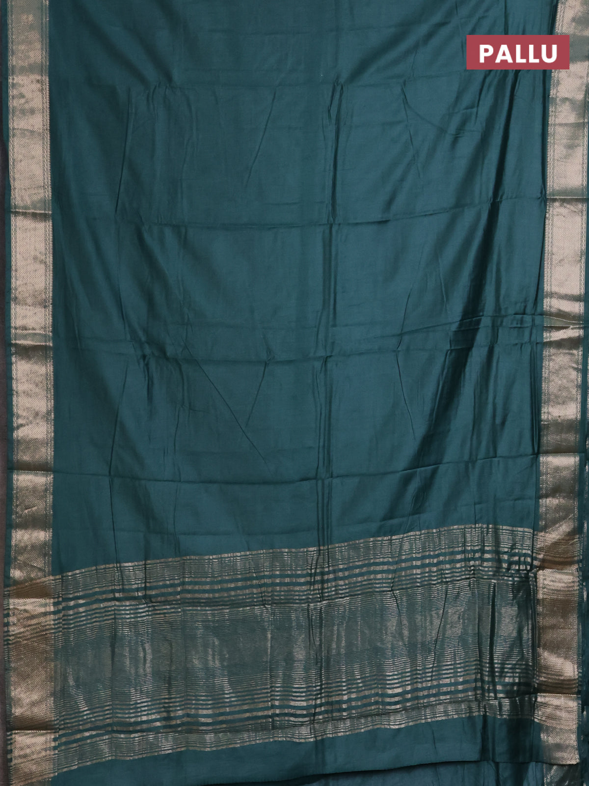 Semi mangalgiri saree peacock green with plain body and zari woven border