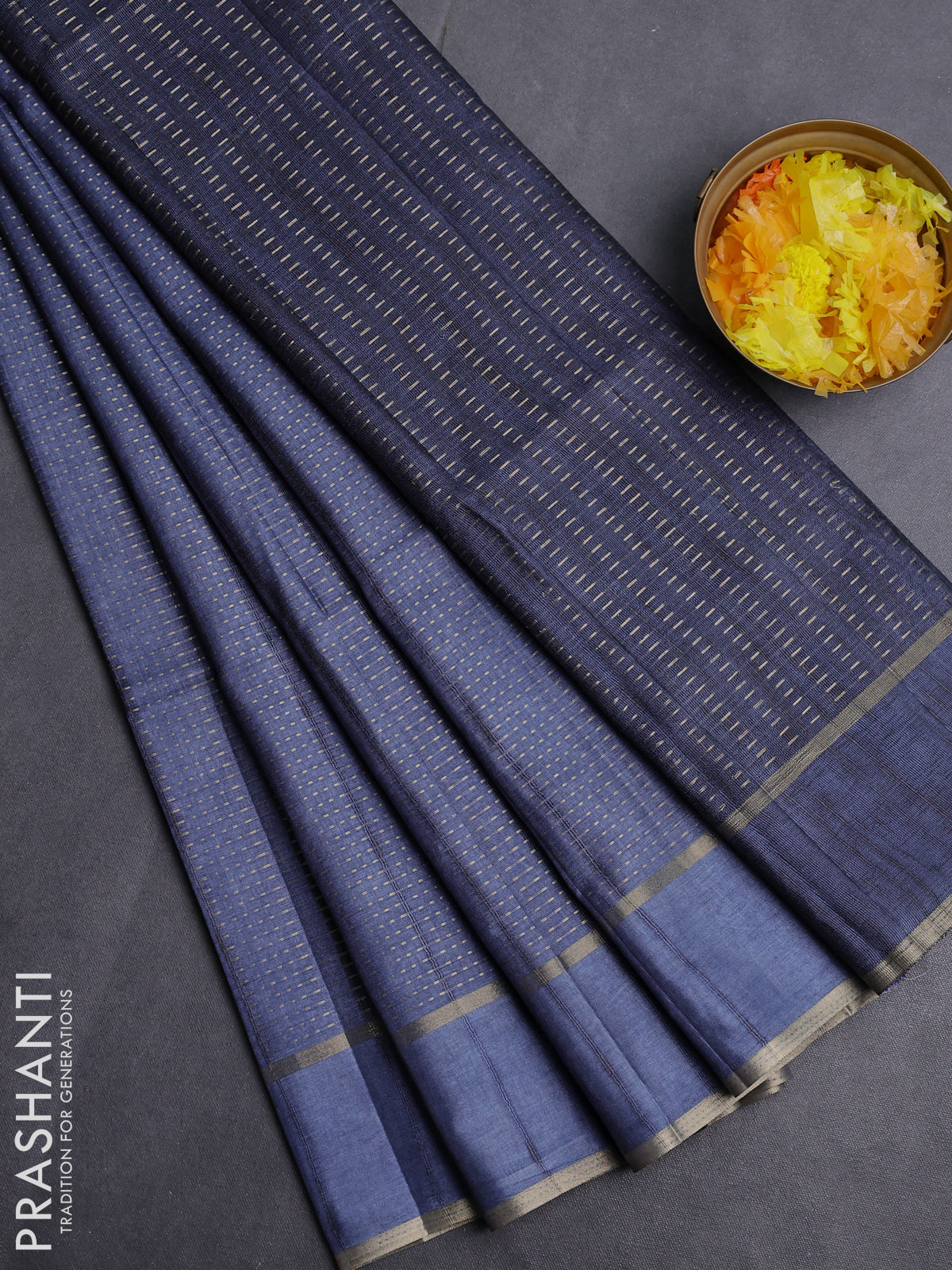 Semi matka saree blue shade with allover zari weaves and rettapet zari woven border
