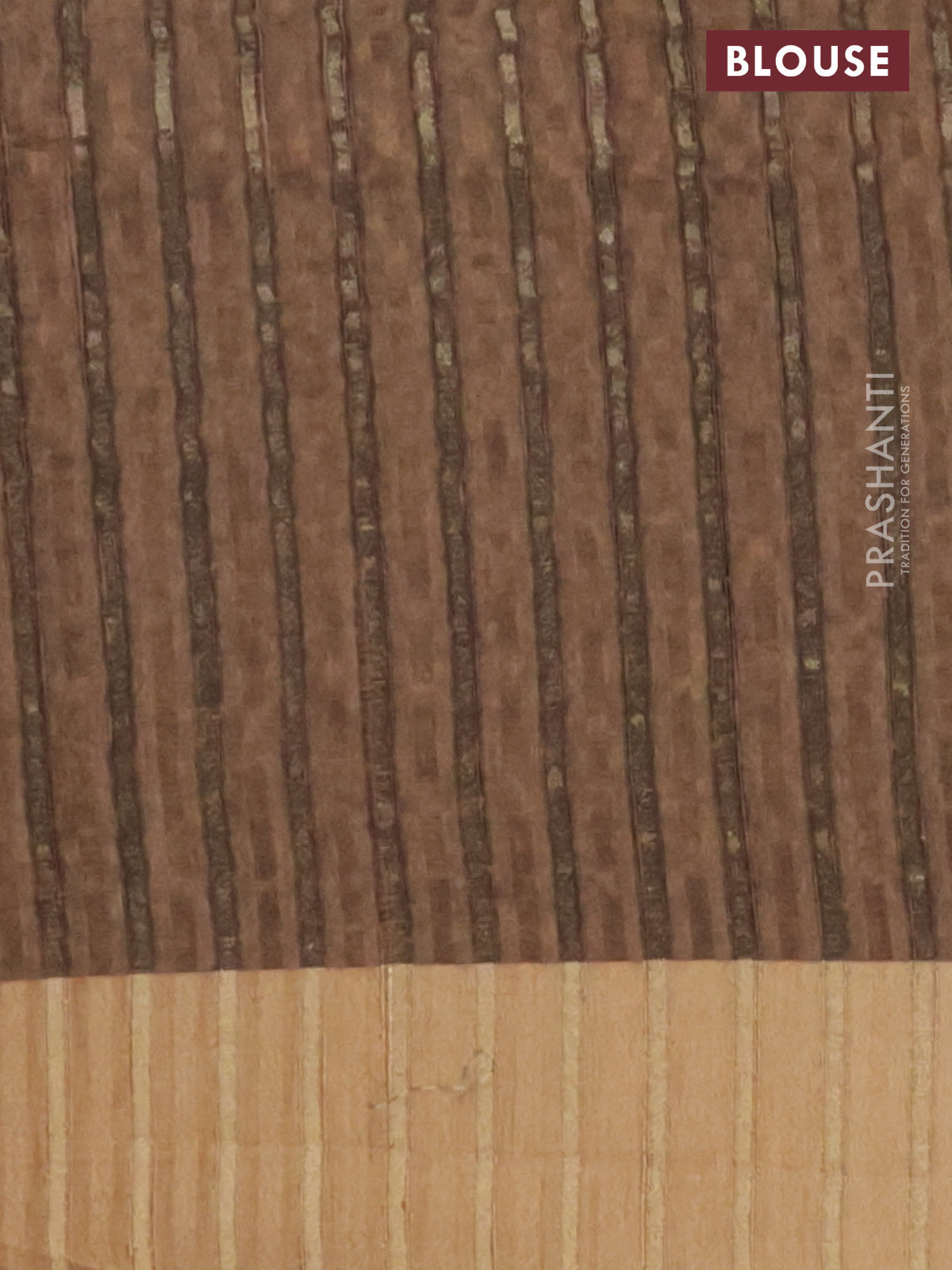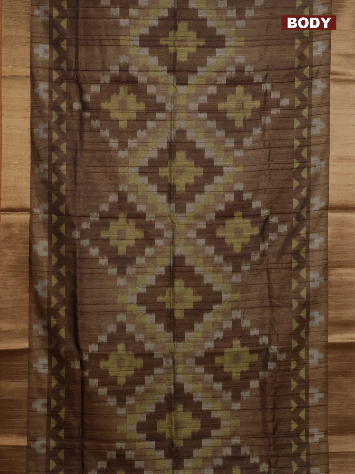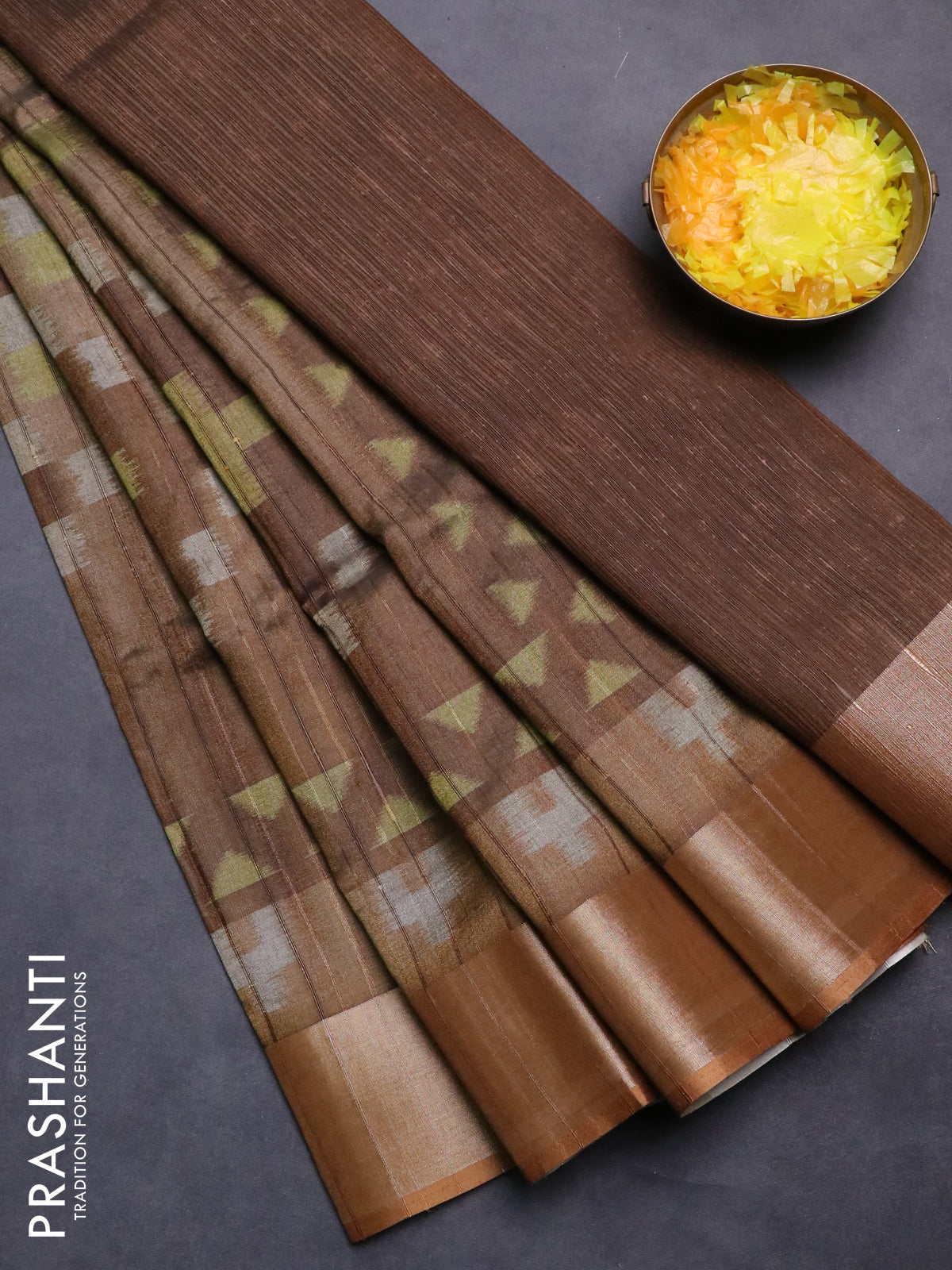 Semi matka saree brown shade and yellow with allover ikat prints and zari woven border