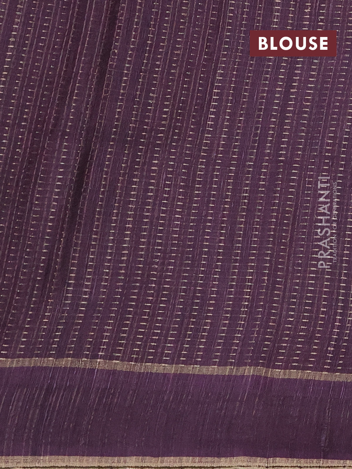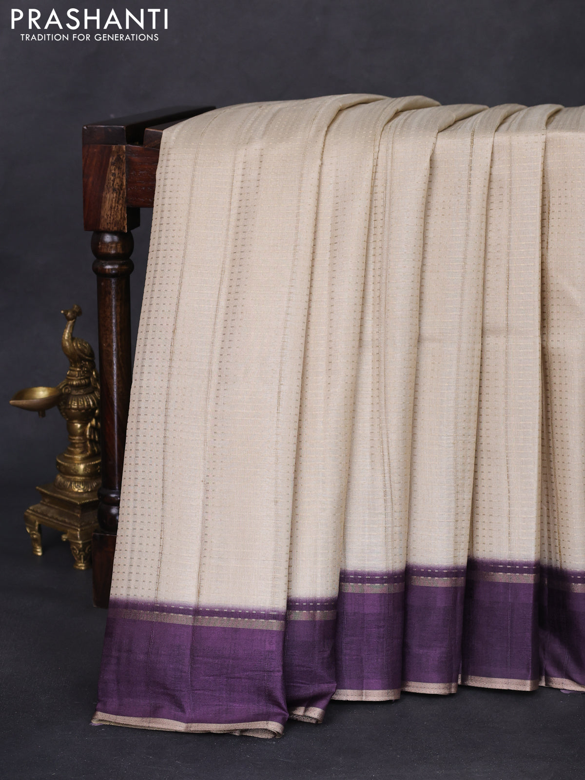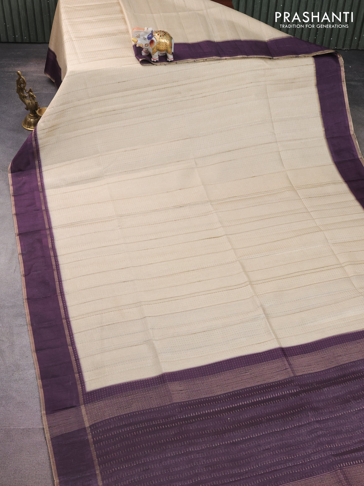 Semi matka saree cream and deep jamun with allover zari weaves and rettapet zari woven border