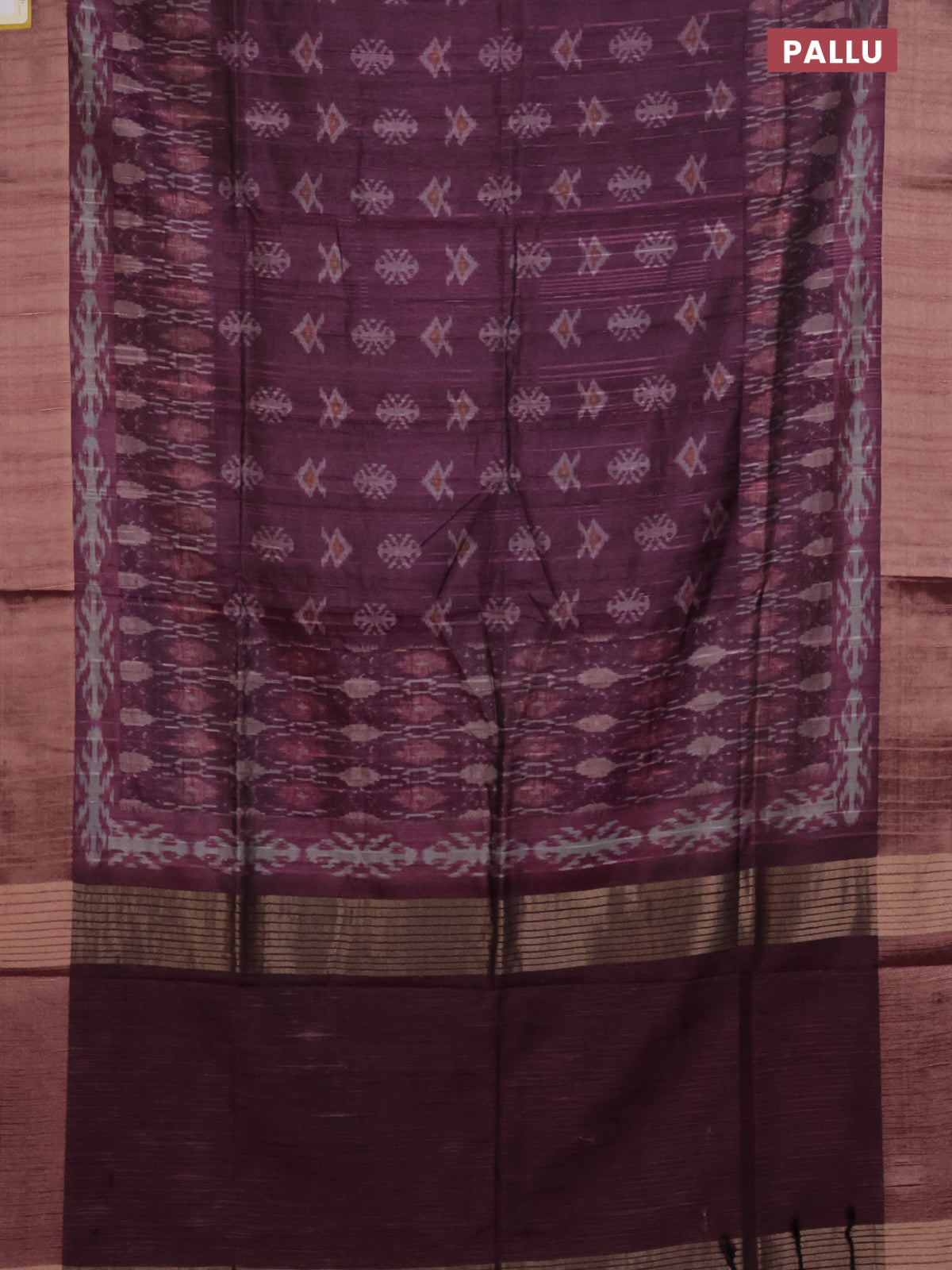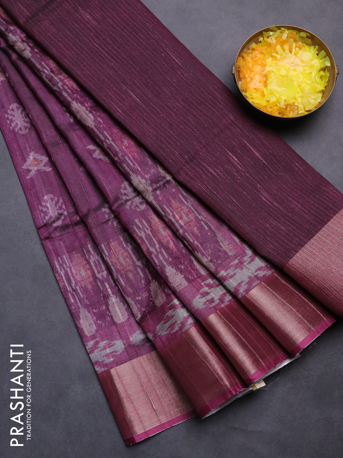 Semi matka saree dark magenat pink with allover ikat prints and zari woven border
