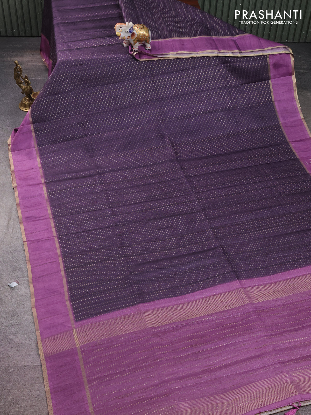 Semi matka saree deep jamun and mild purple with allover zari weaves and rettapet zari woven border