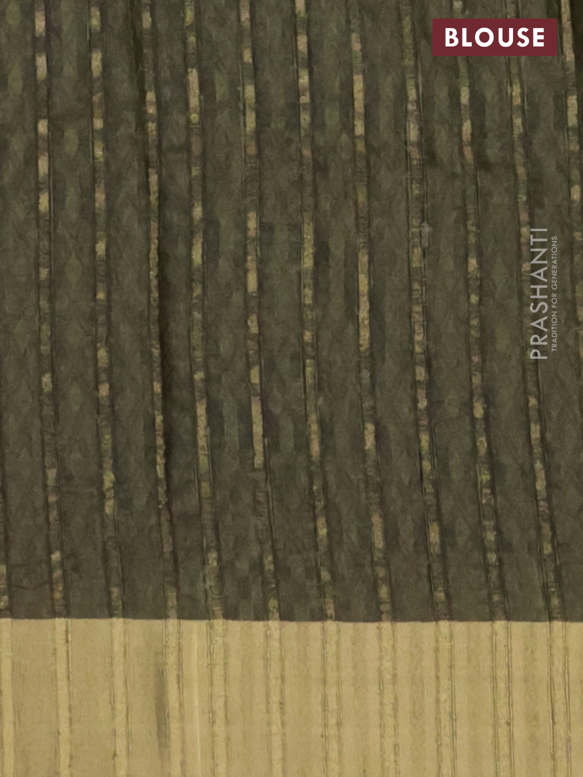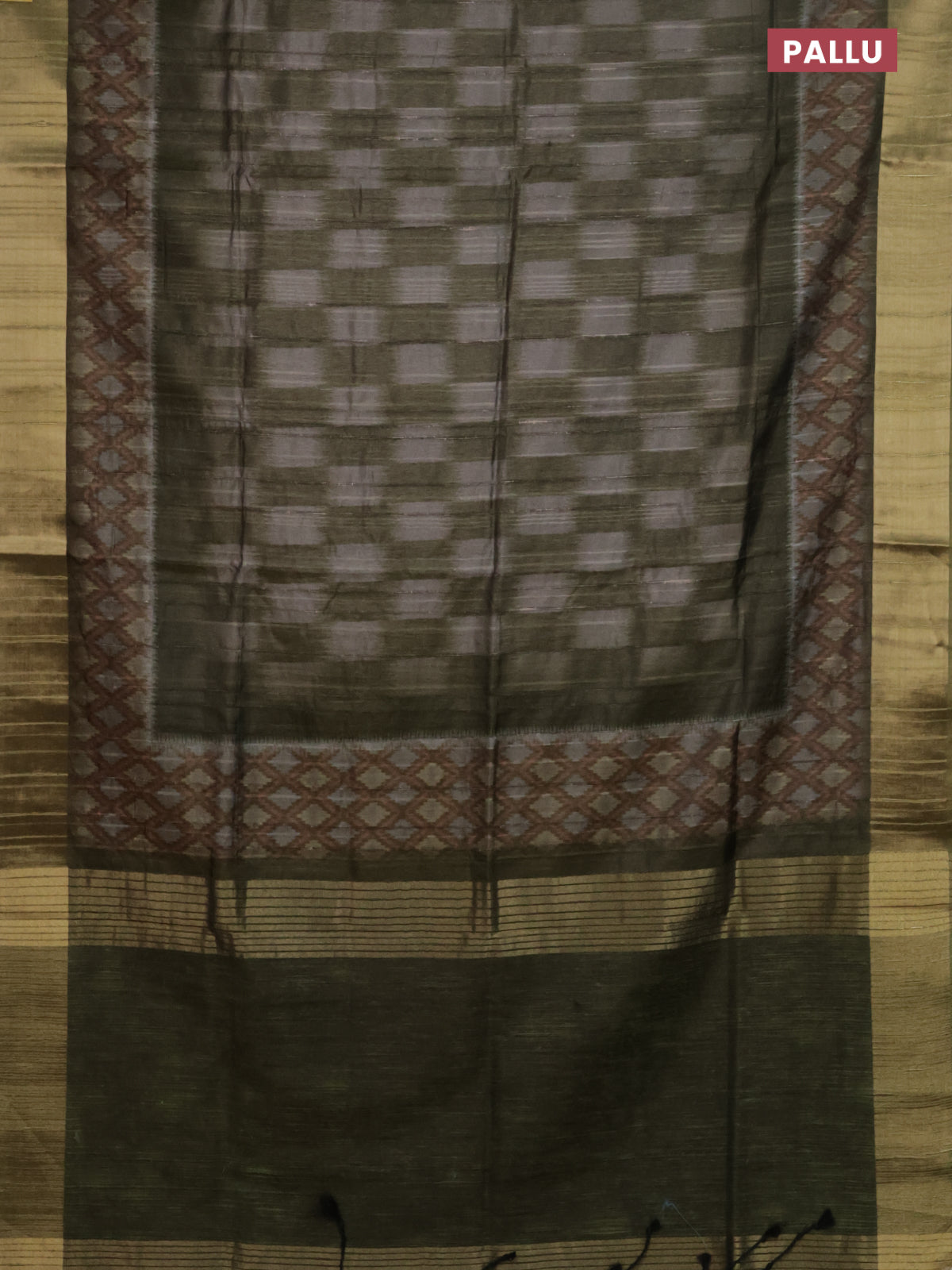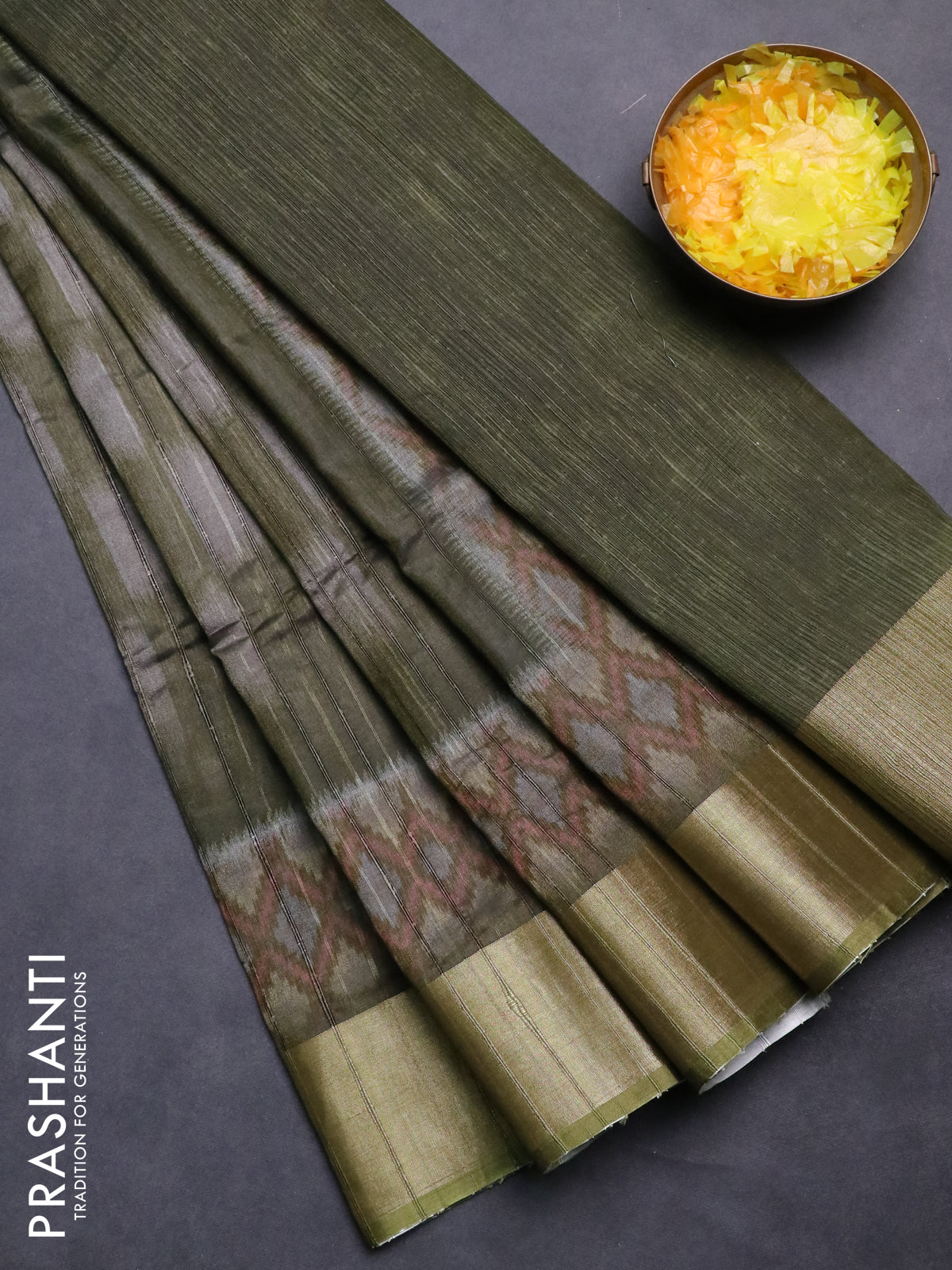 Semi matka saree grey and sap green with allover ikat prints and zari woven border