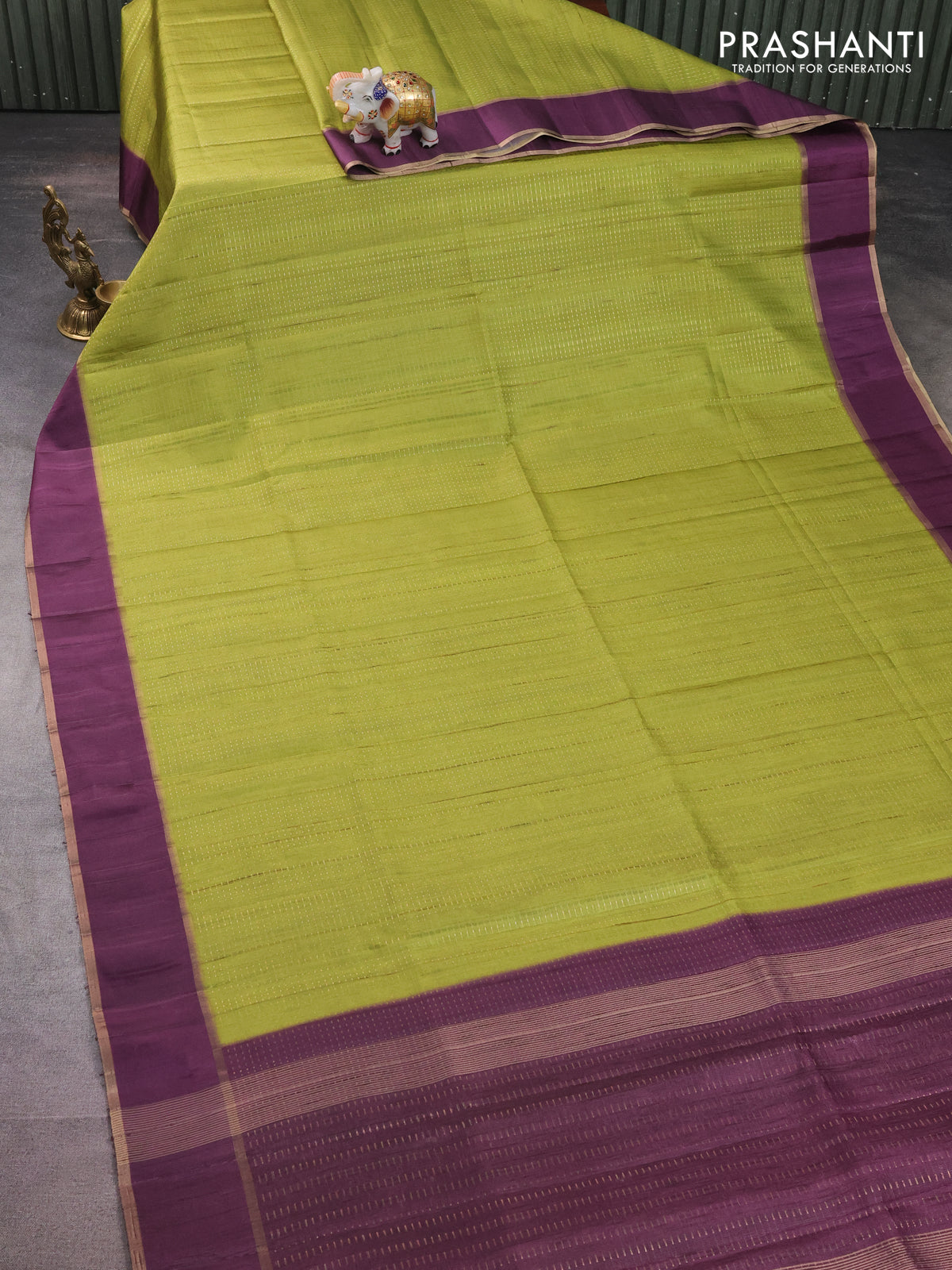 Semi matka saree lime green and deep purple with allover zari weaves and rettapet zari woven border