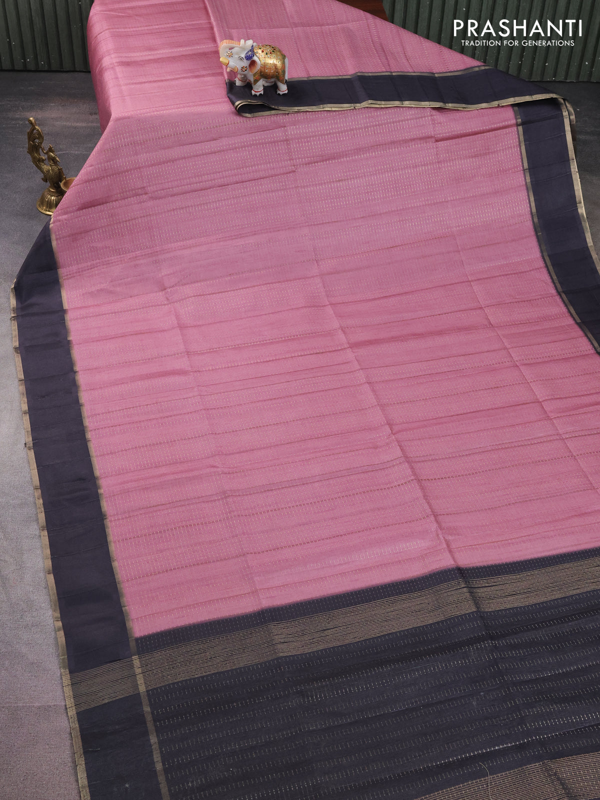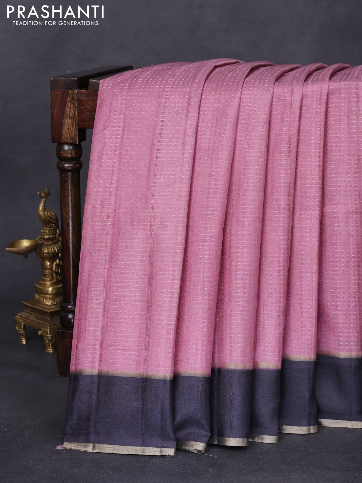 Semi matka saree mauve pink and black with allover zari weaves and rettapet zari woven border