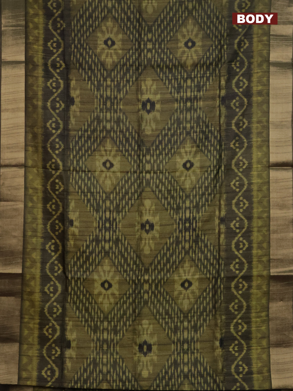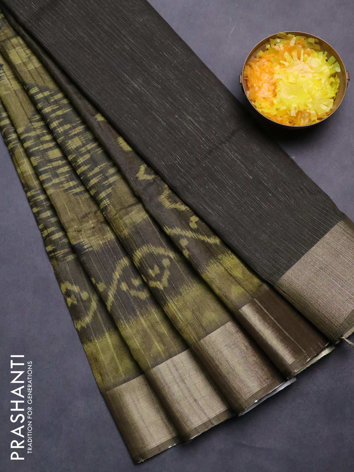 Semi matka saree mehendi green with allover ikat prints and zari woven border