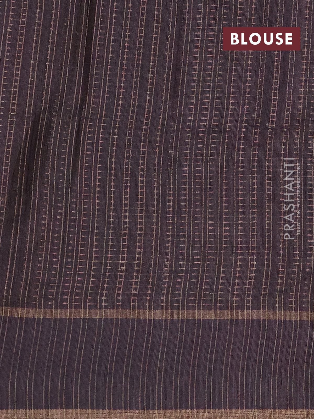 Semi matka saree peach shade and deep jamun with allover zari weaves and rettapet zari woven border