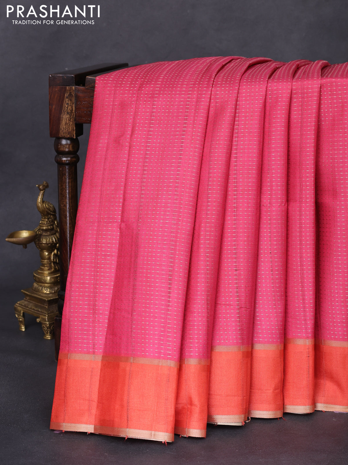 Semi matka saree pink and orange with allover zari weaves and rettapet zari woven border