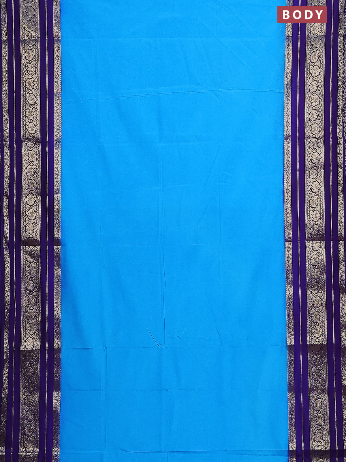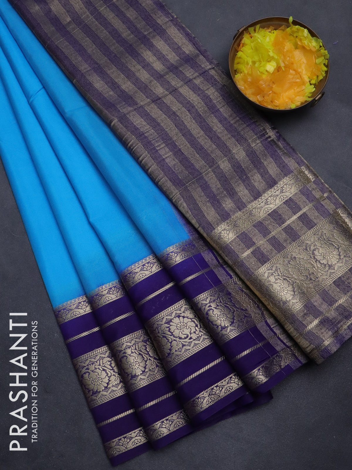 Semi mysore silk saree light blue and blue with plain body and long zari woven border