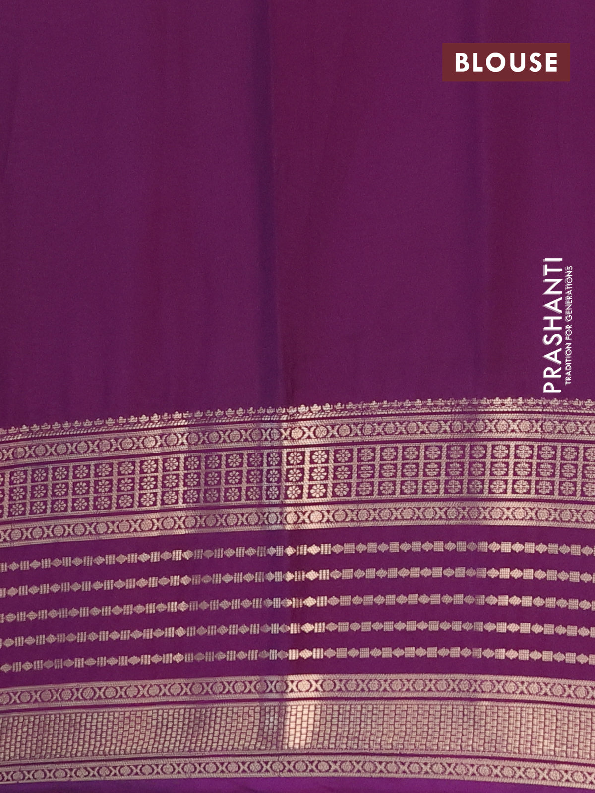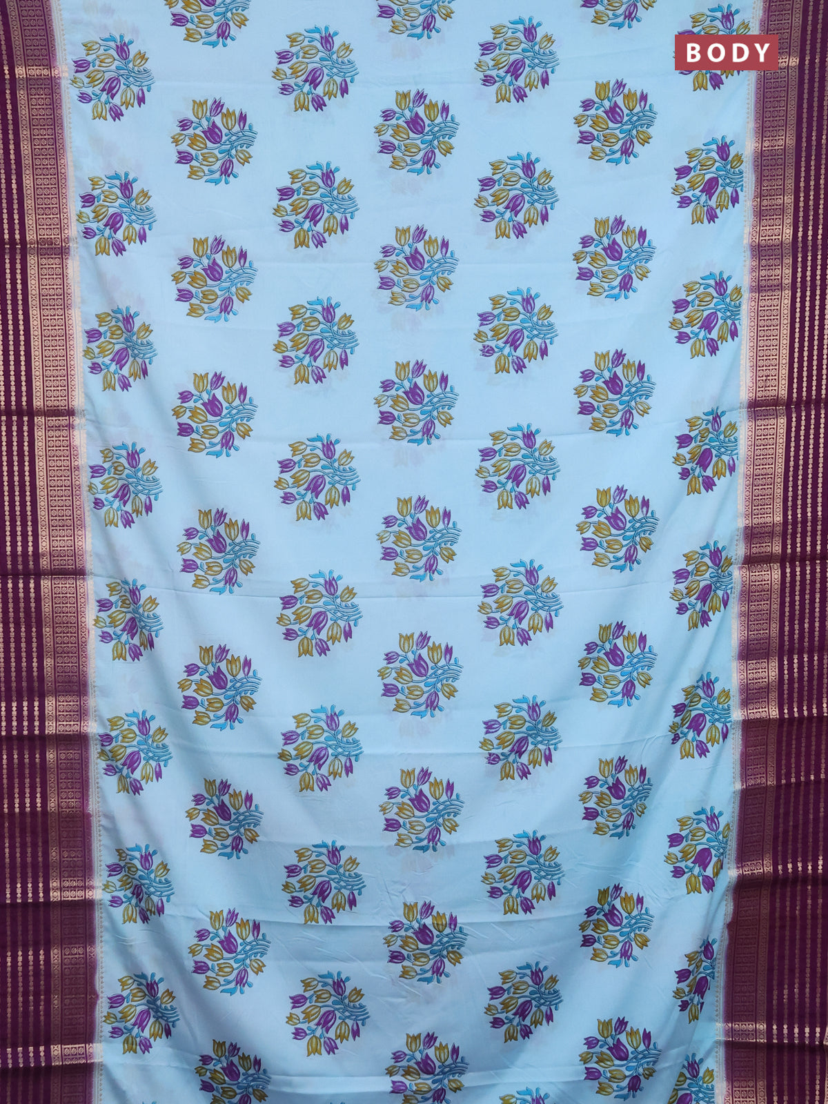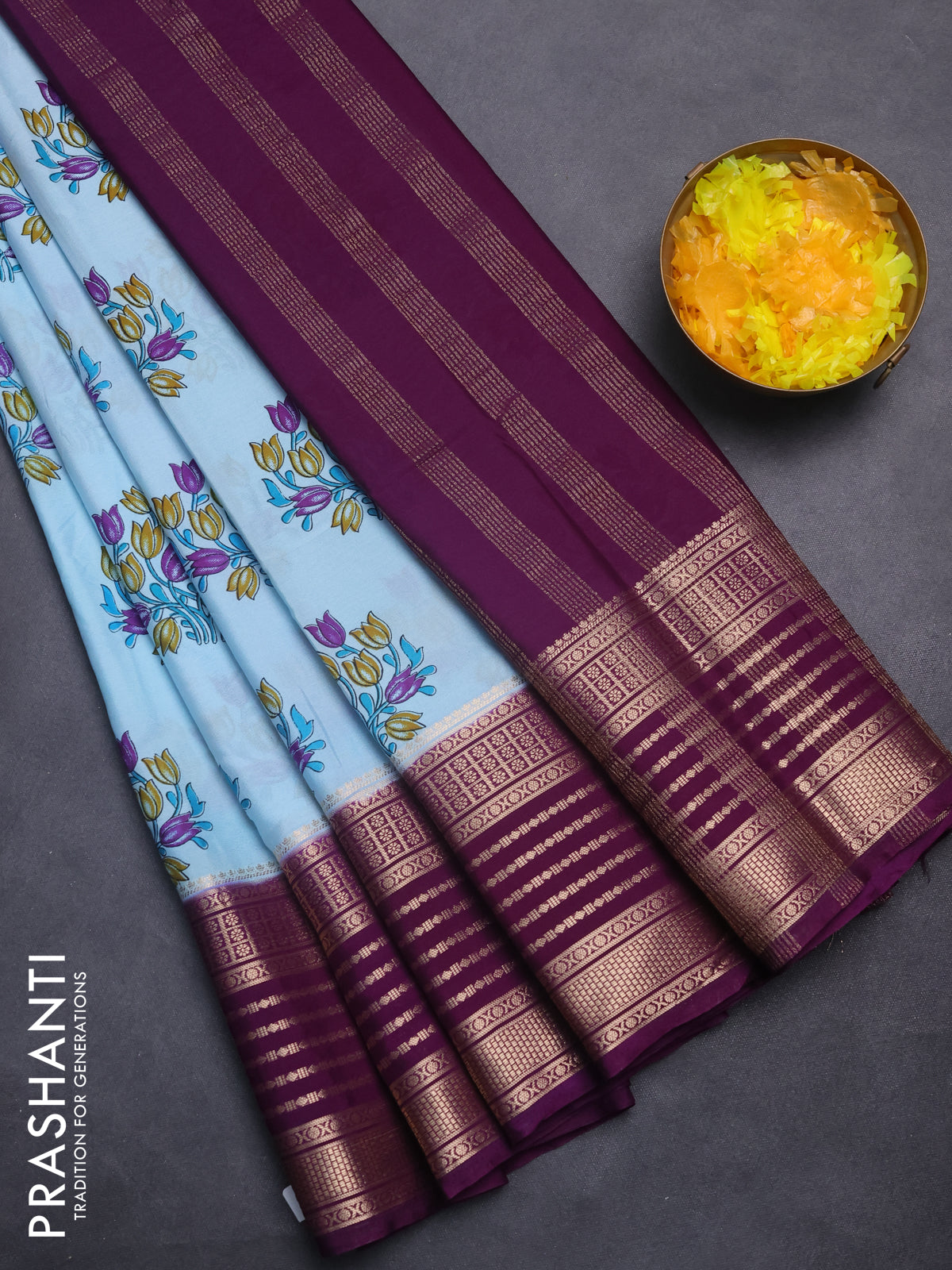 Semi mysore silk saree light blue and deep purple with floral butta prints and zari woven border