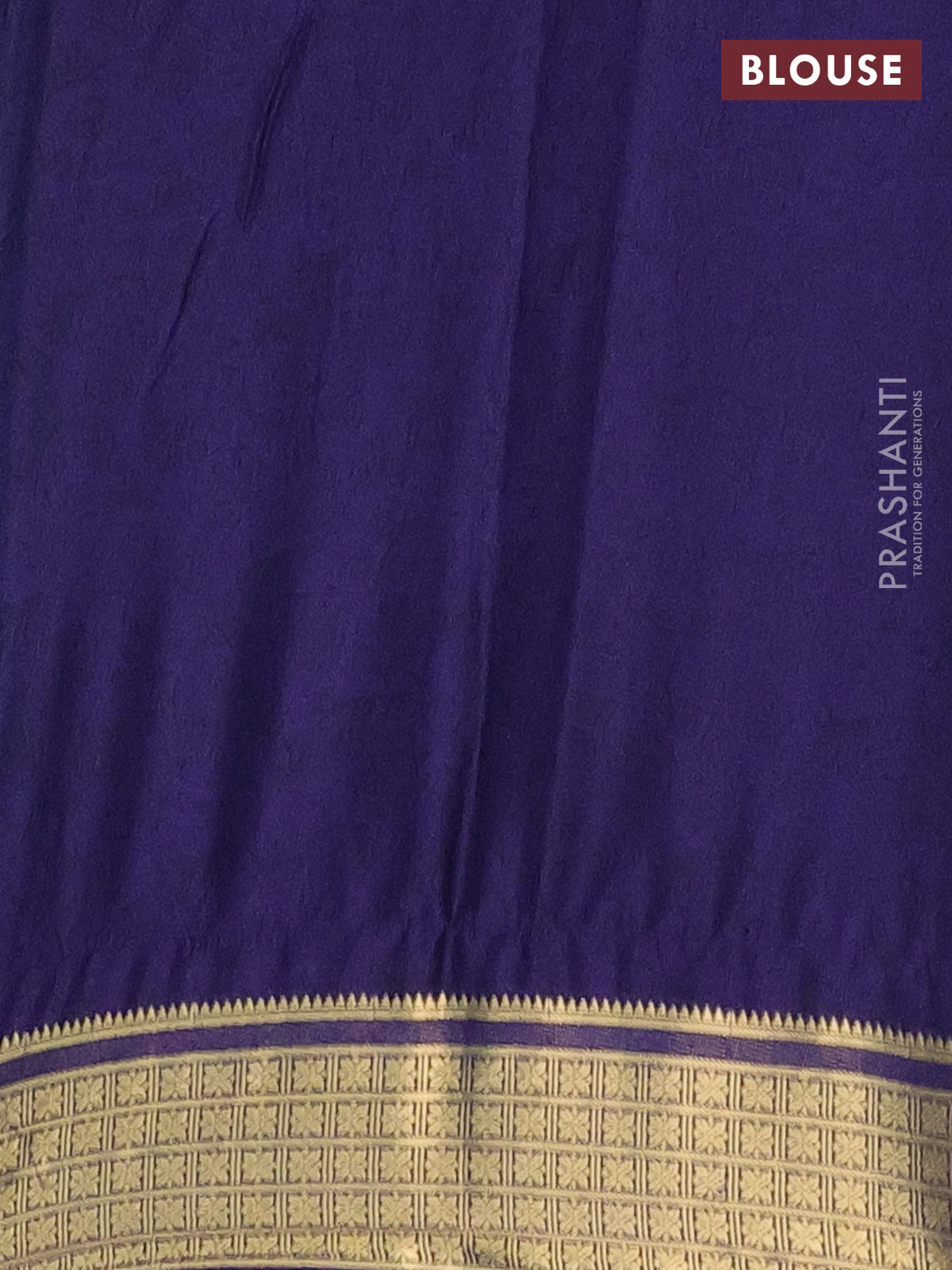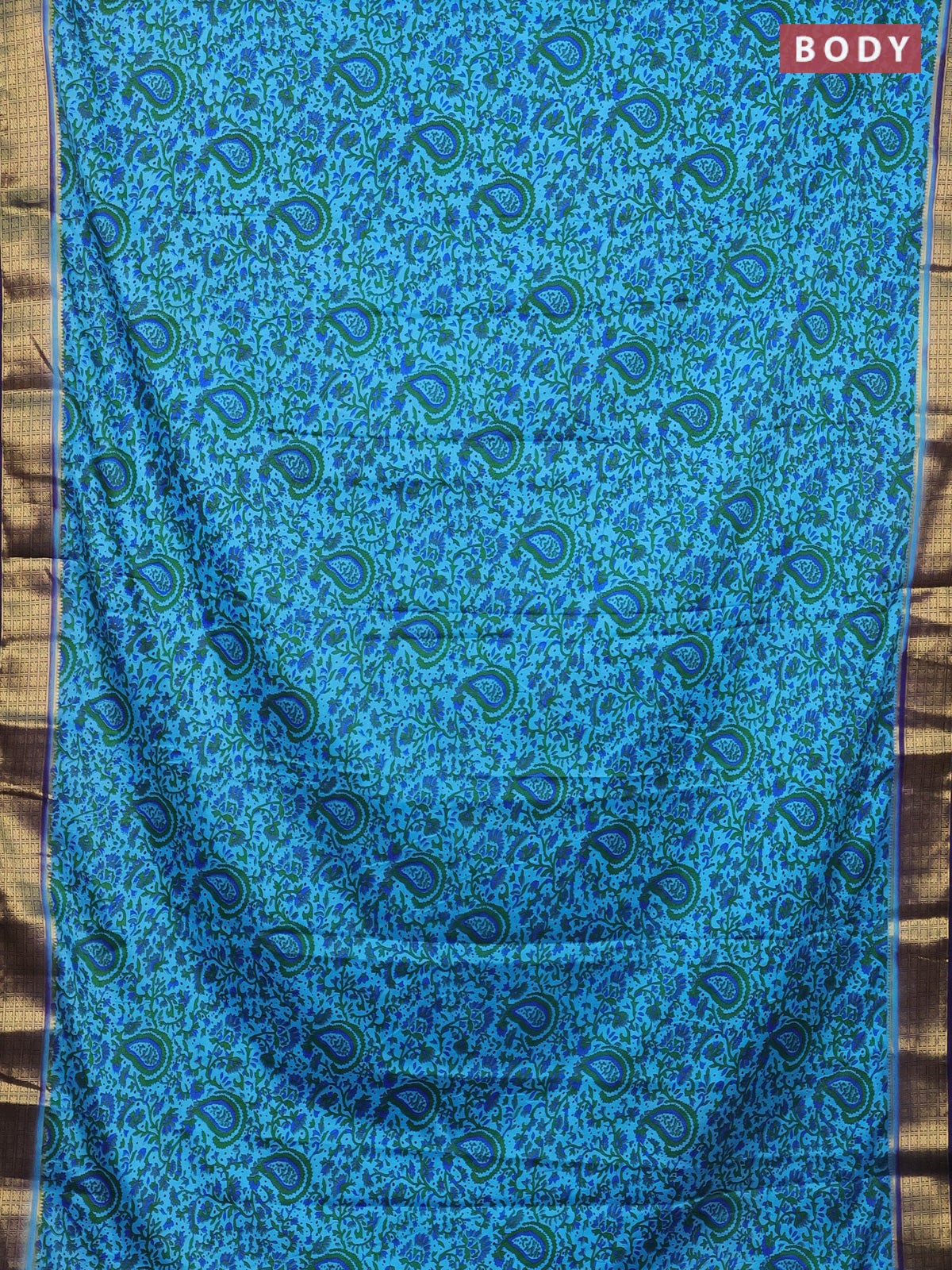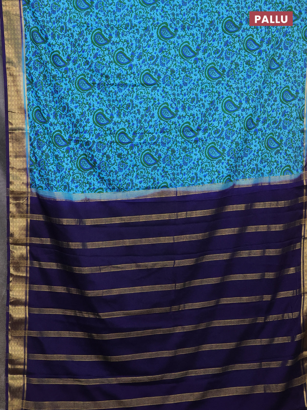 Semi mysore silk saree light blue and navy blue with allover prints and zari woven border