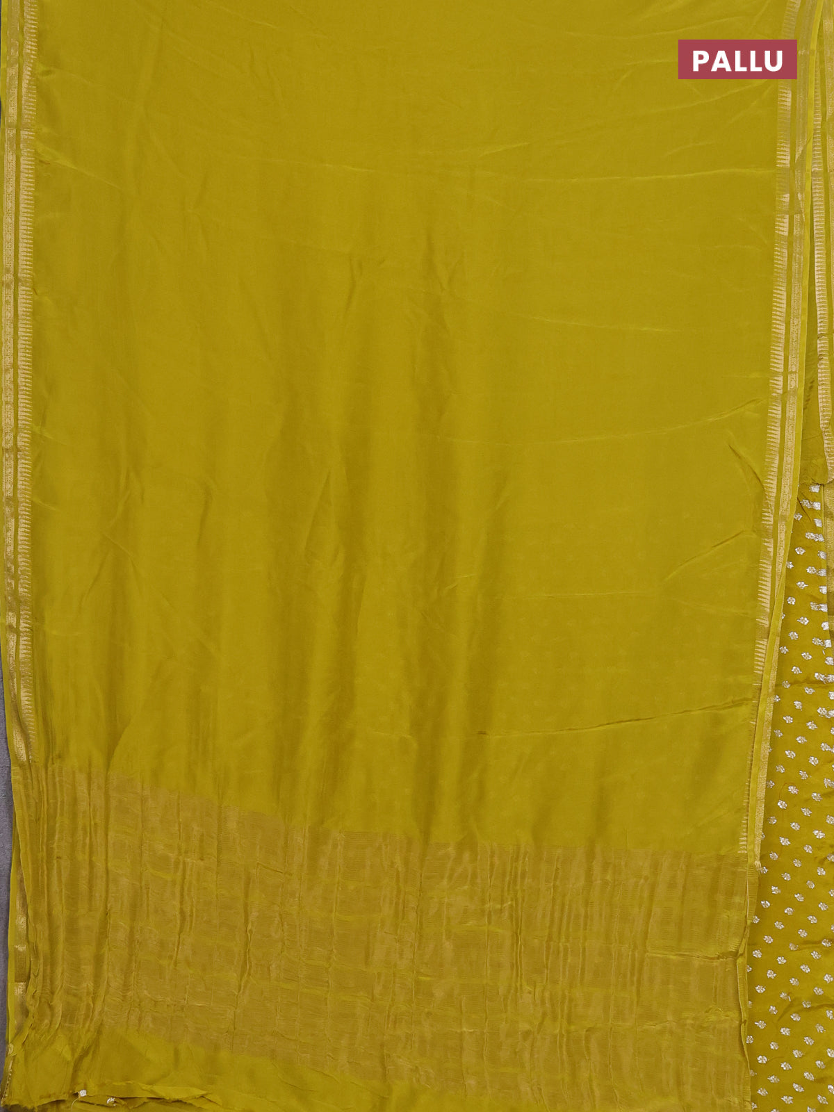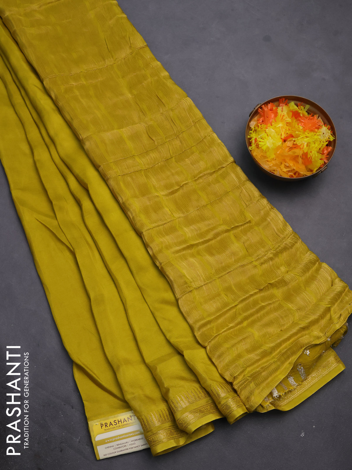 Semi mysore silk saree lime yellow with plain body and temple design zari woven border