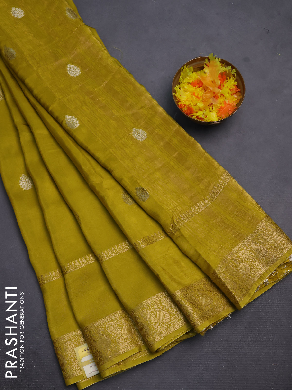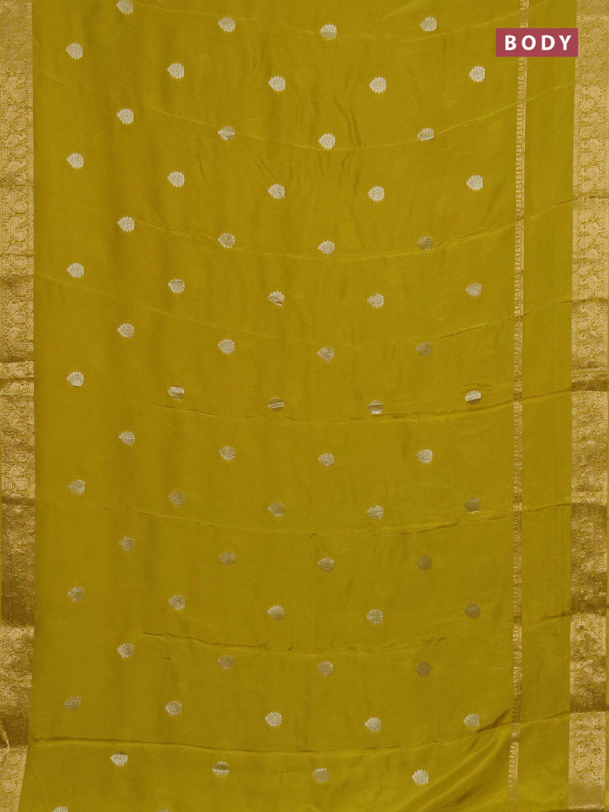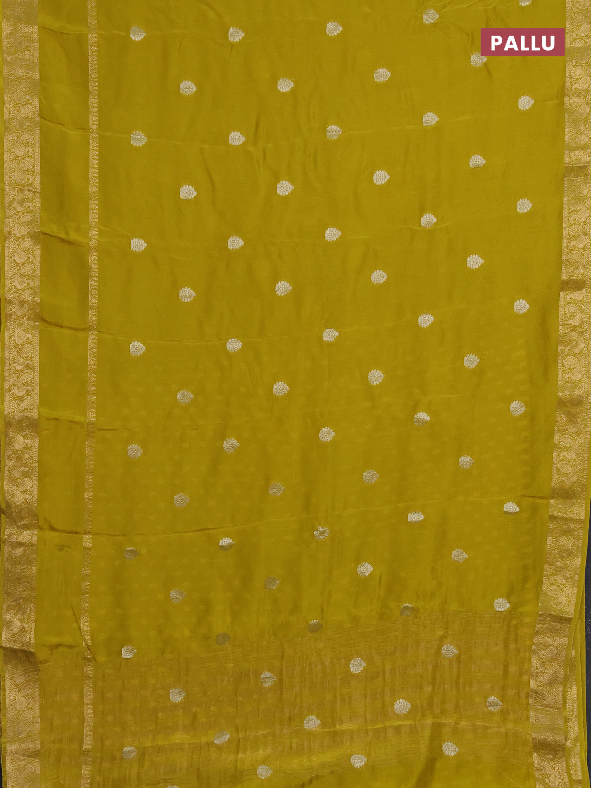Semi mysore silk saree lime yellow with zari woven buttas and long rettapet zari woven border