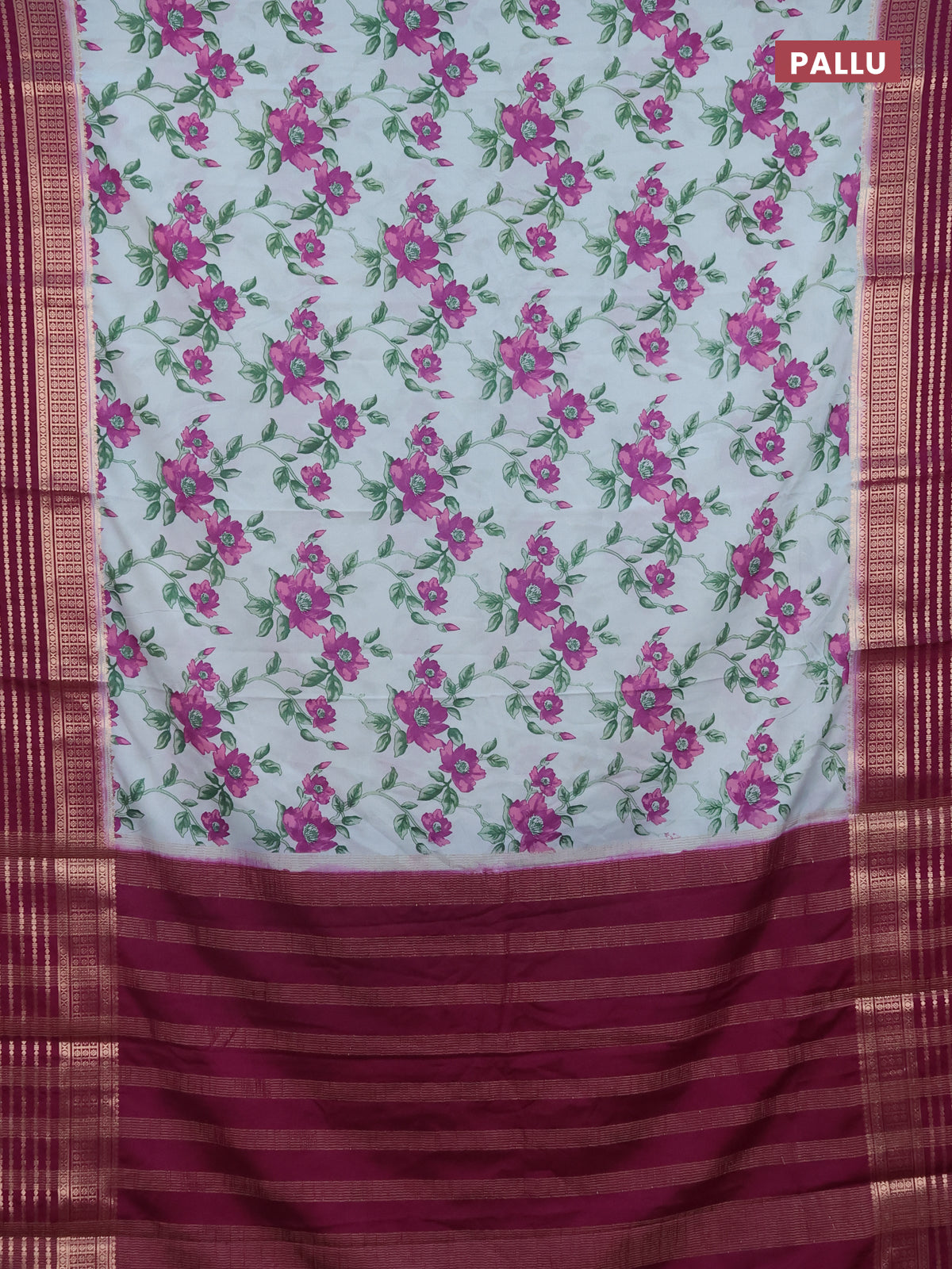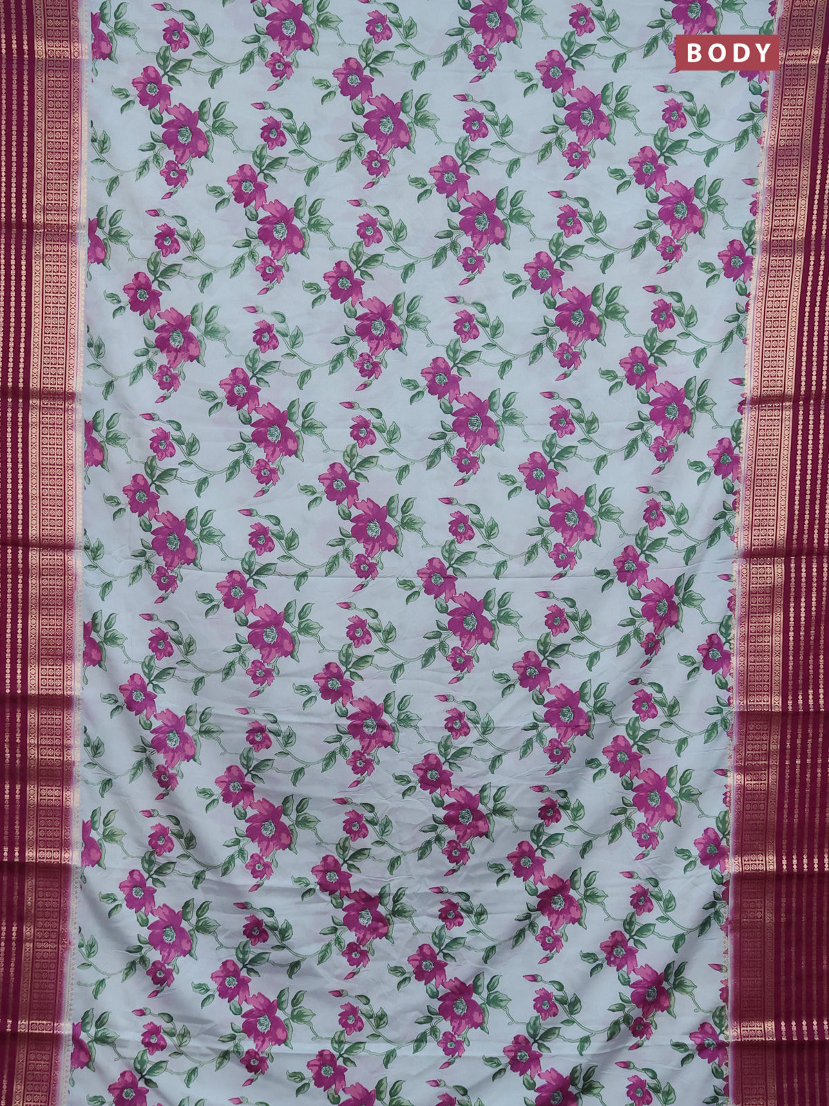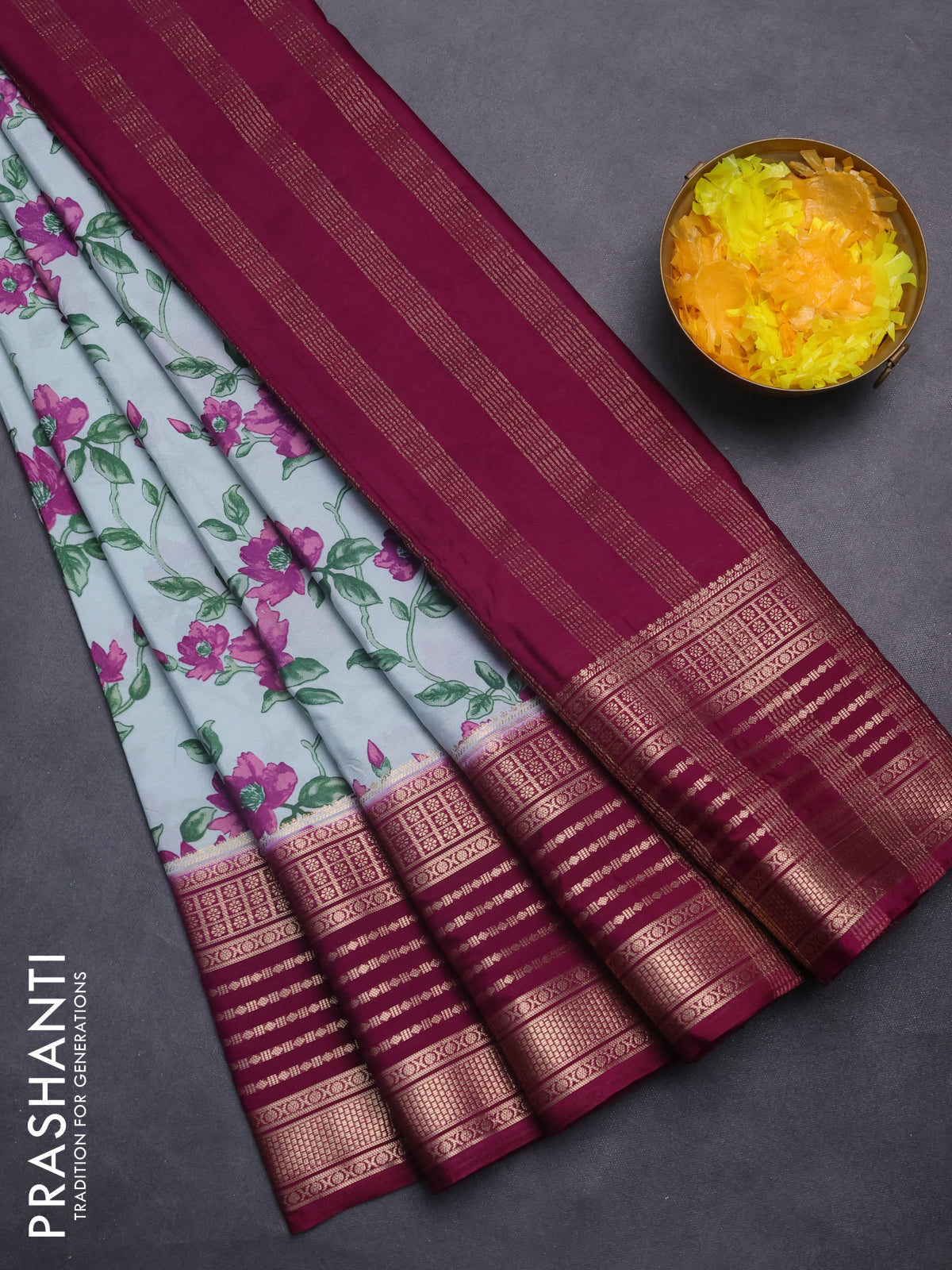 Semi mysore silk saree pastel blue and purple with allover floral prints and zari woven border