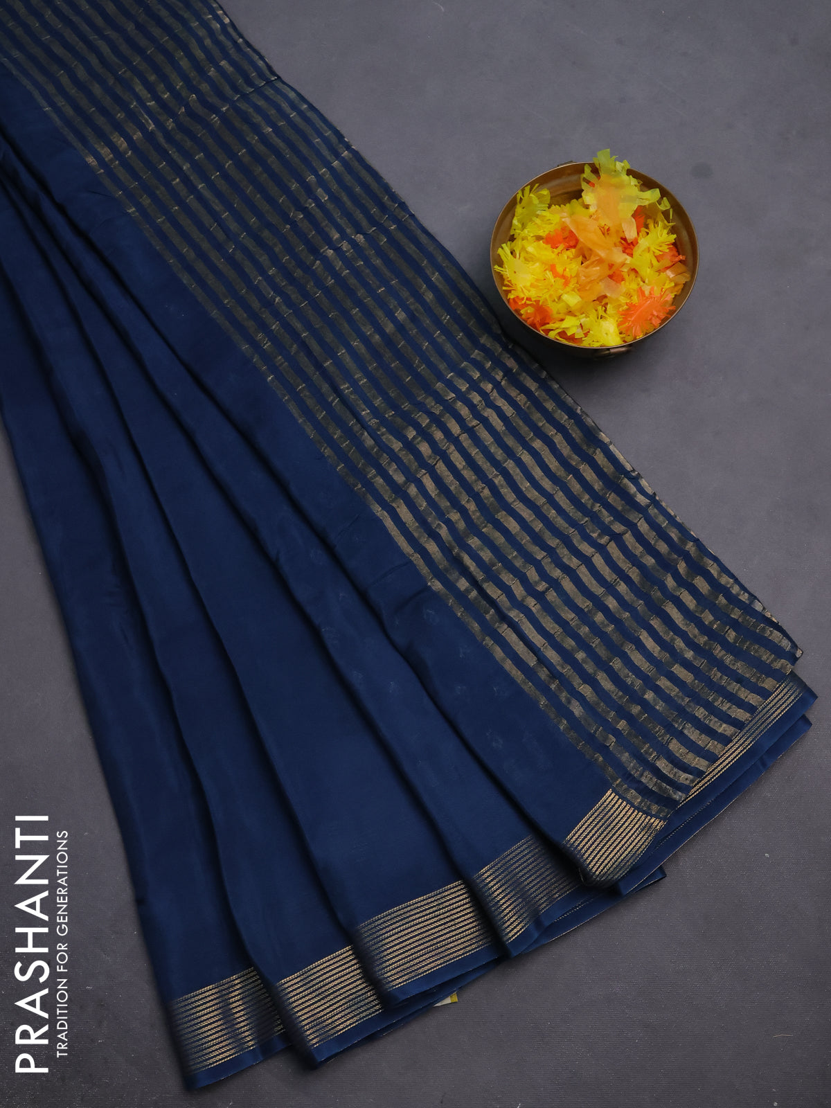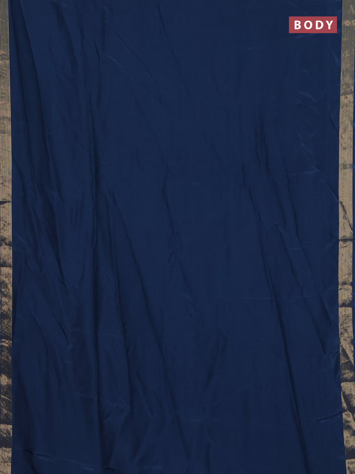 Semi mysore silk saree peacock blue with plain body and zari woven border