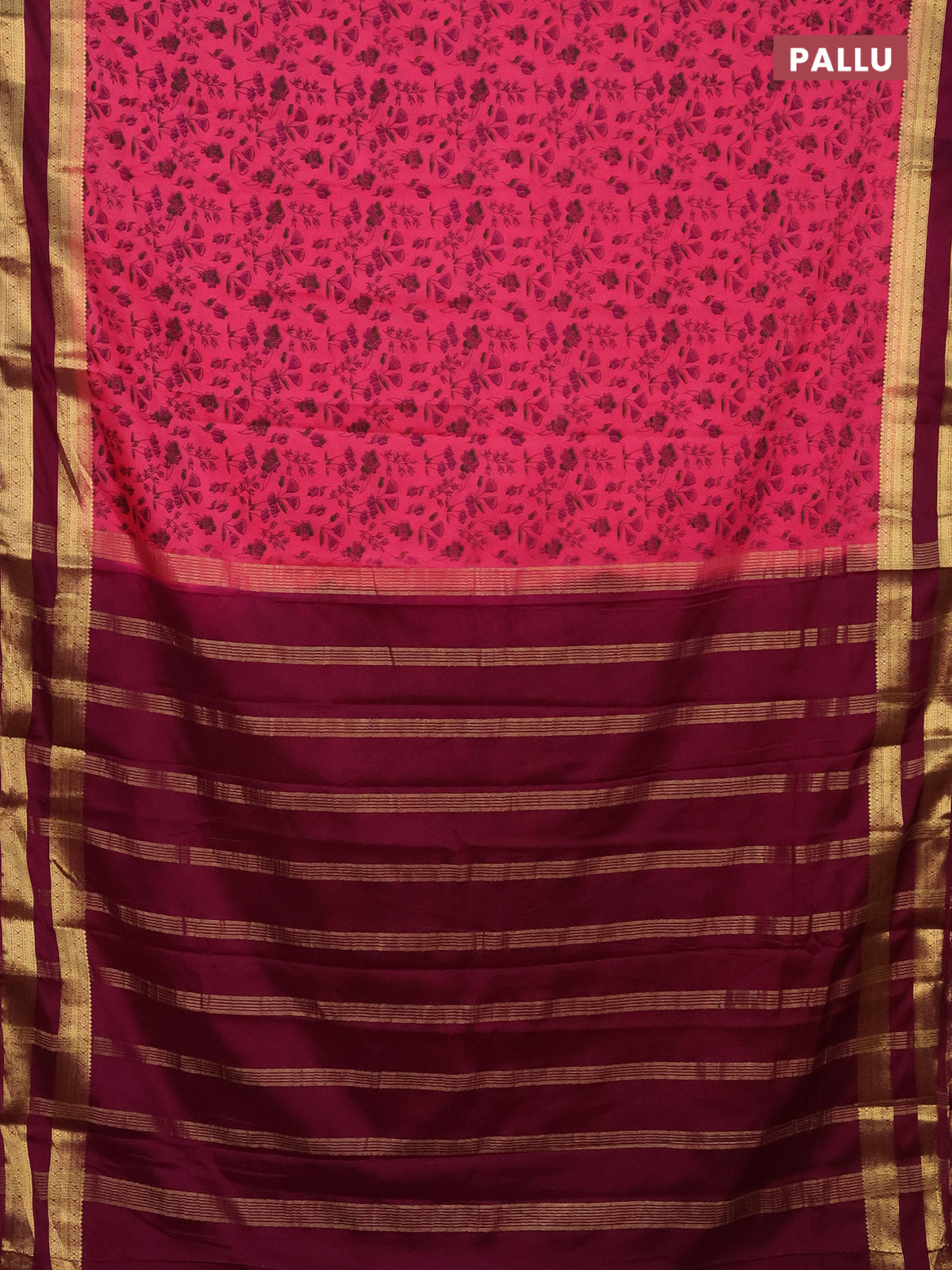 Semi mysore silk saree pink and deep purple with allover prints and rettapet zari woven border