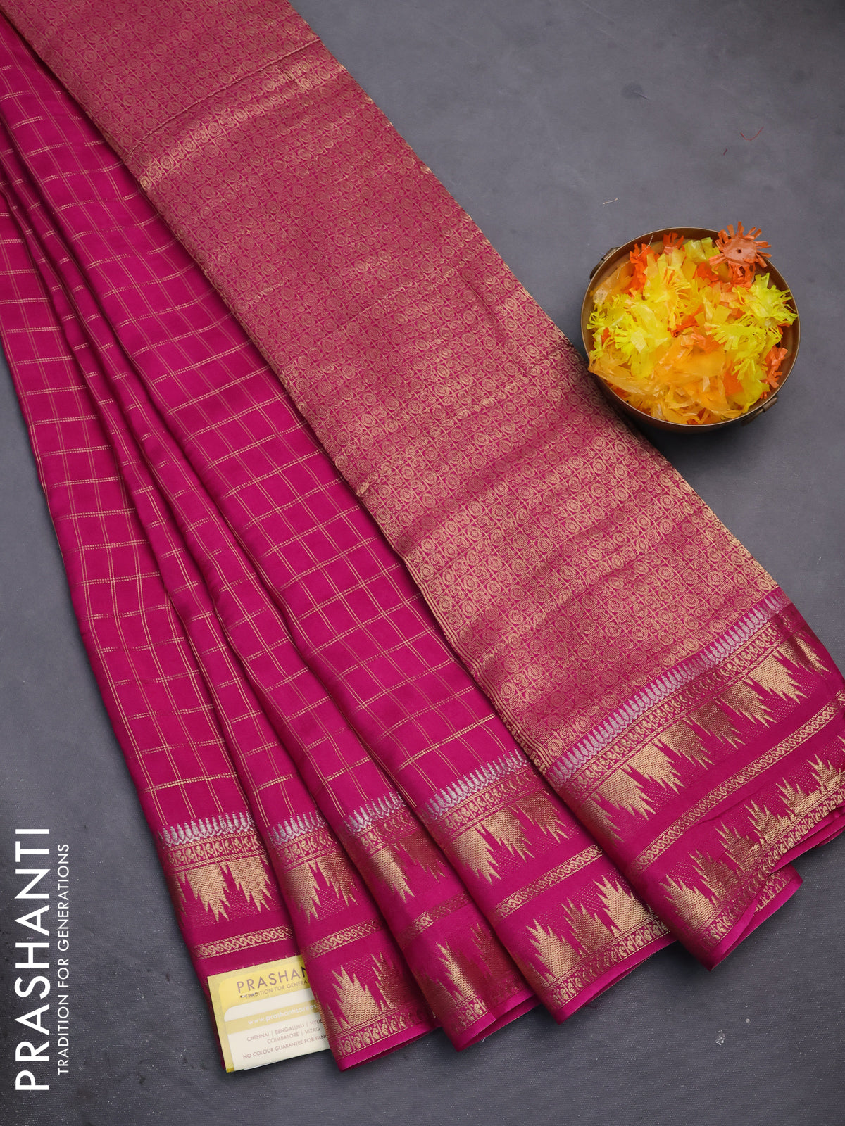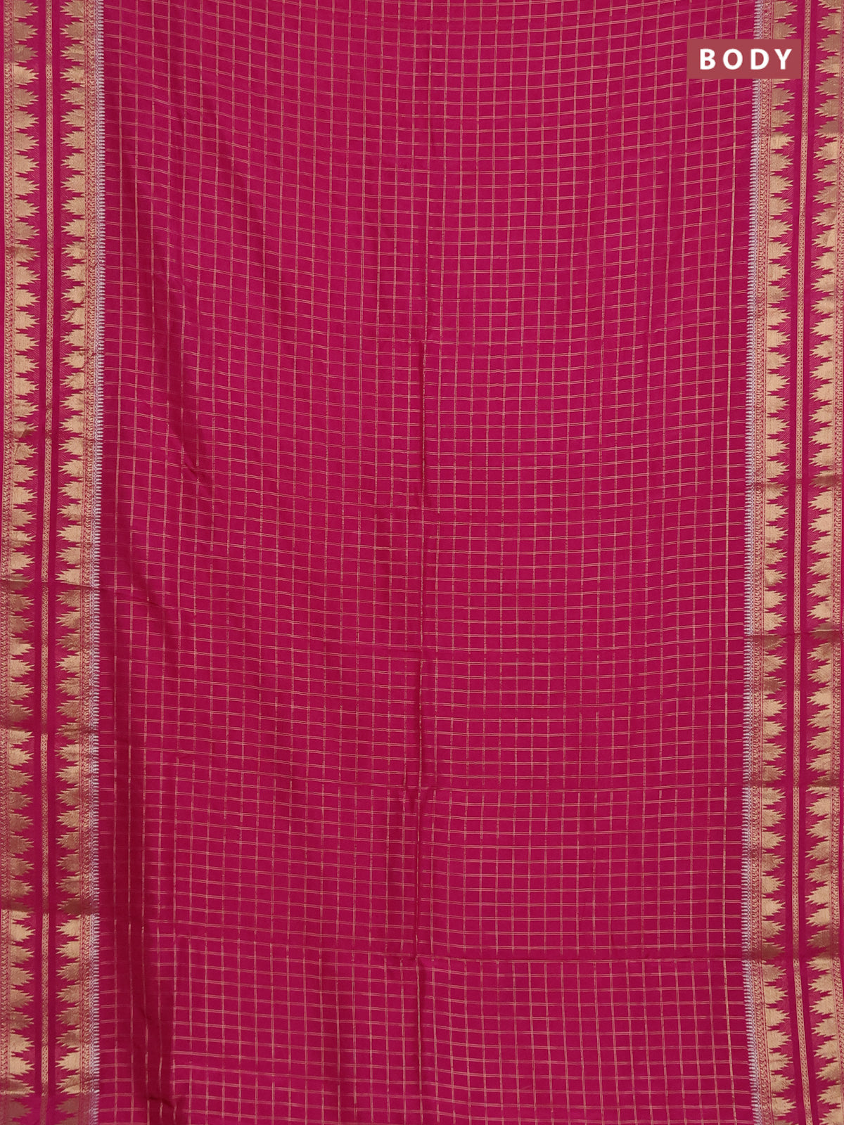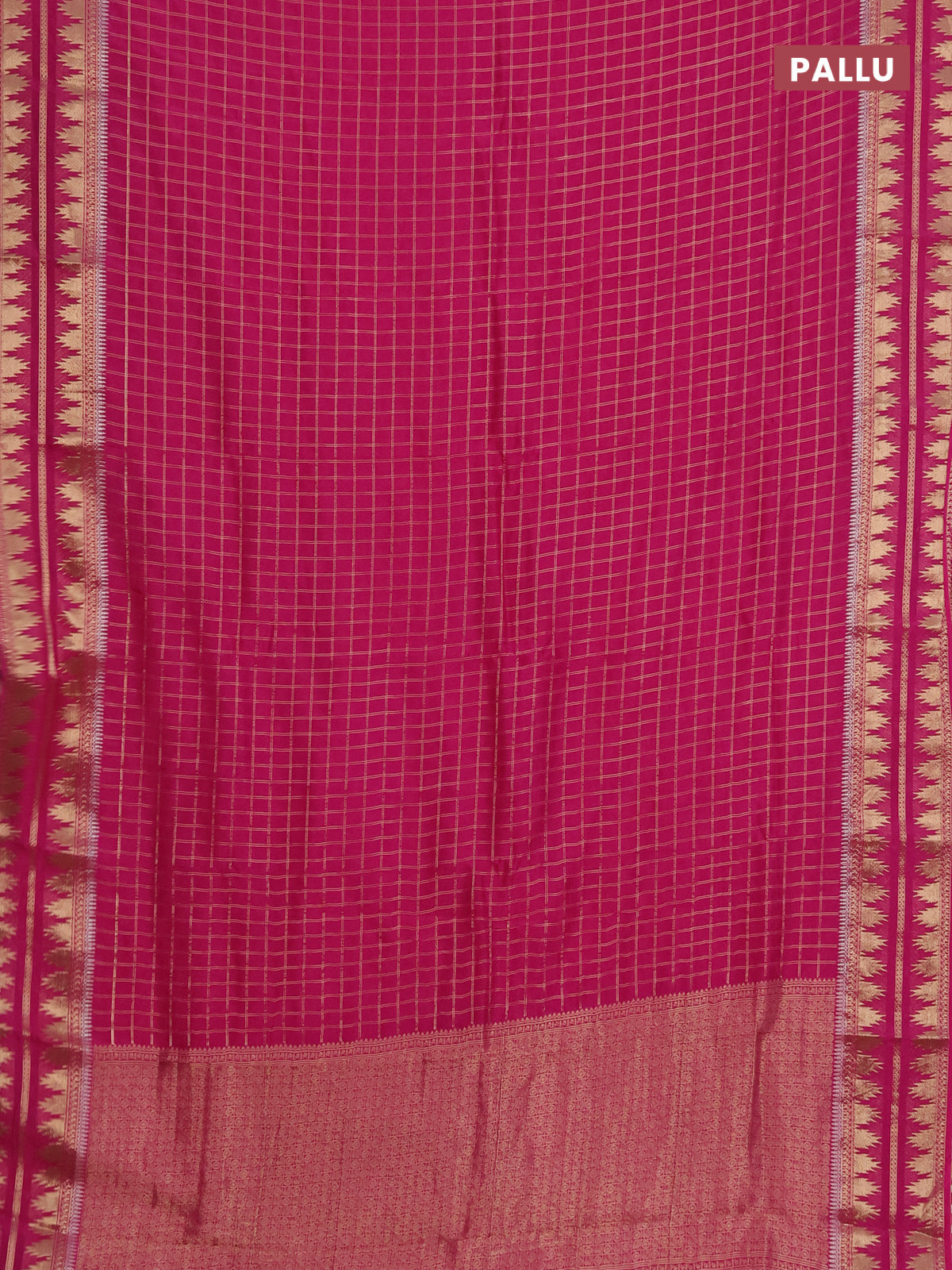 Semi mysore silk saree pink with allover zari checked pattern and temple design zari woven border