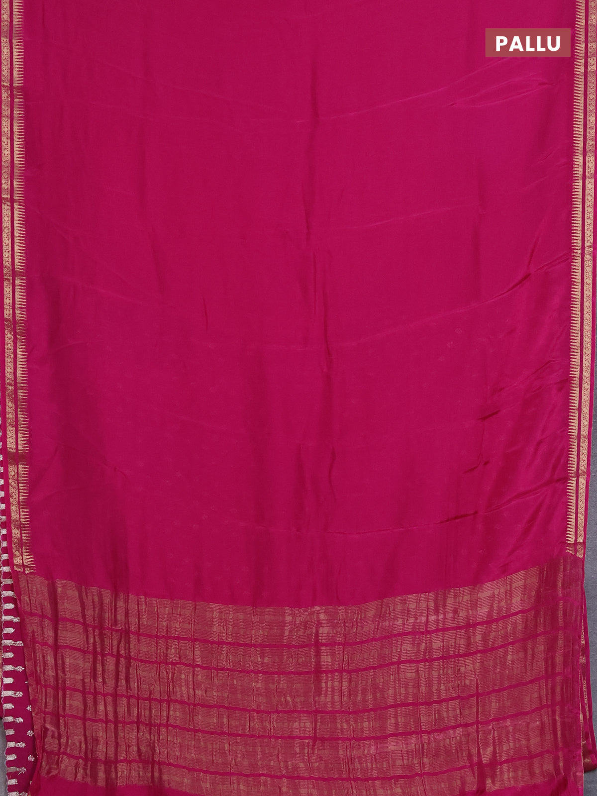 Semi mysore silk saree pink with plain body and temple design zari woven border