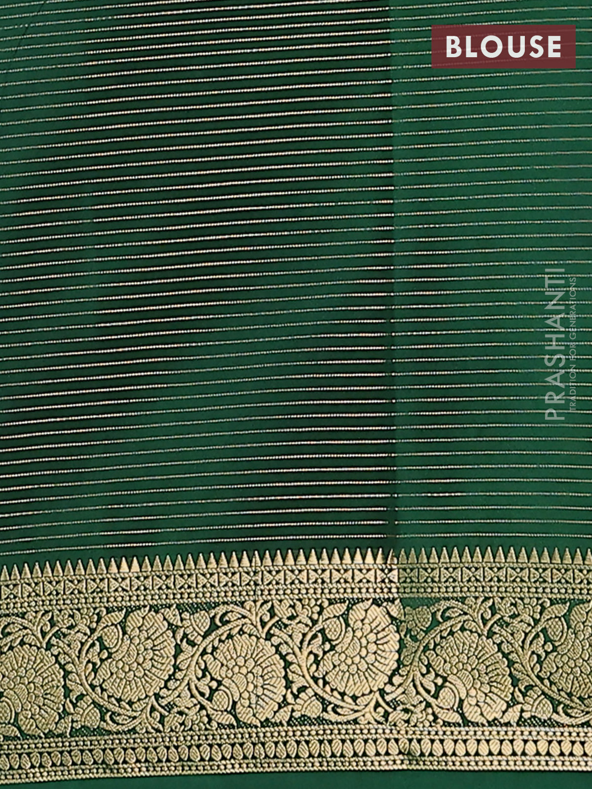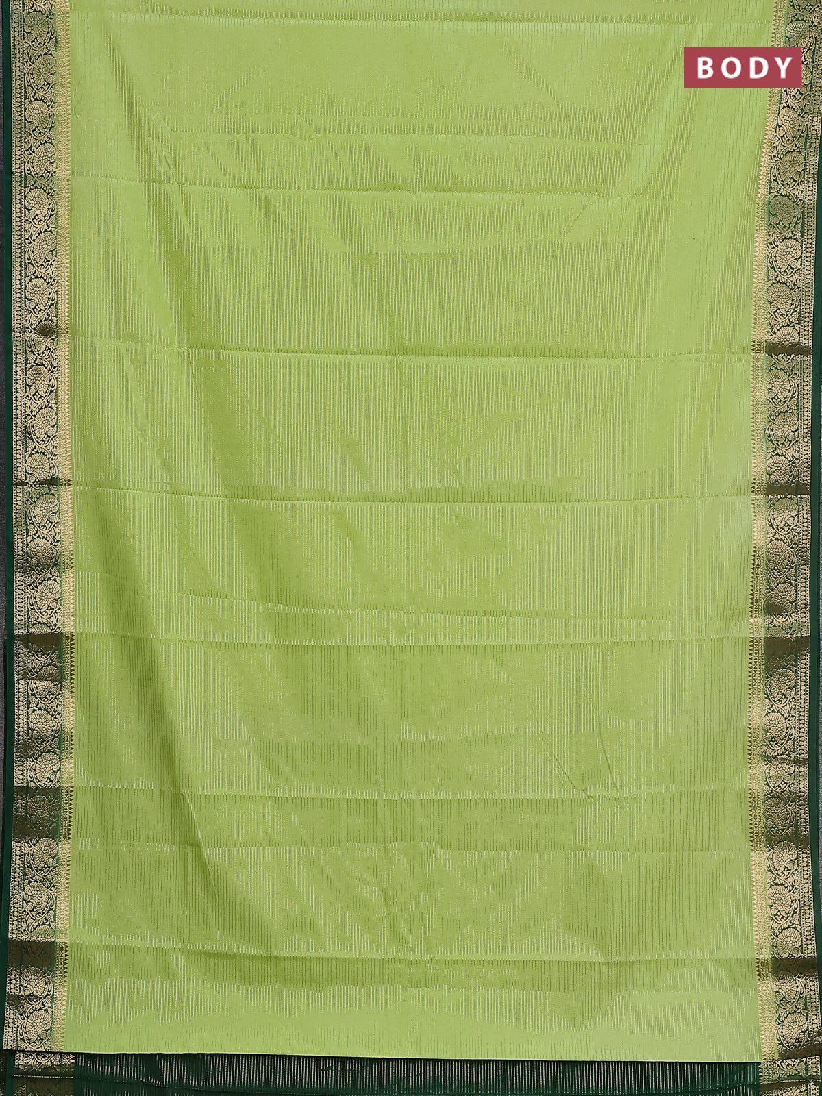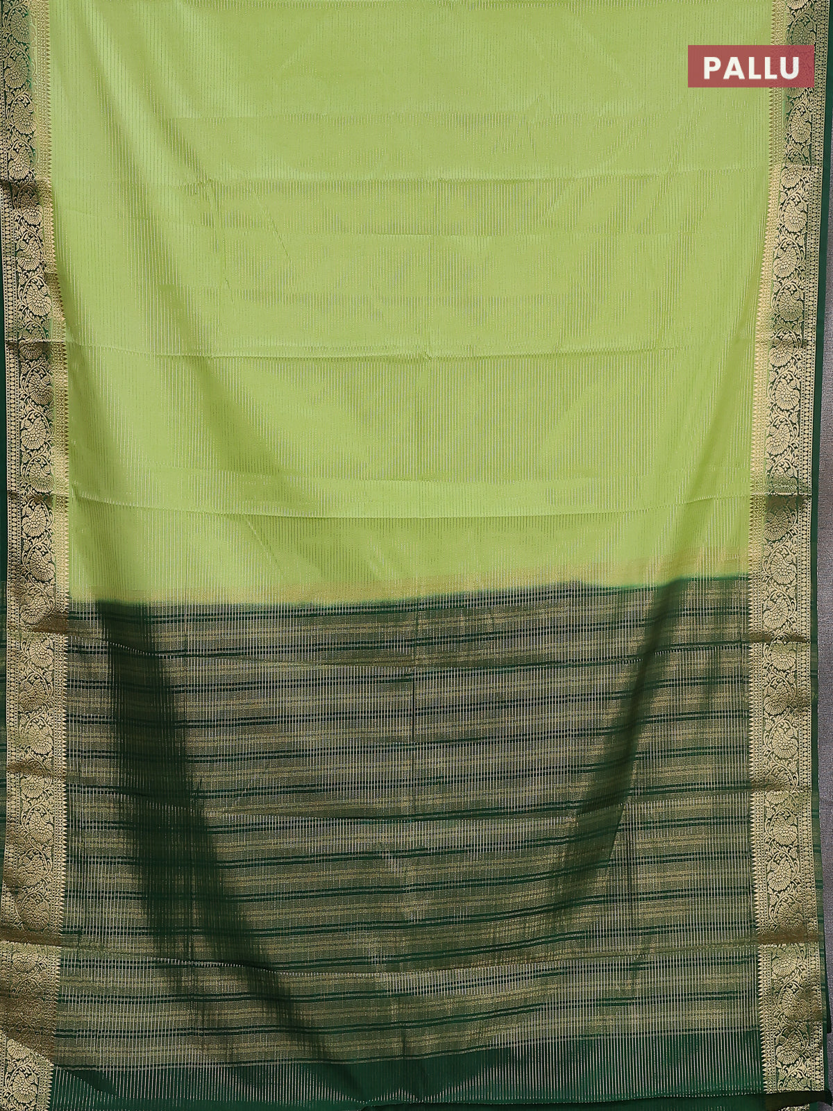 Semi mysore silk saree pista green and green with allover zari stripes pattern and zari woven border