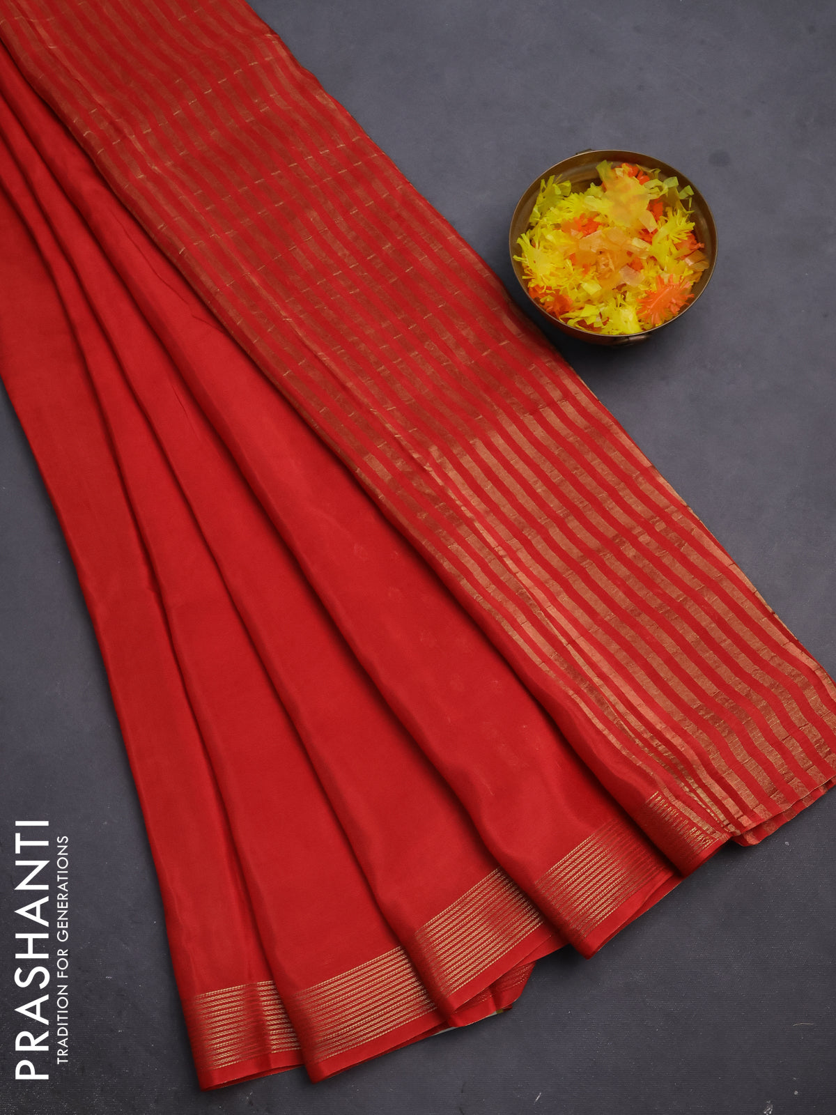 Semi mysore silk saree red with plain body and zari woven border