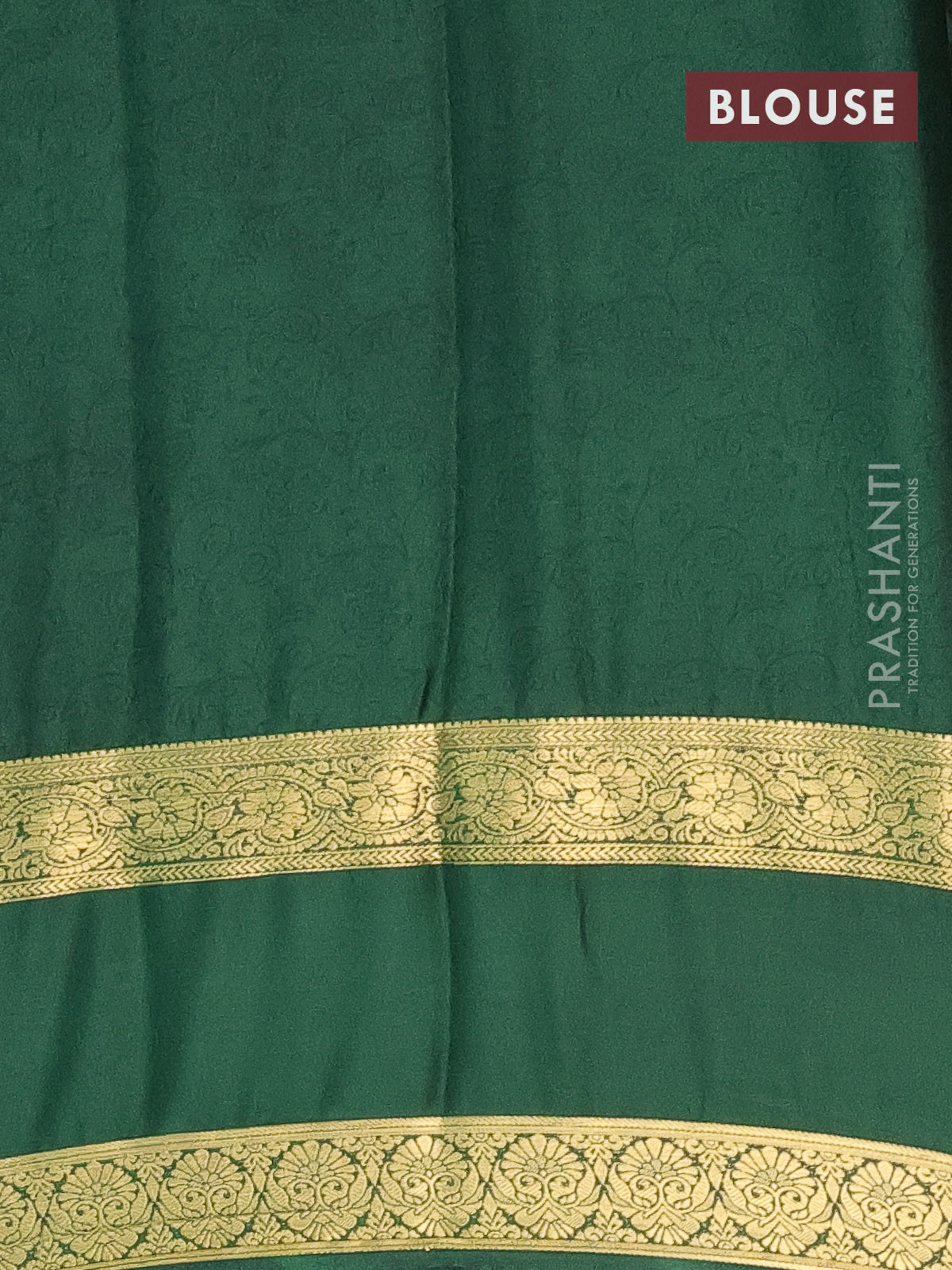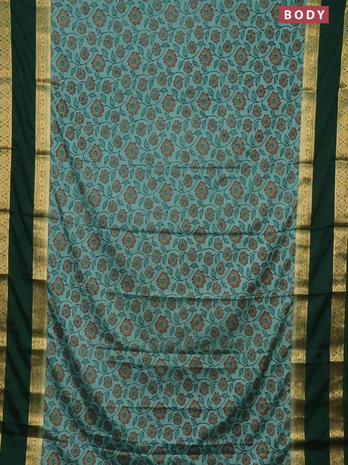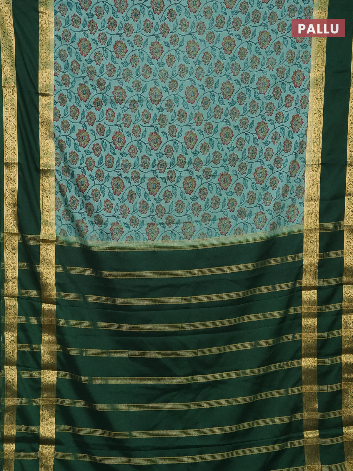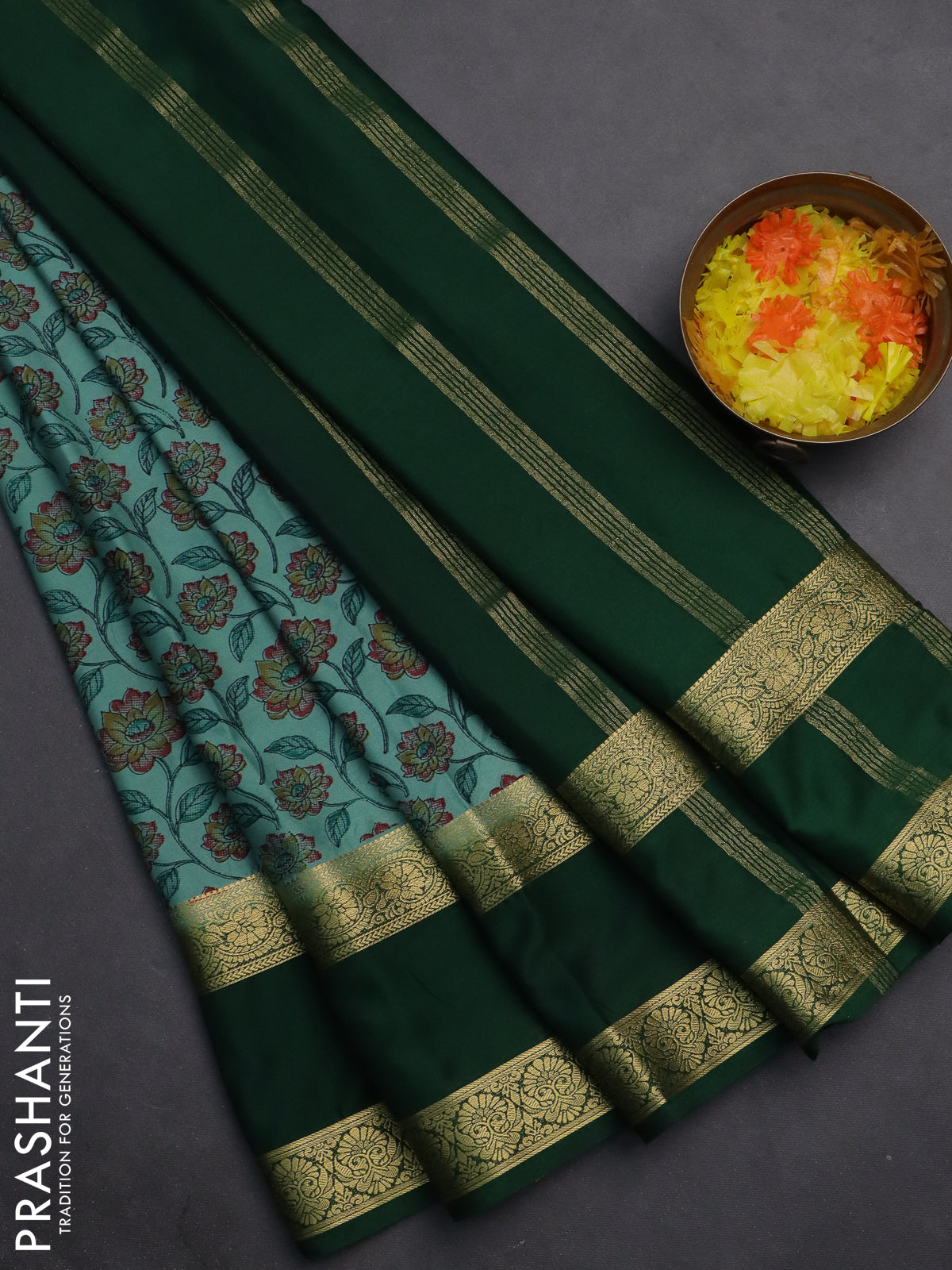 Semi mysore silk saree teal blue and green with allover floral prints and rettapet zari woven border