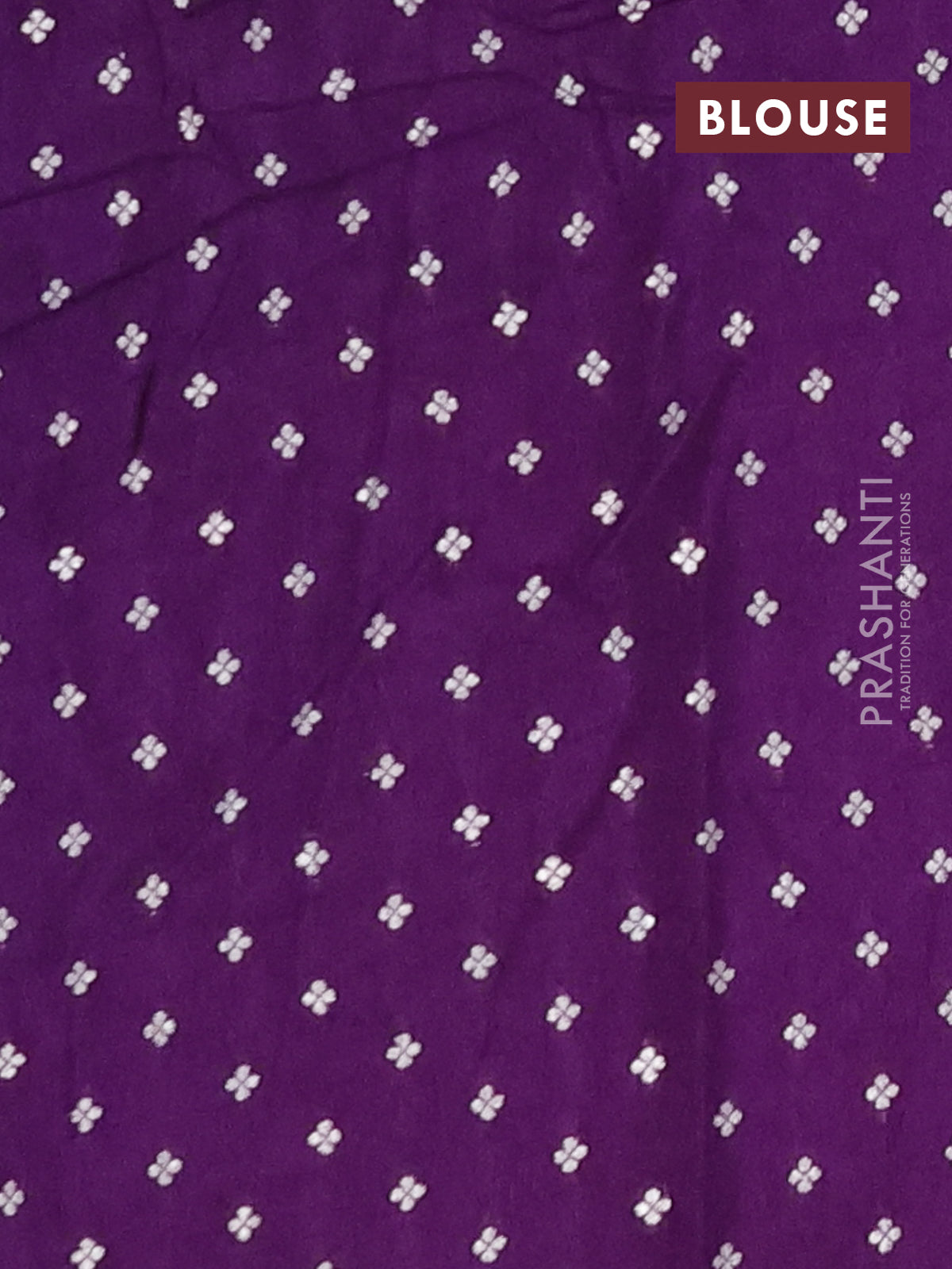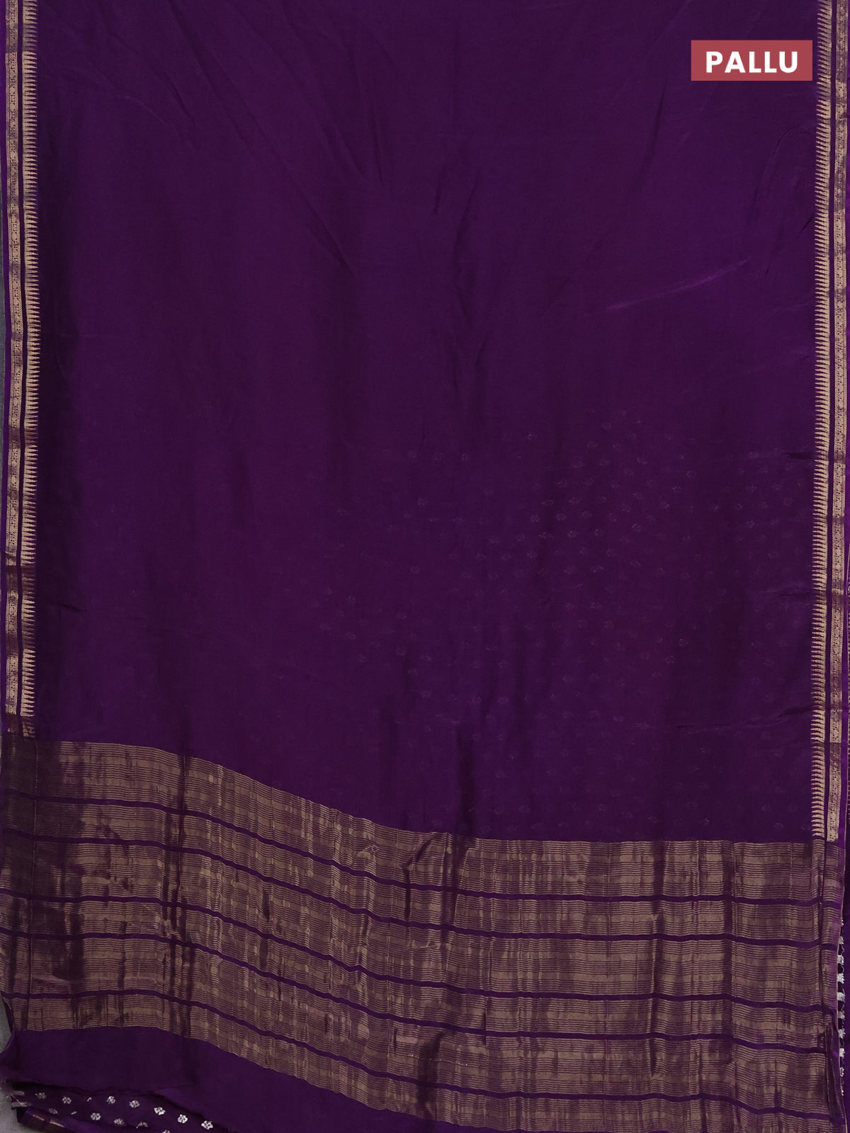 Semi mysore silk saree violet with plain body and temple design zari woven border
