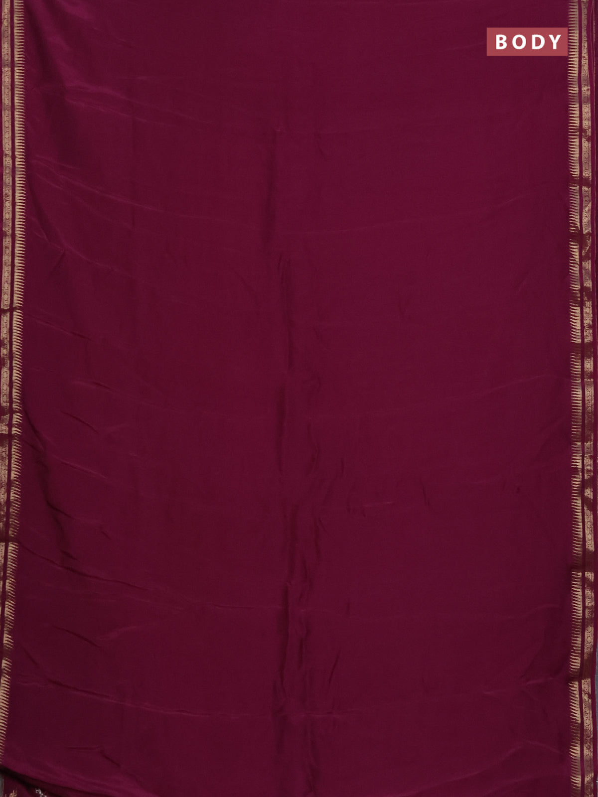 Semi mysore silk saree wine shade with plain body and temple design zari woven border
