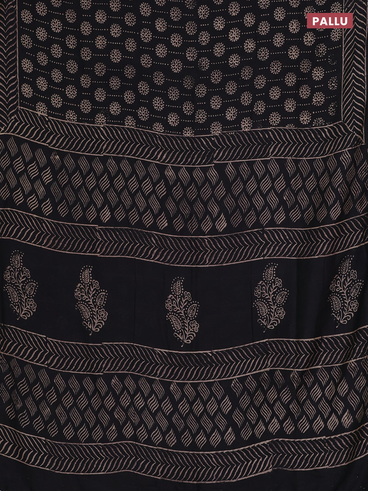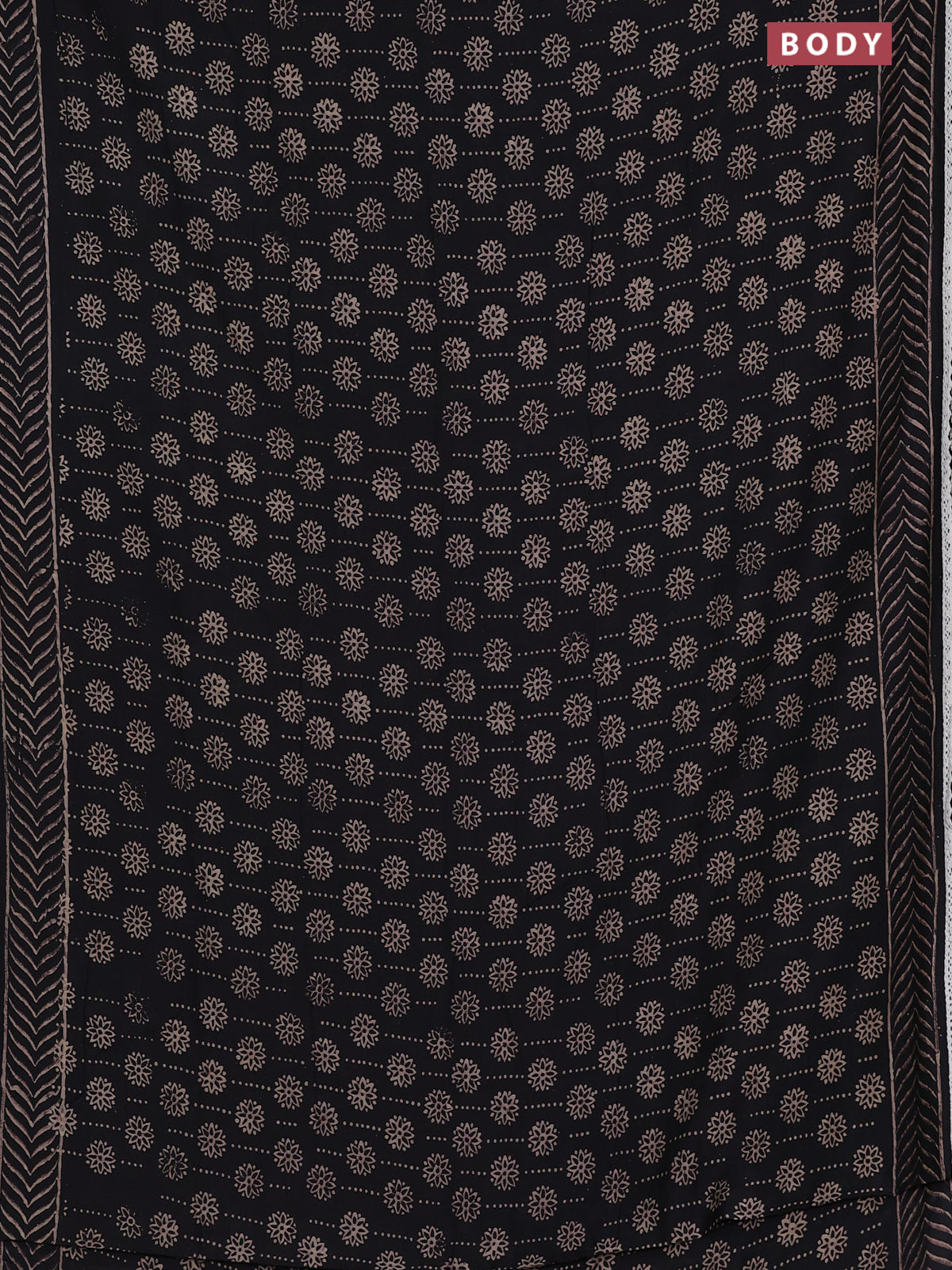 Semi pashmina silk saree black and cream with allover prints and crocia lace work border