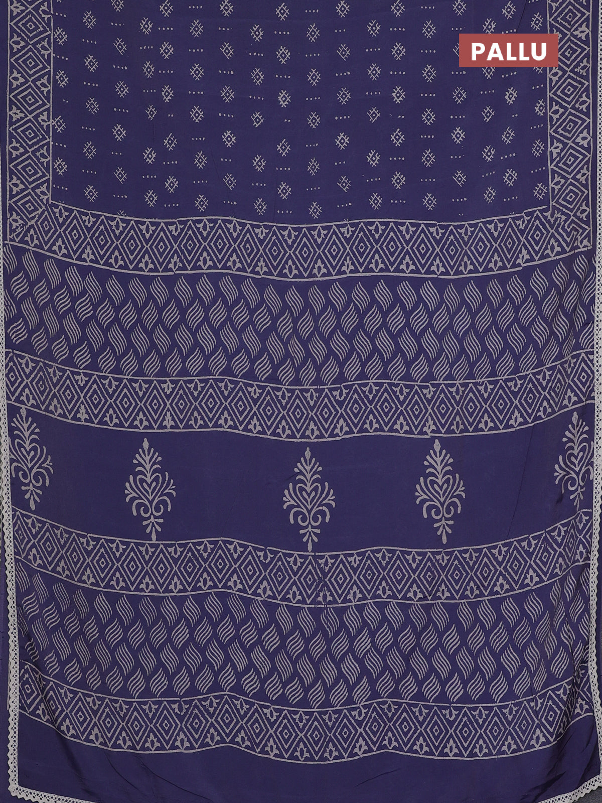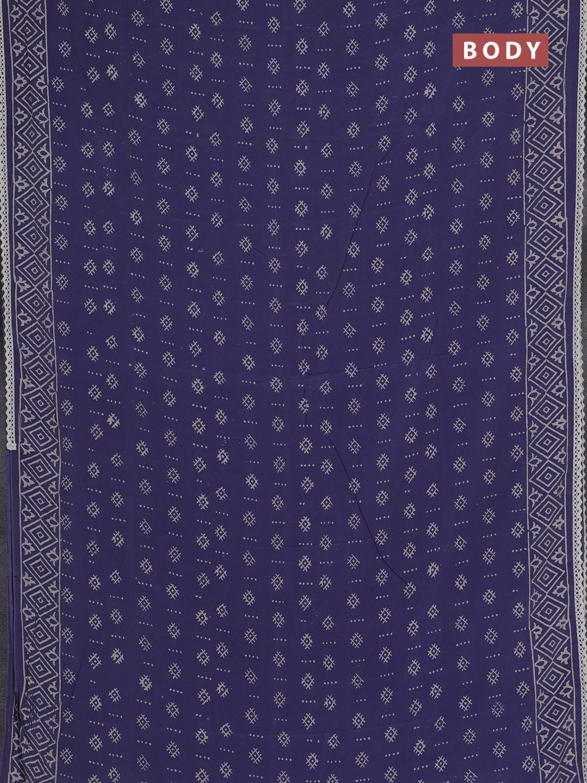 Semi pashmina silk saree blue shade and cream with allover butta prints and crocia lace work border