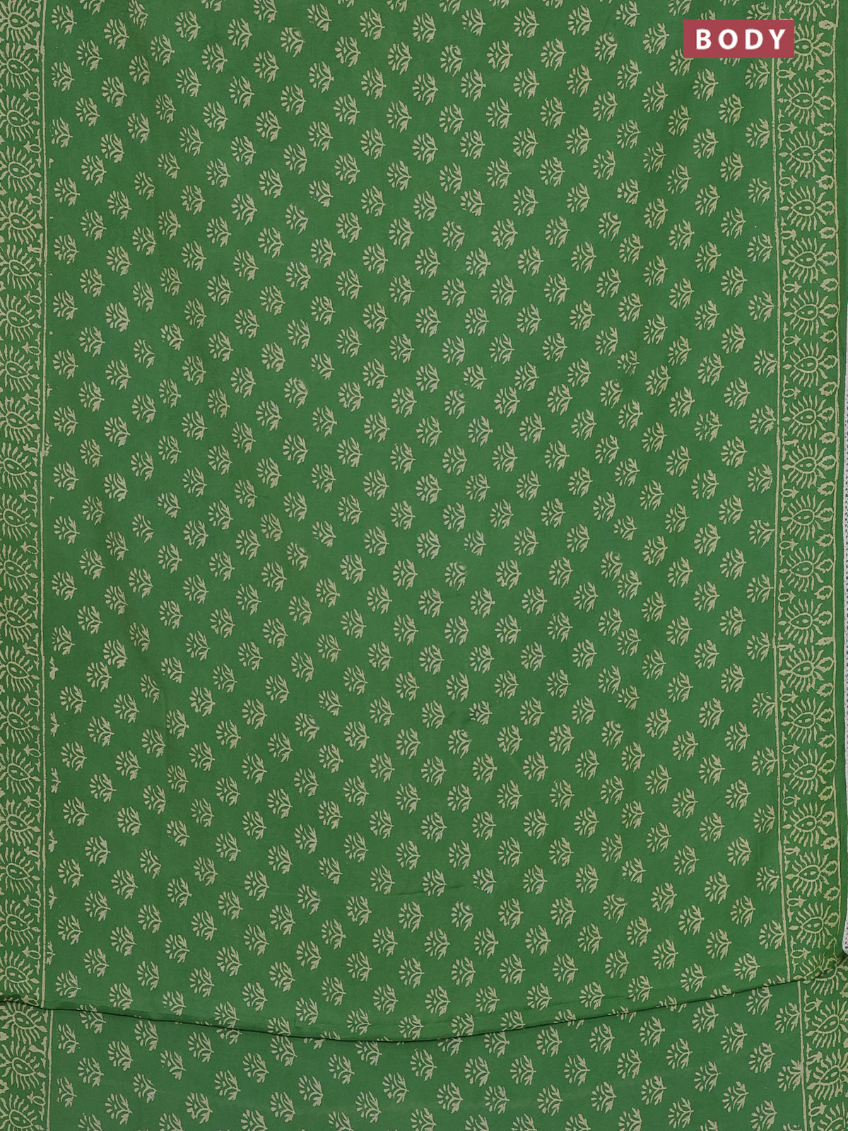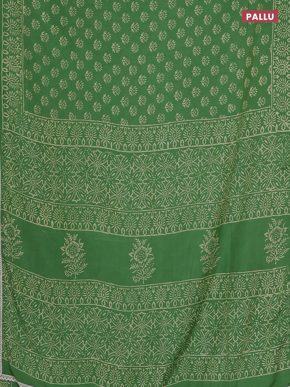 Semi pashmina silk saree green and cream with allover butta prints and crocia lace work border