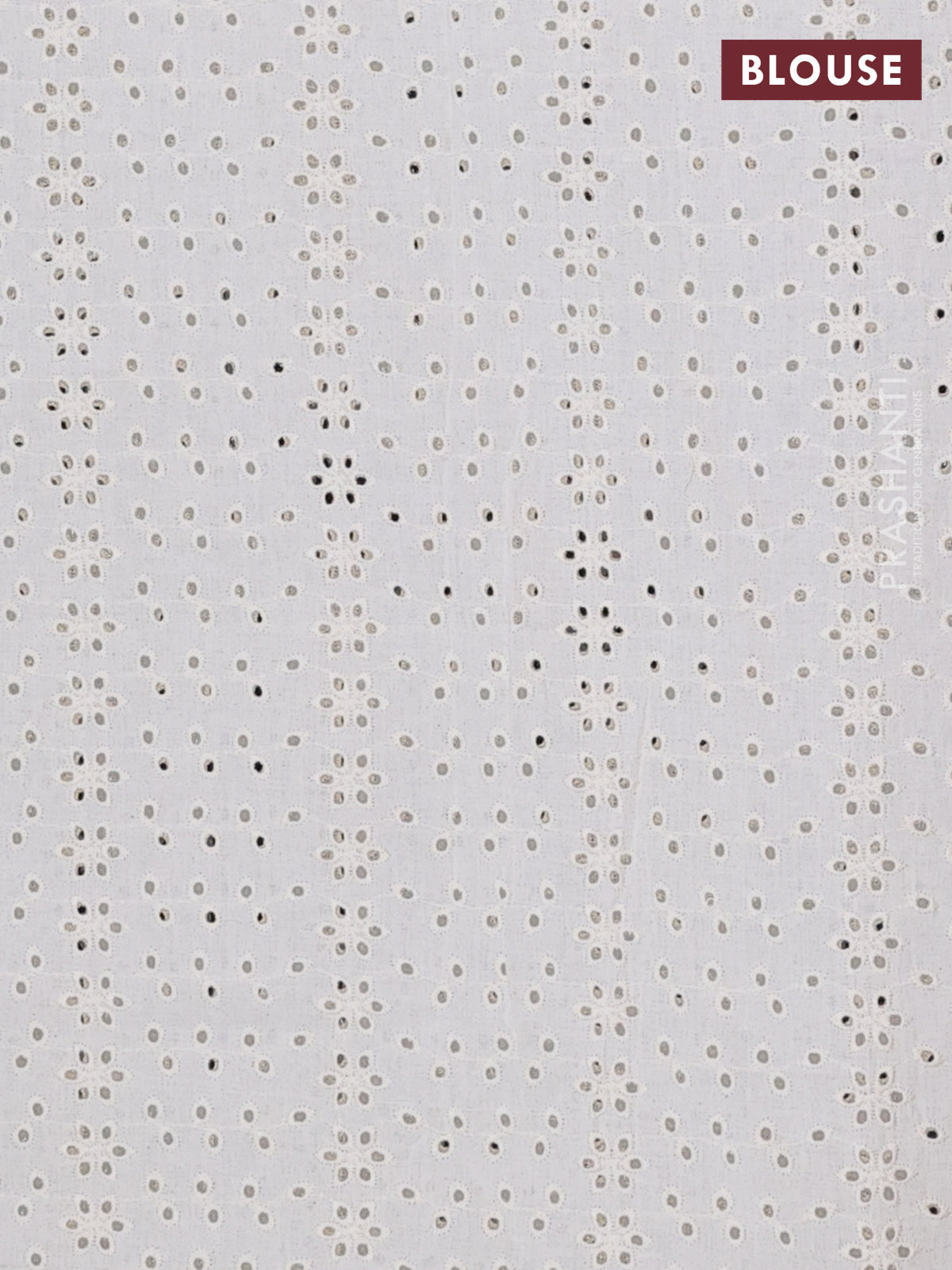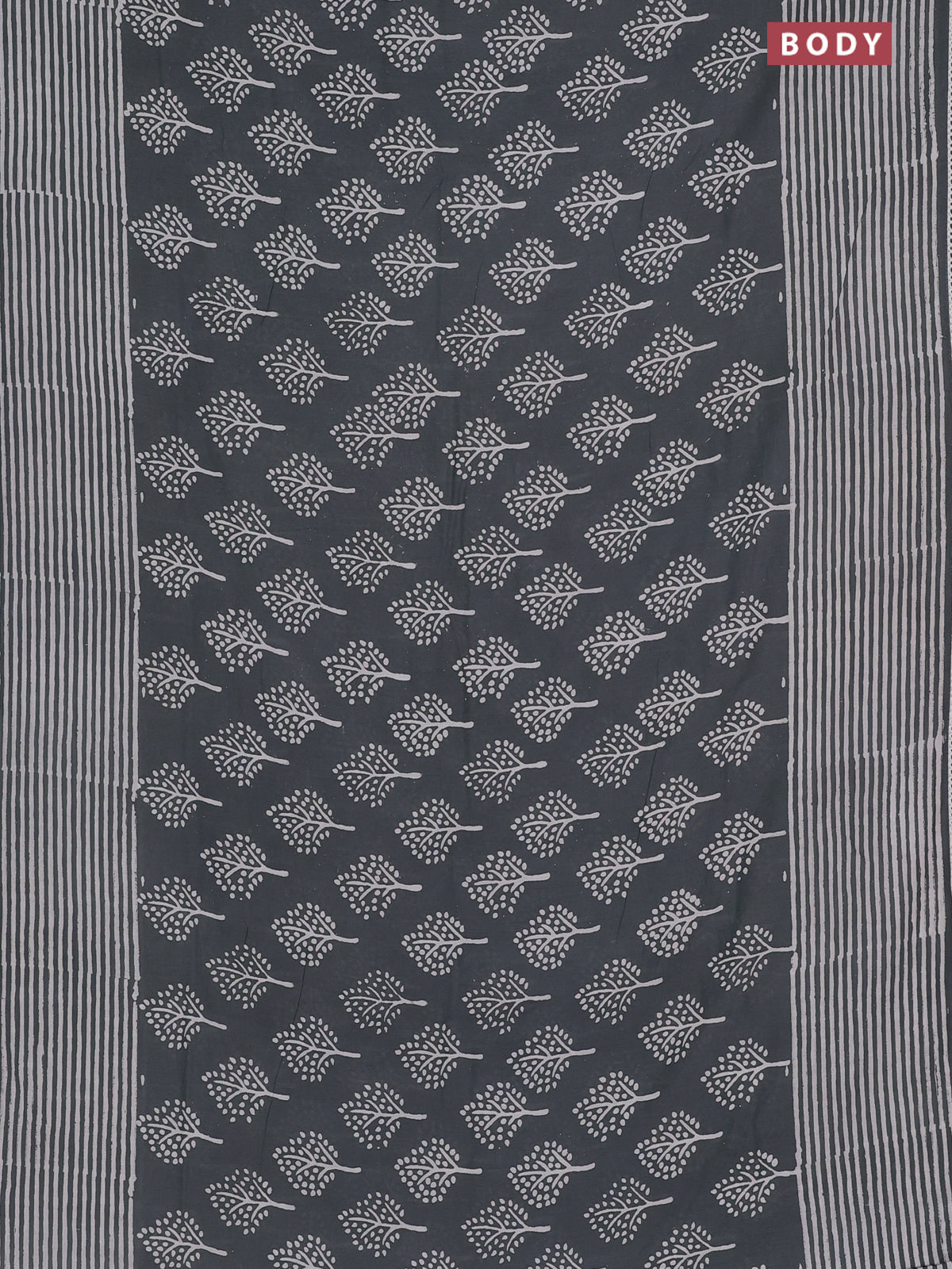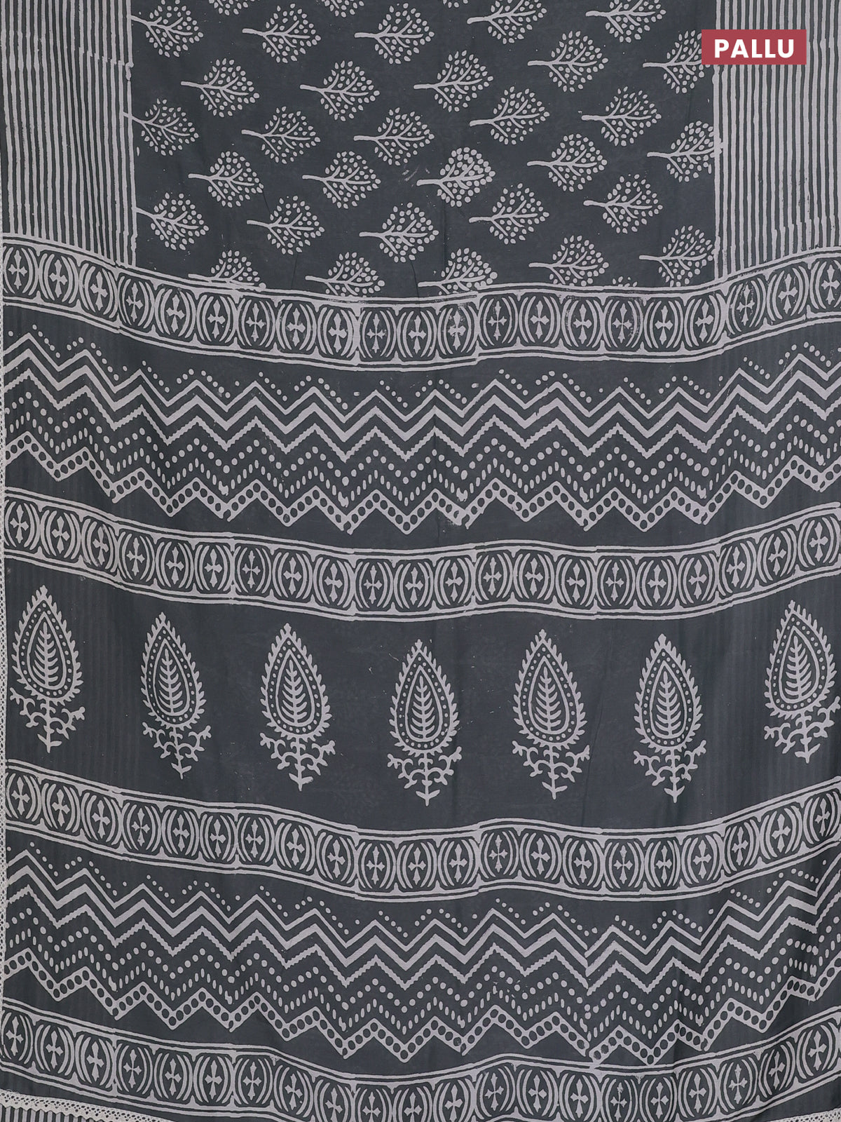 Semi pashmina silk saree grey and cream with allover tree butta prints and crocia lace work border