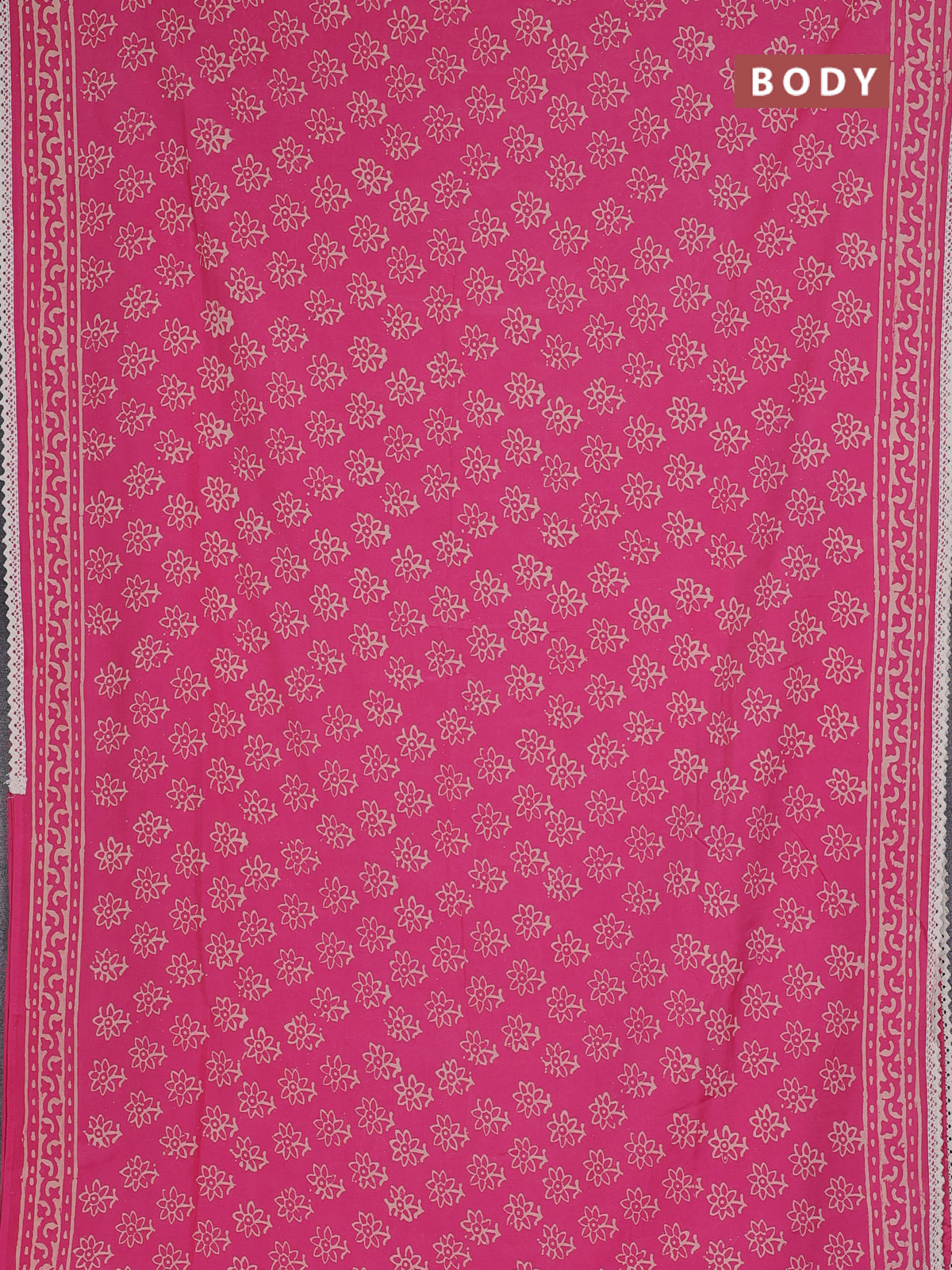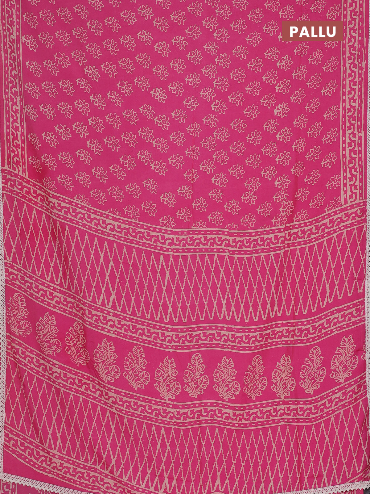 Semi pashmina silk saree pink and cream with allover floral butta prints and crocia lace work border
