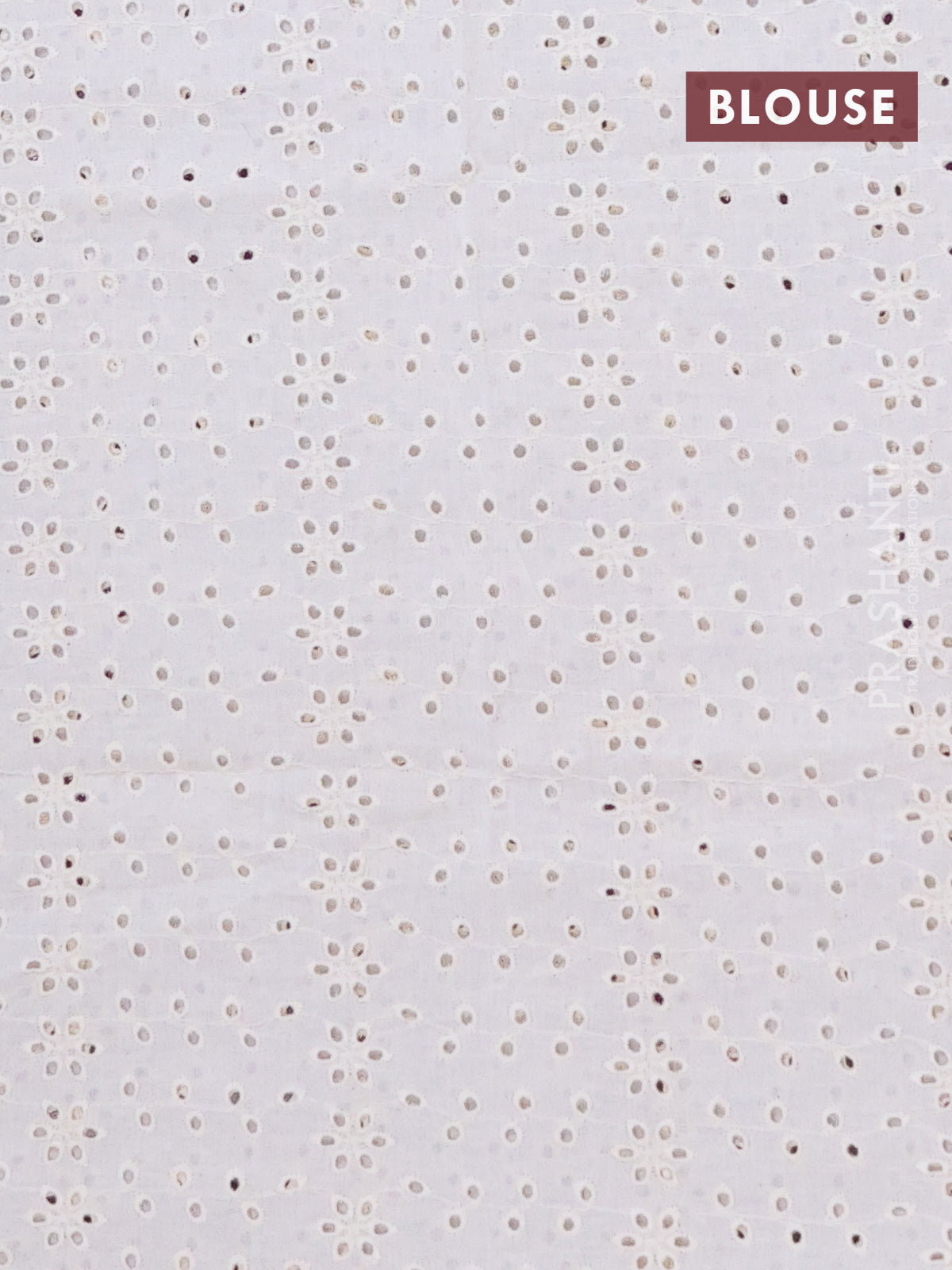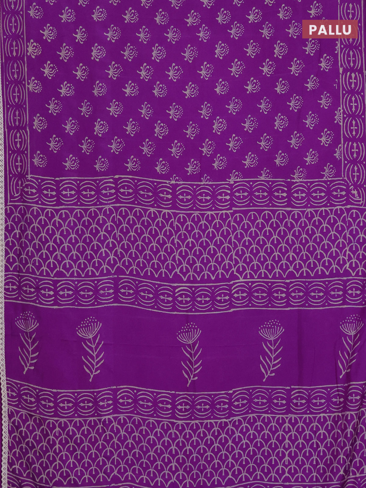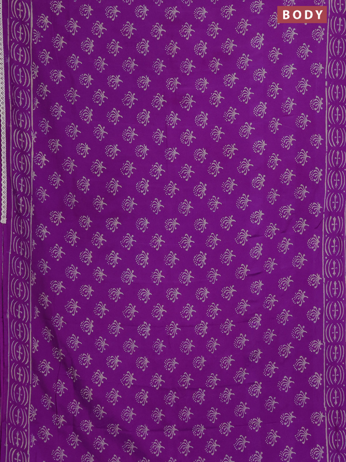 Semi pashmina silk saree purple and cream with allover butta prints and crocia lace work border