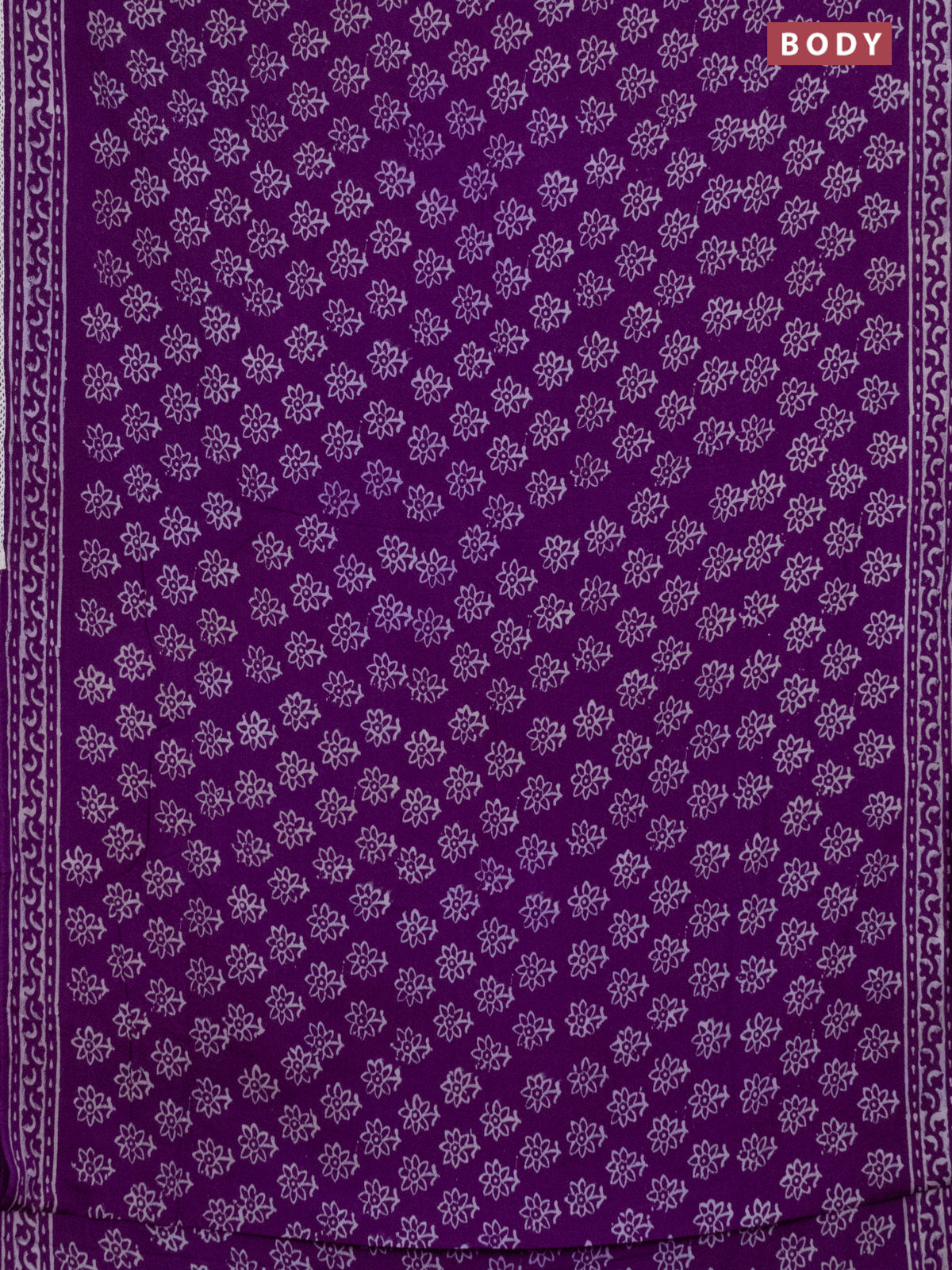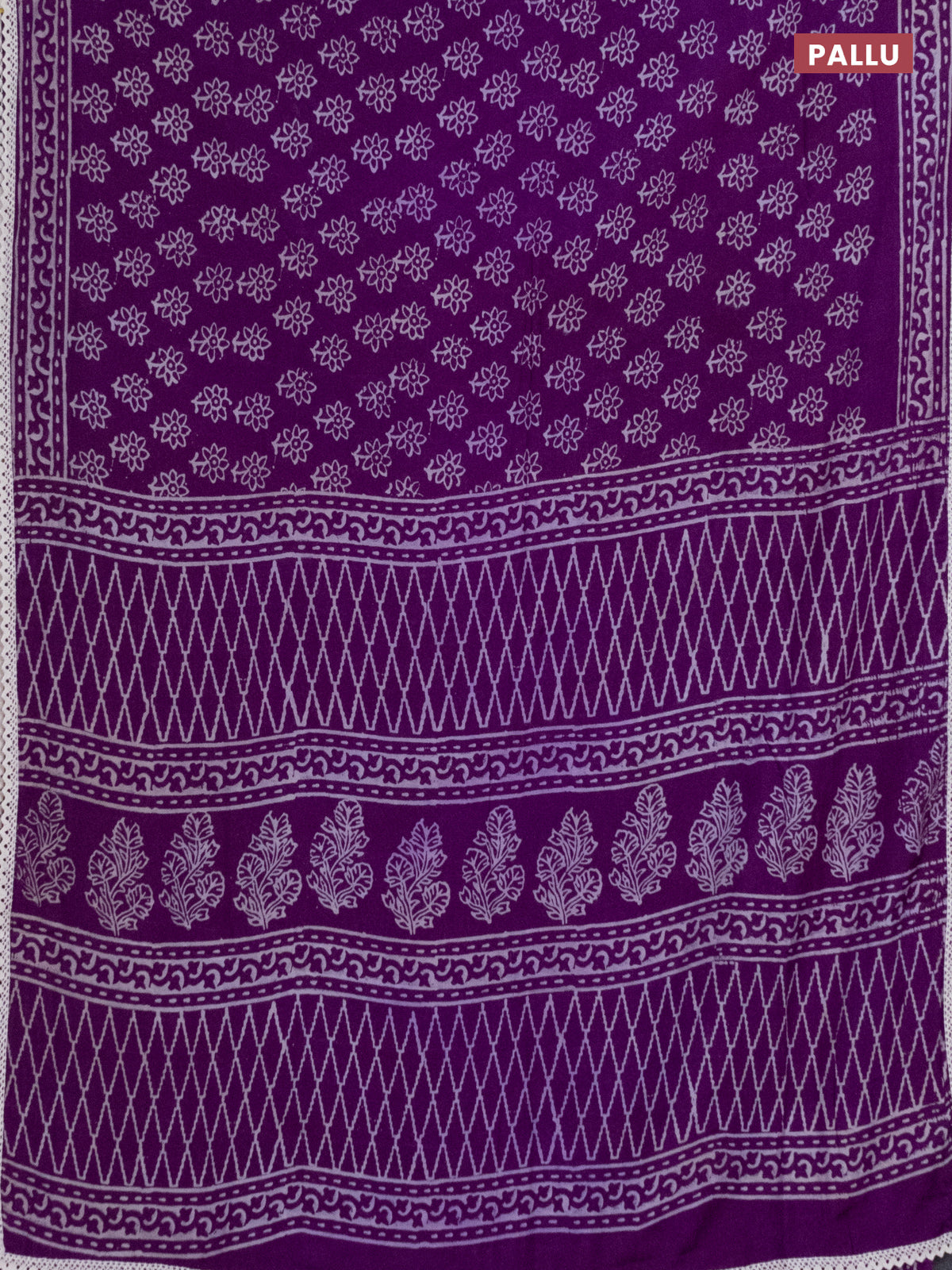 Semi pashmina silk saree purple and cream with allover floral butta prints and crocia lace work border
