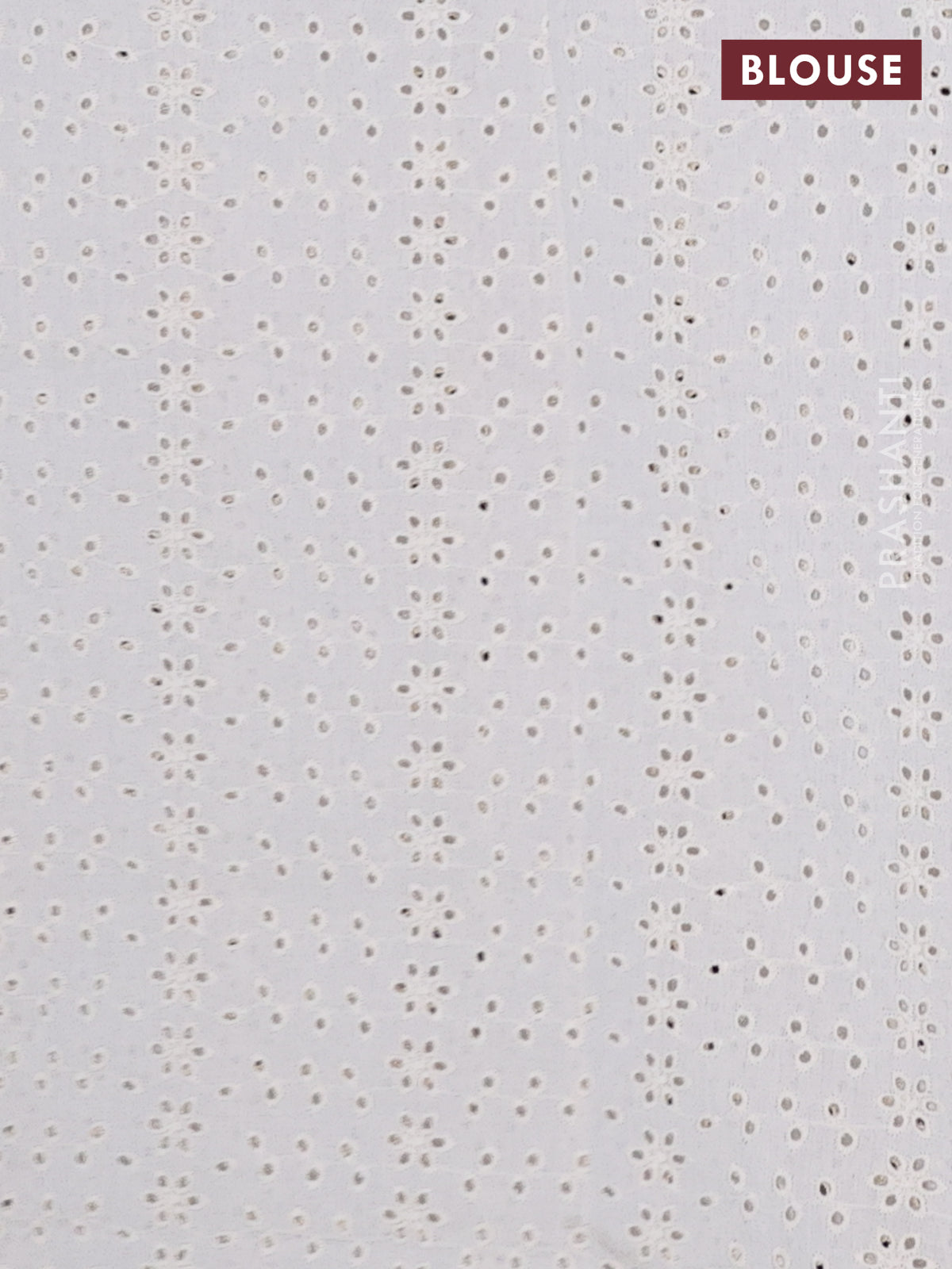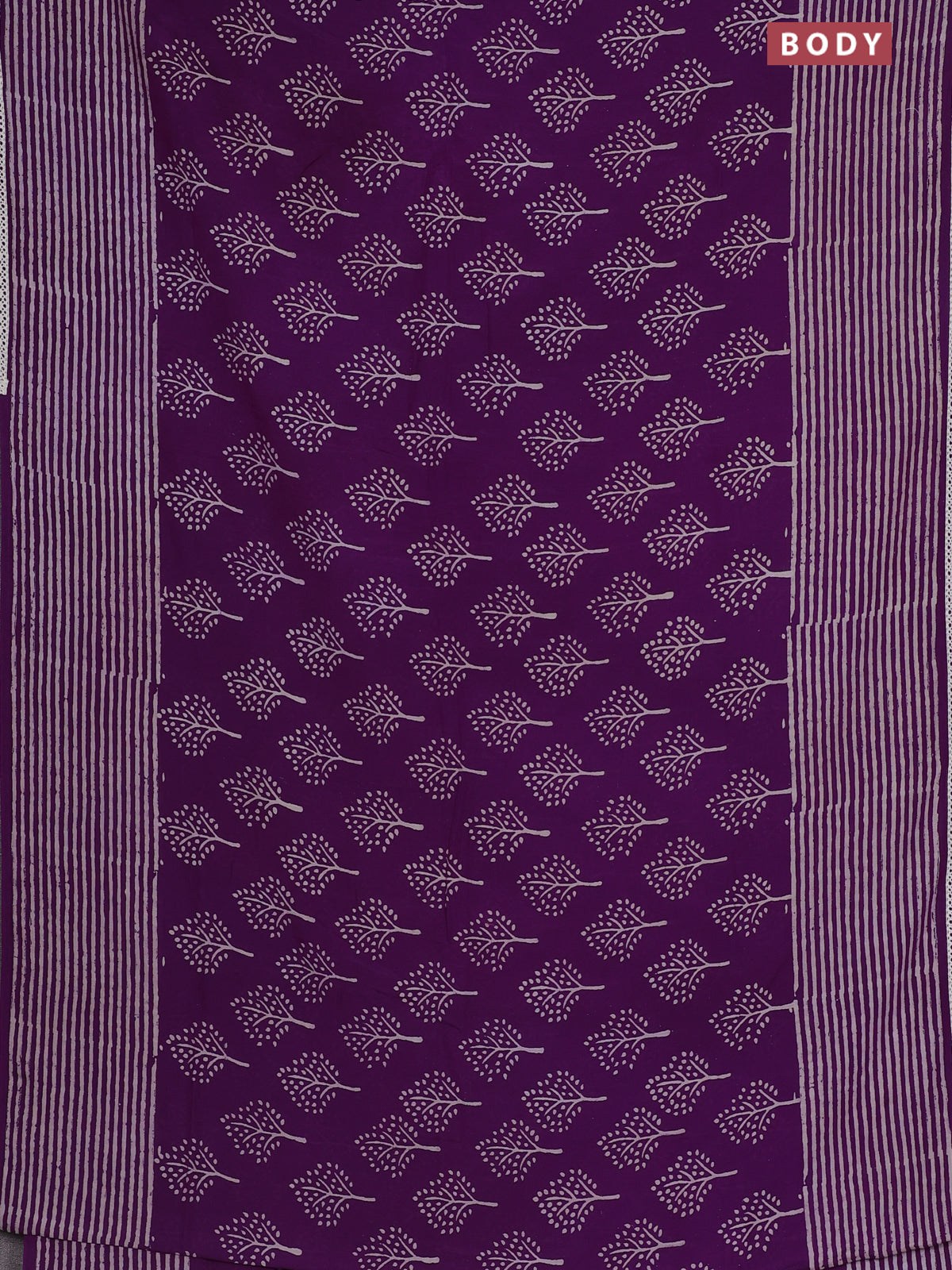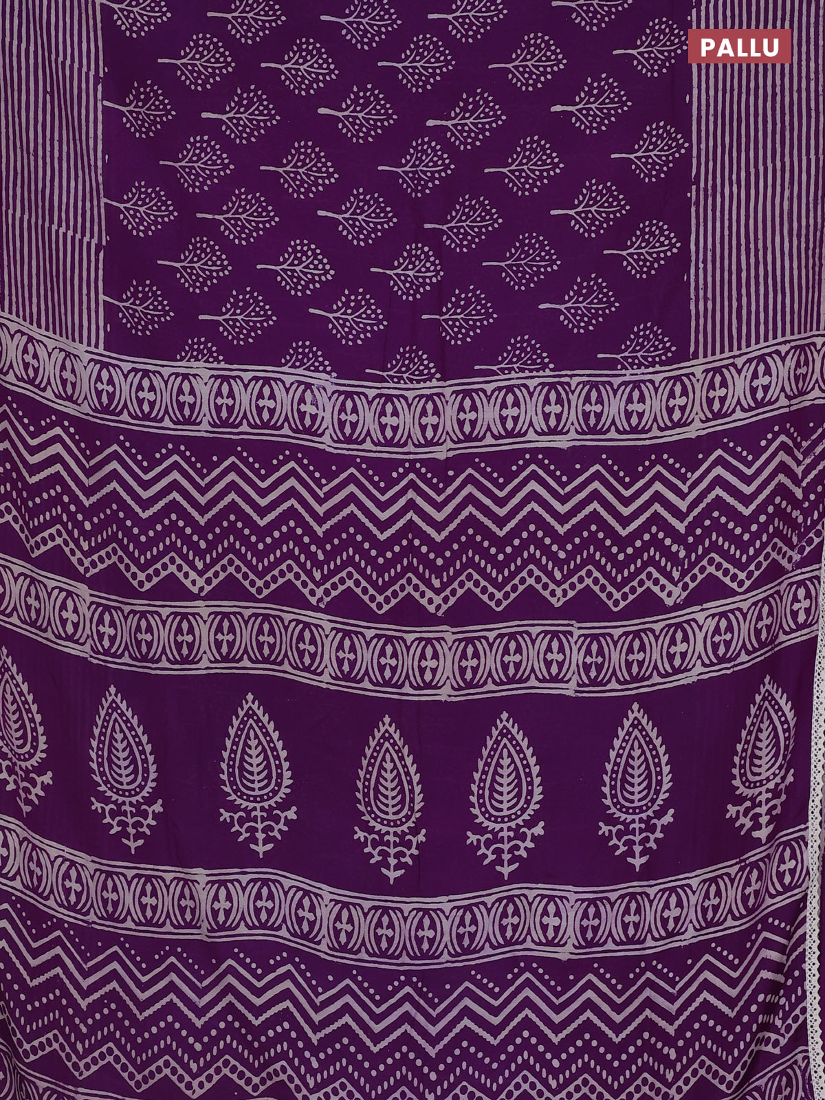 Semi pashmina silk saree purple and cream with allover tree butta prints and crocia lace work border