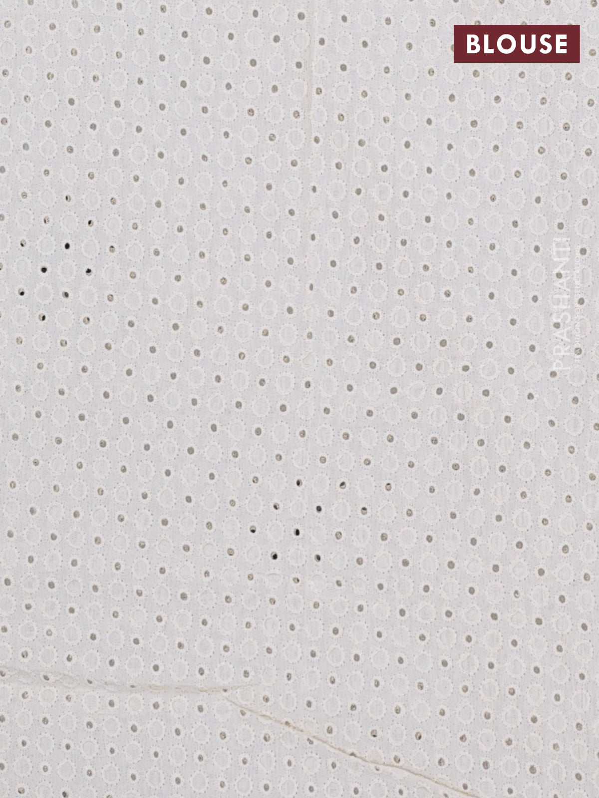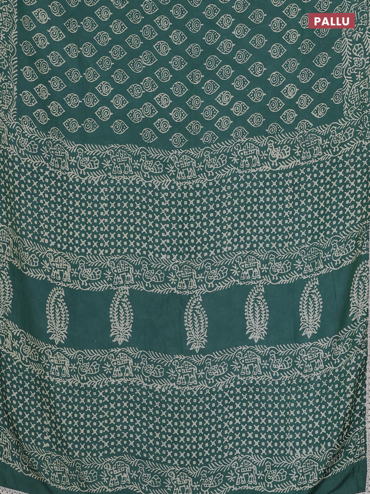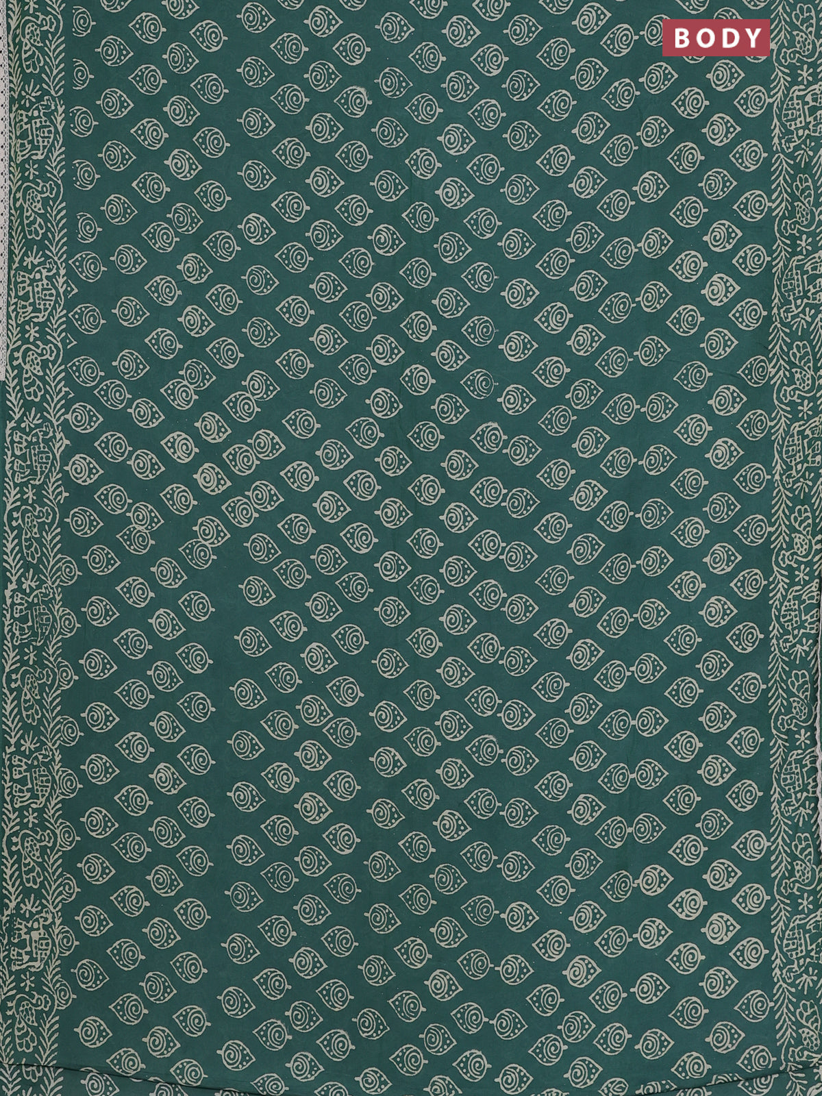 Semi pashmina silk saree teal green shade and cream with allover butta prints and crocia lace work border
