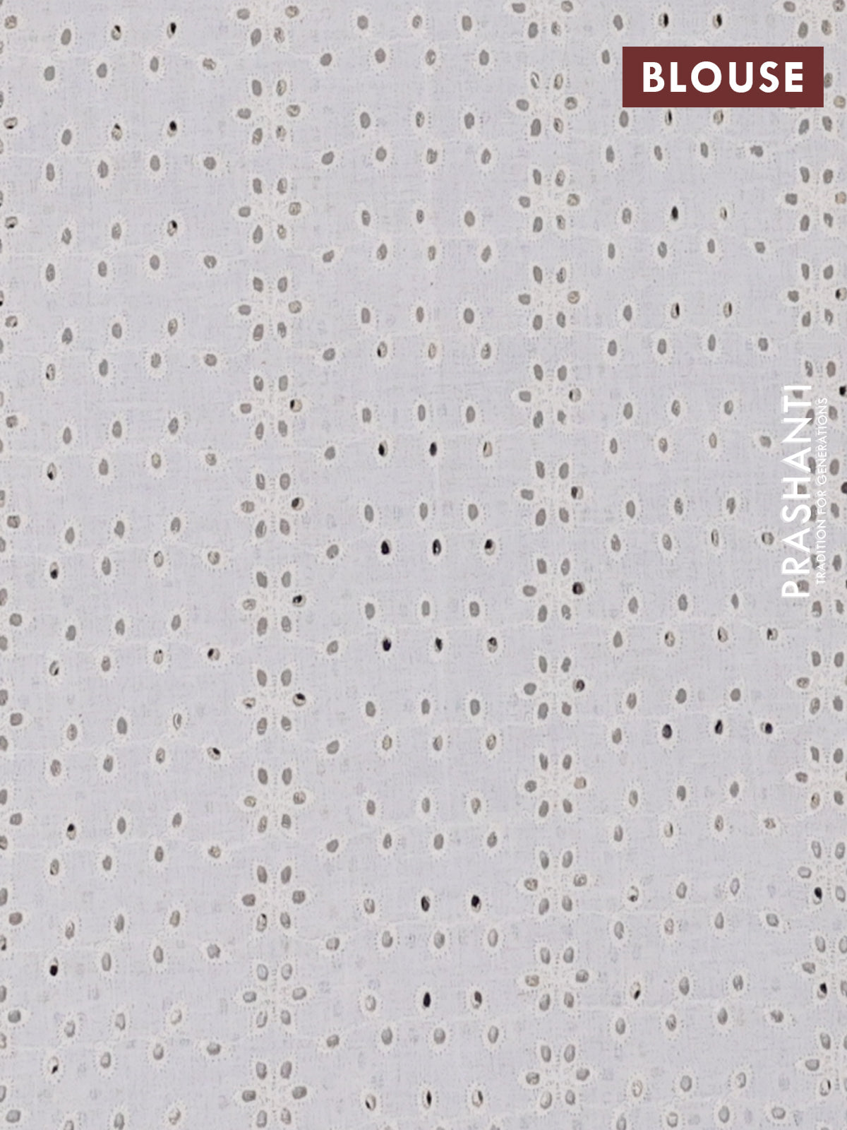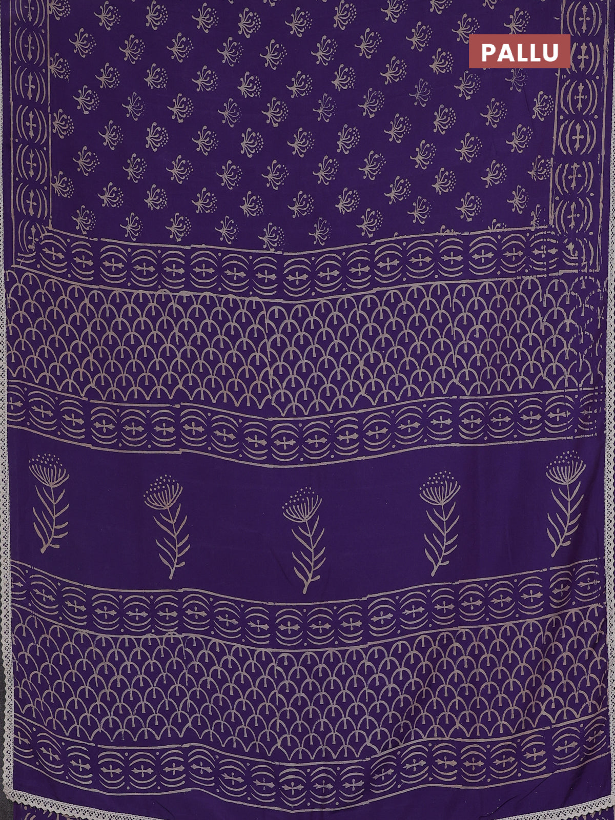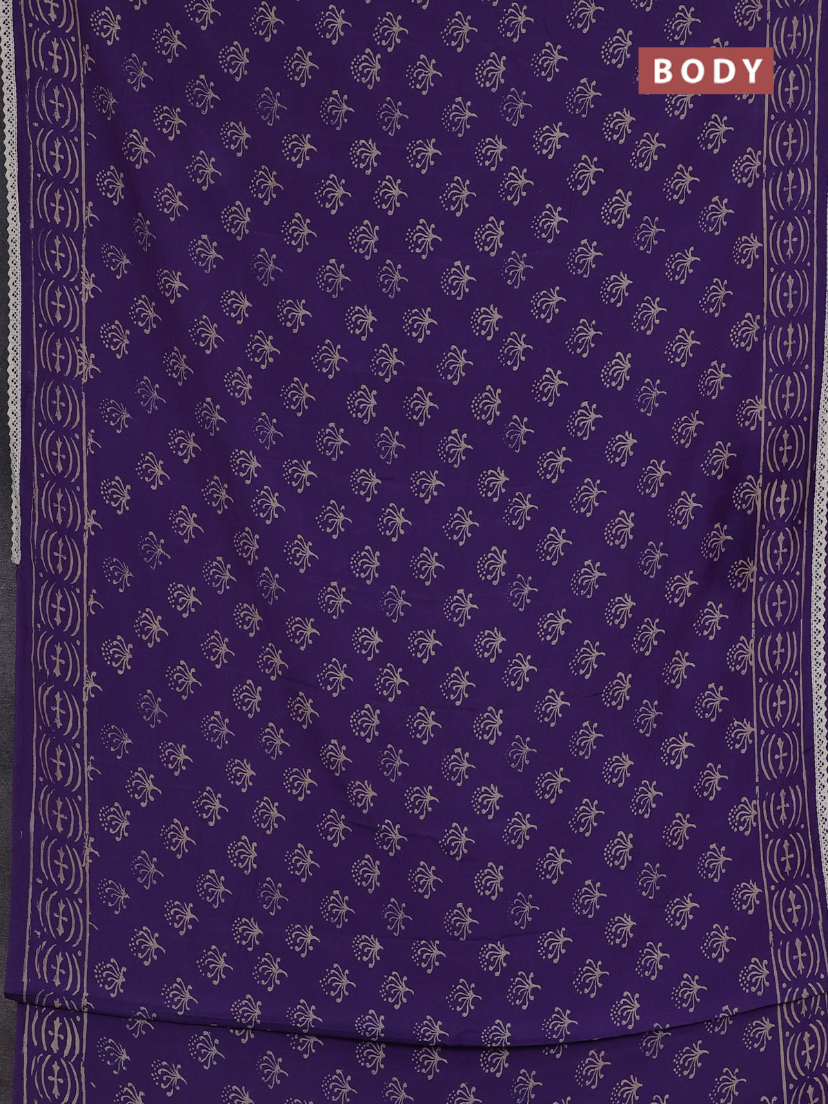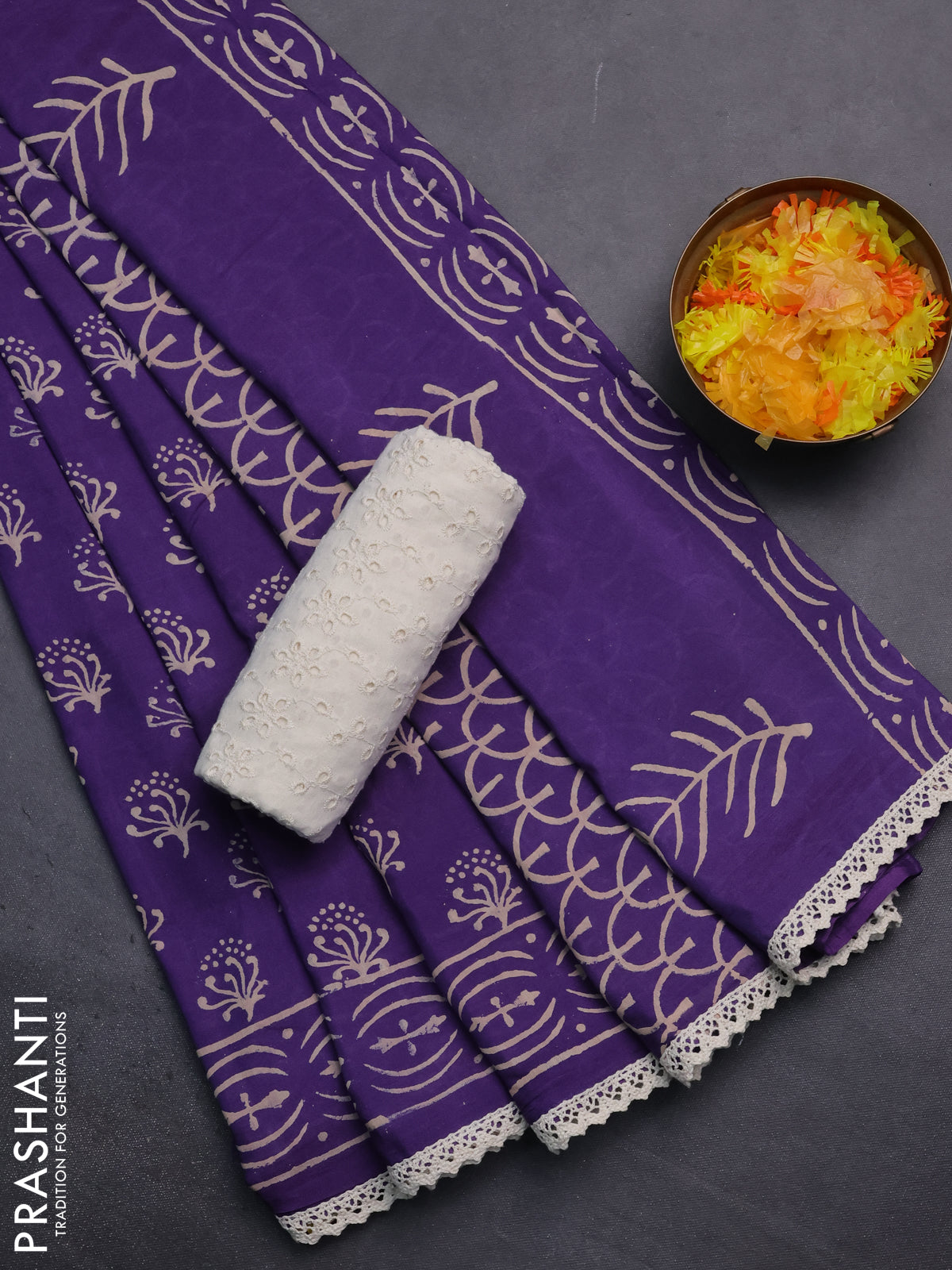 Semi pashmina silk saree violet and cream with allover butta prints and crocia lace work border
