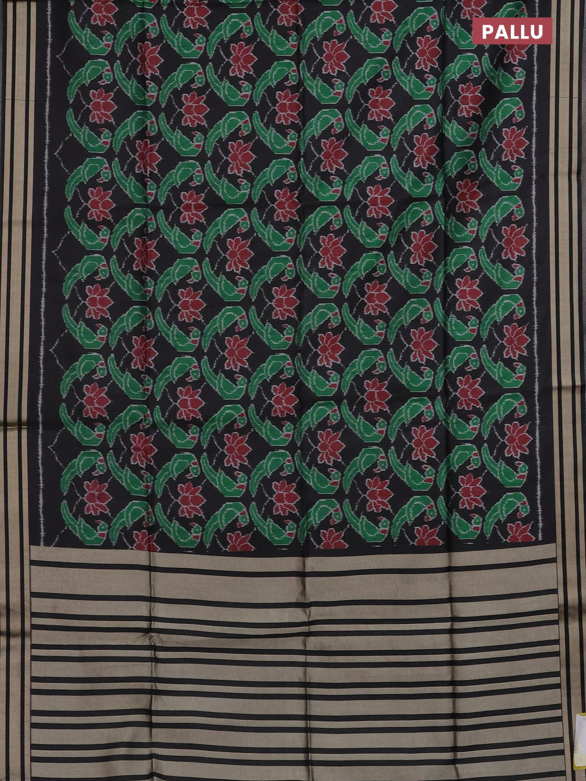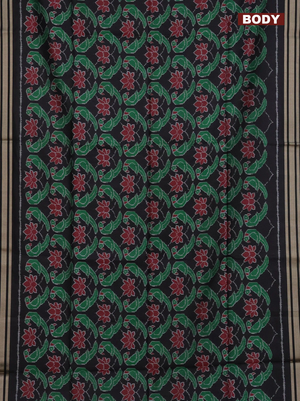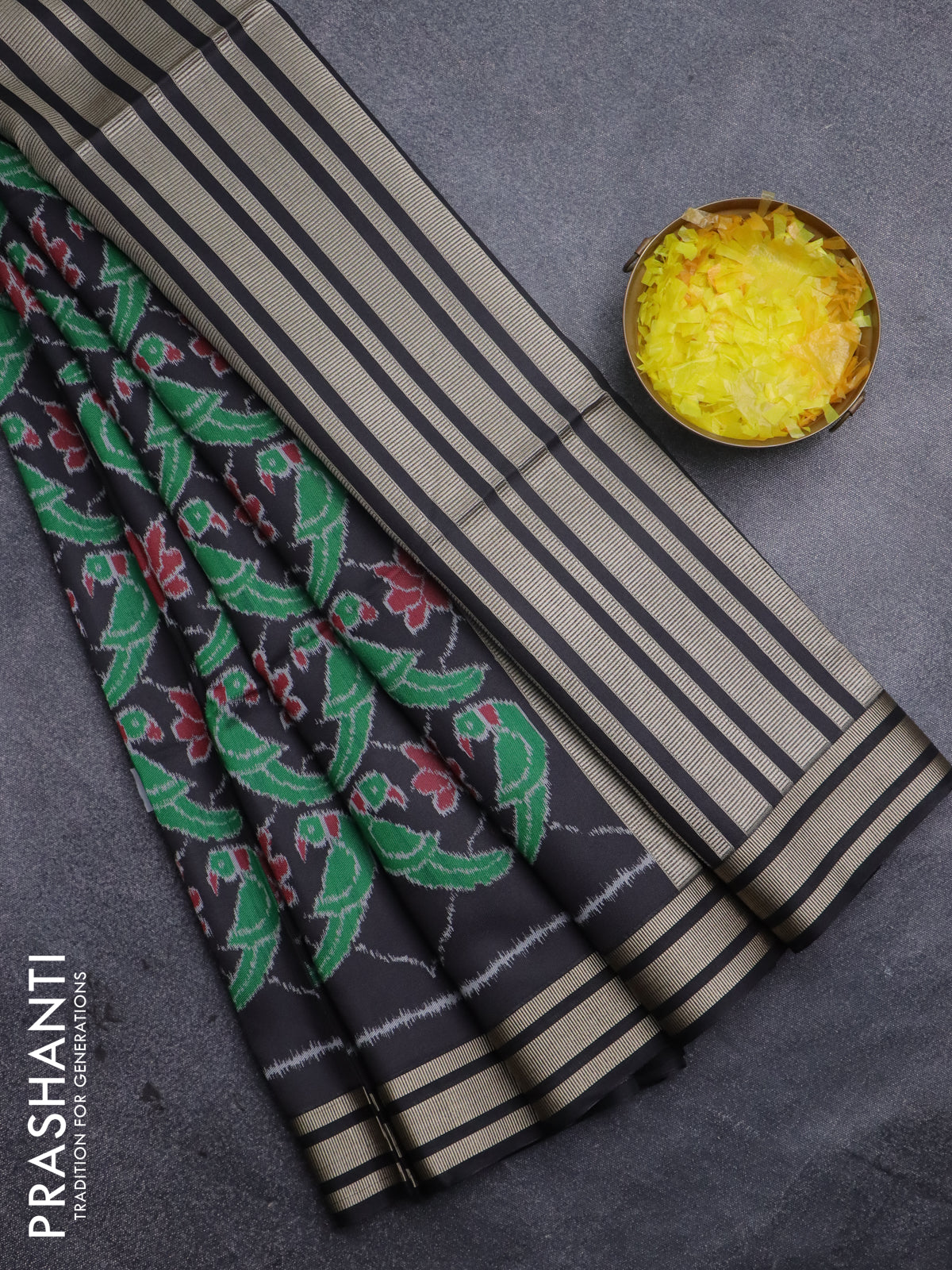 Semi patola saree black with allover ikat prints and simple border