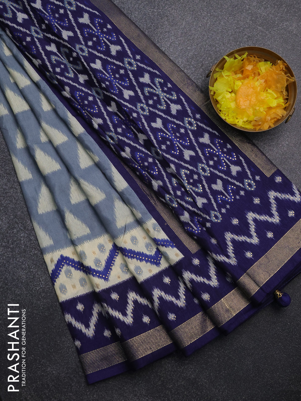 Semi patola saree grey and blue with geometric butta weaves and zari woven border