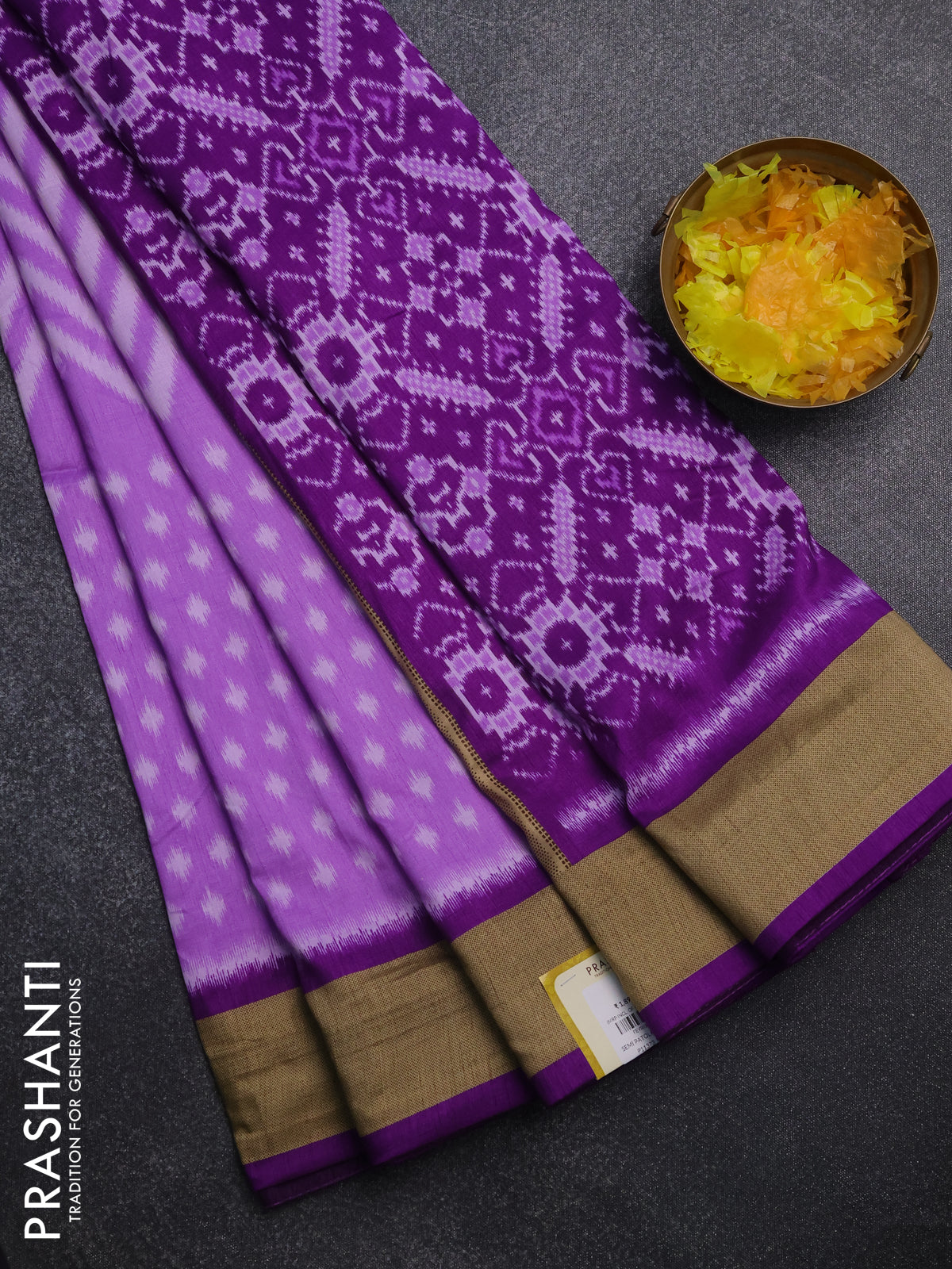 Semi patola saree lavender and violet with allover ikat weaves and woven border
