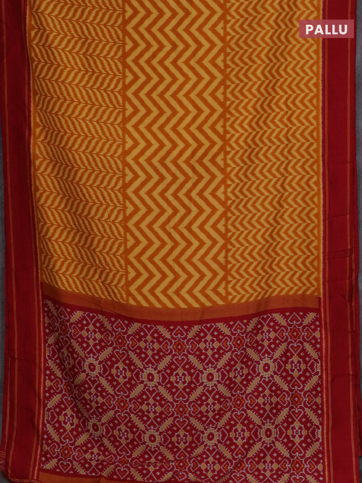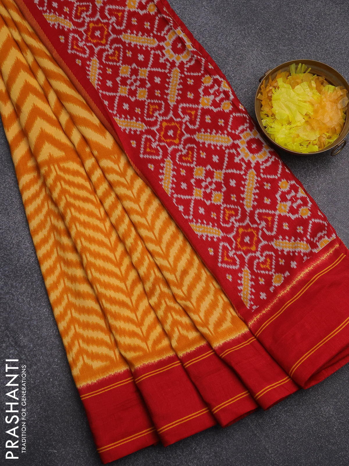 Semi patola saree mango yellow and red with allover wevy weaves and simple border