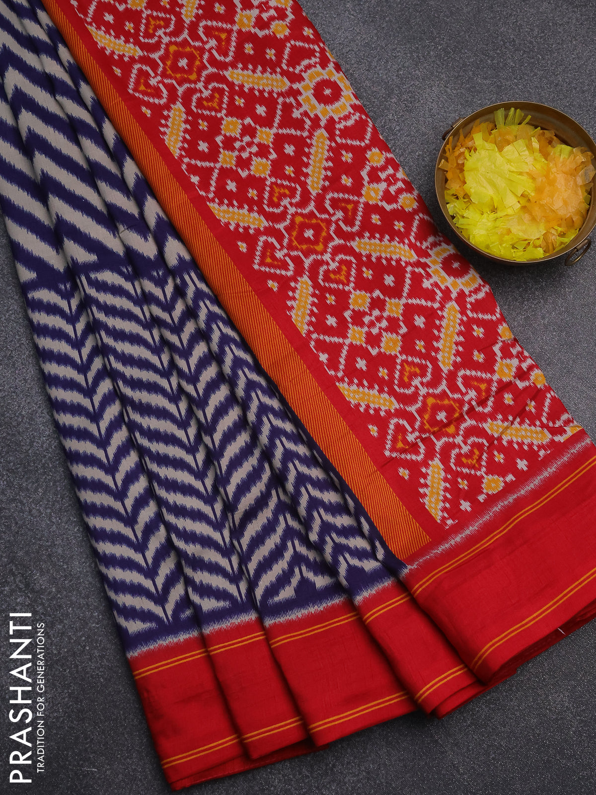 Semi patola saree navy blue and red with allover wevy weaves and simple border