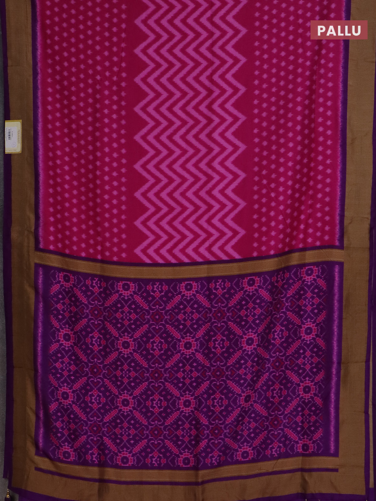 Semi patola saree pink and deep purple with allover ikat weaves and woven border