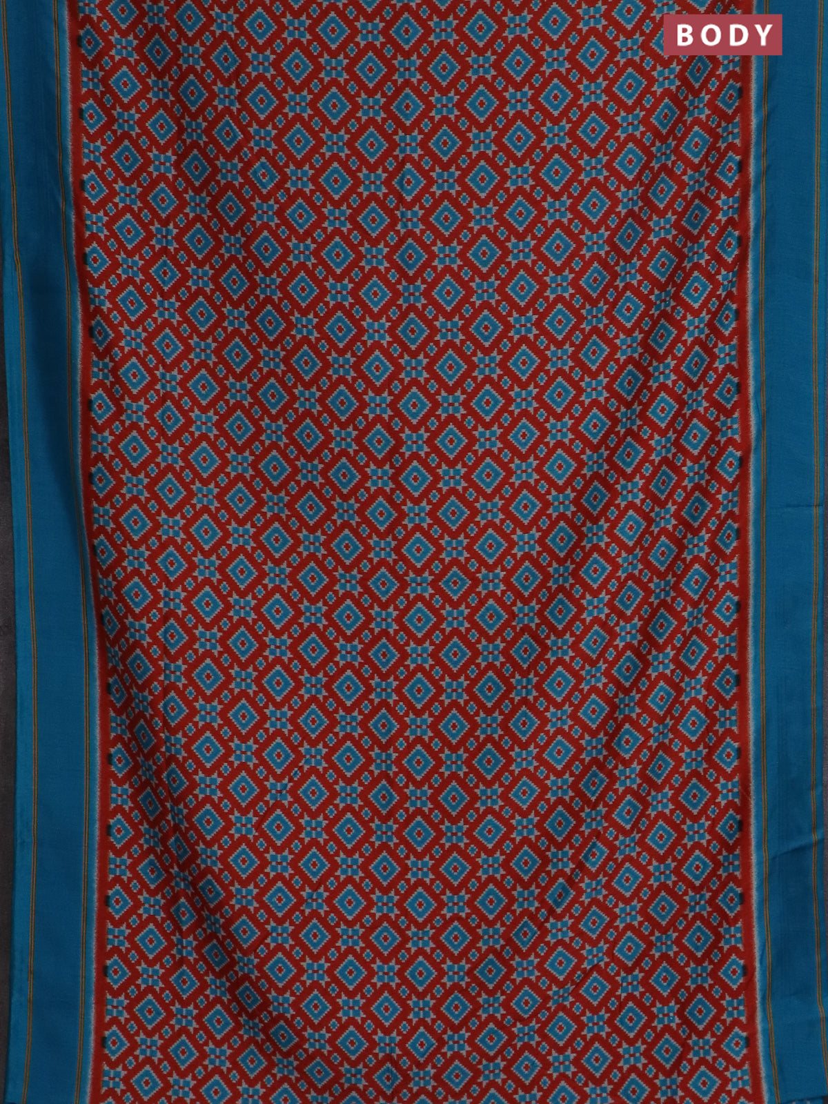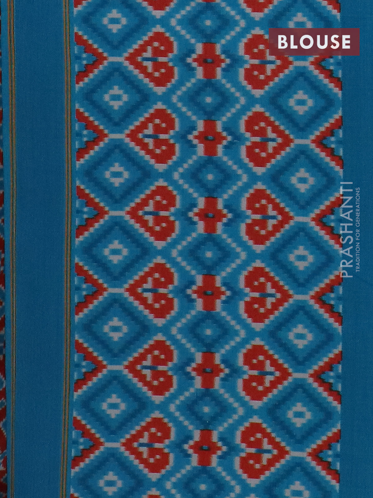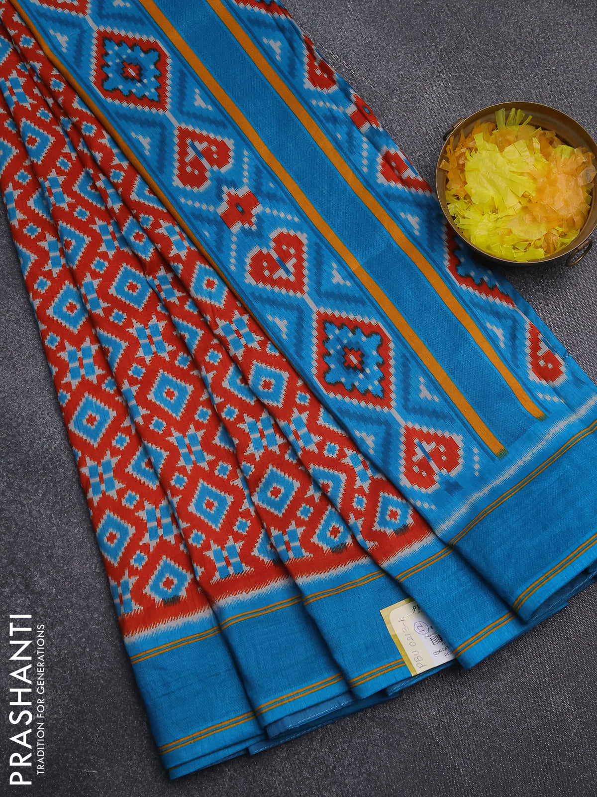 Semi patola saree red and cs blue with allover ikat weaves and simple border