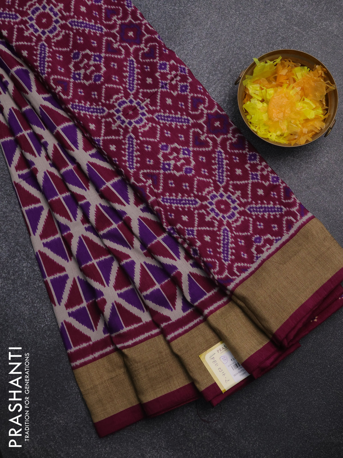 Semi patola saree violet and wine shade with geometric weaves and woven border
