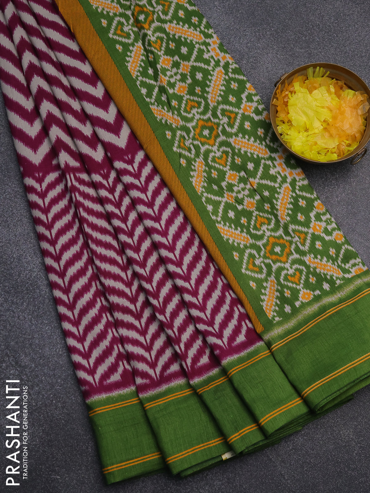 Semi patola saree wine shade and green with allover wevy weaves and simple border