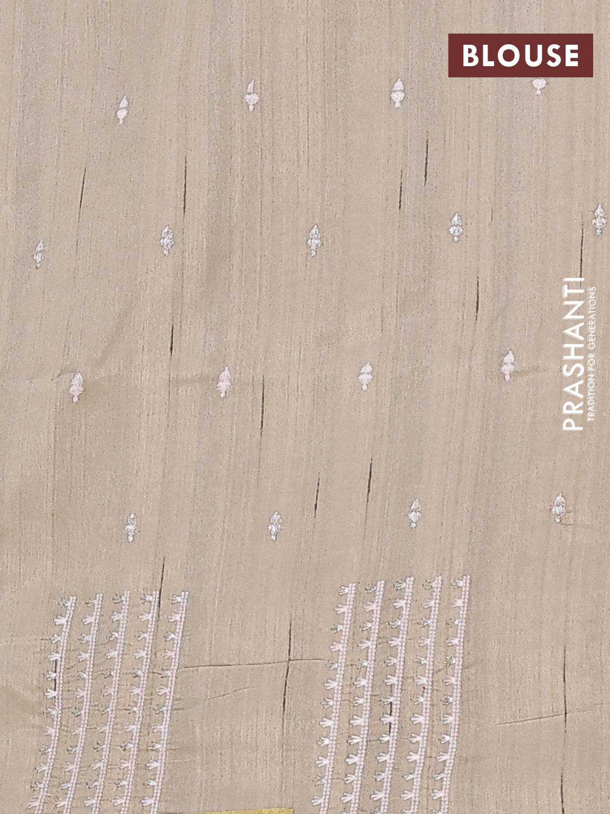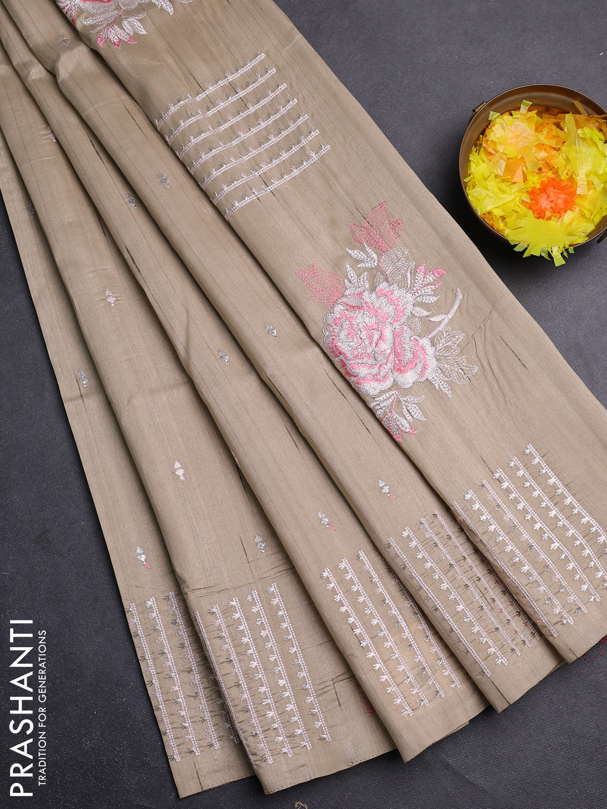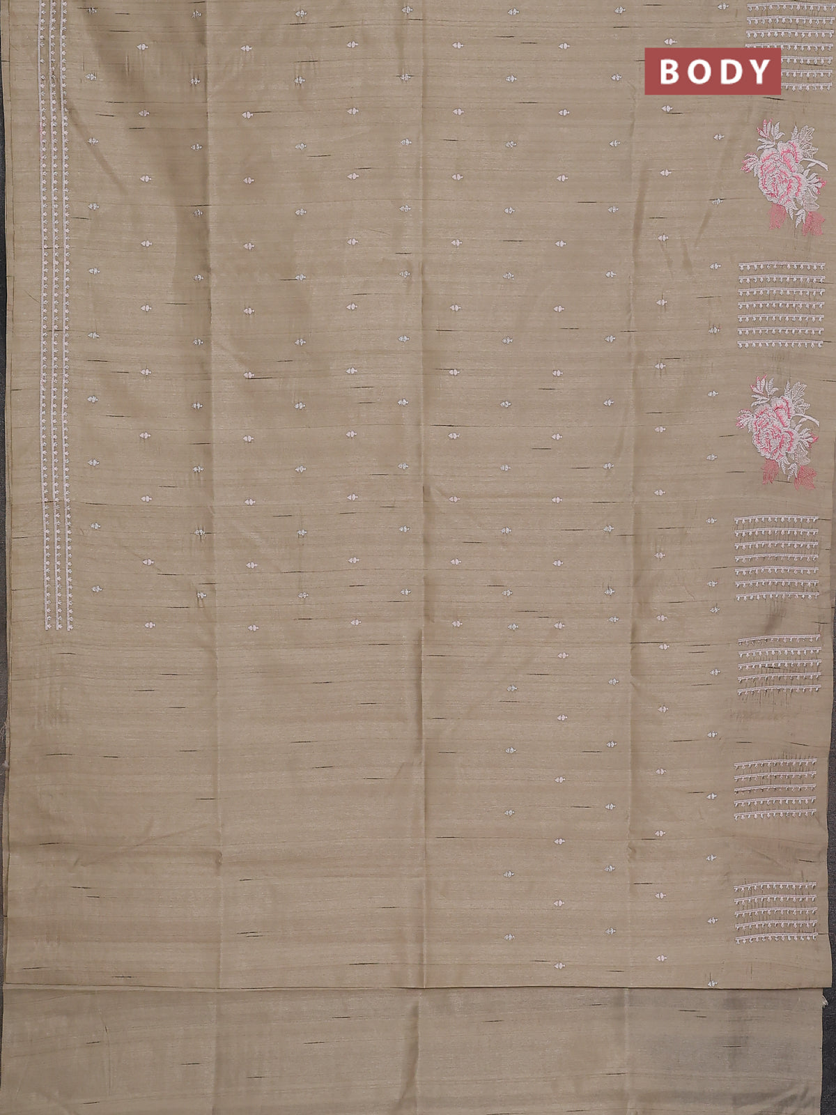 Semi raw silk saree beige with embroidery buttas and embroidery butta border